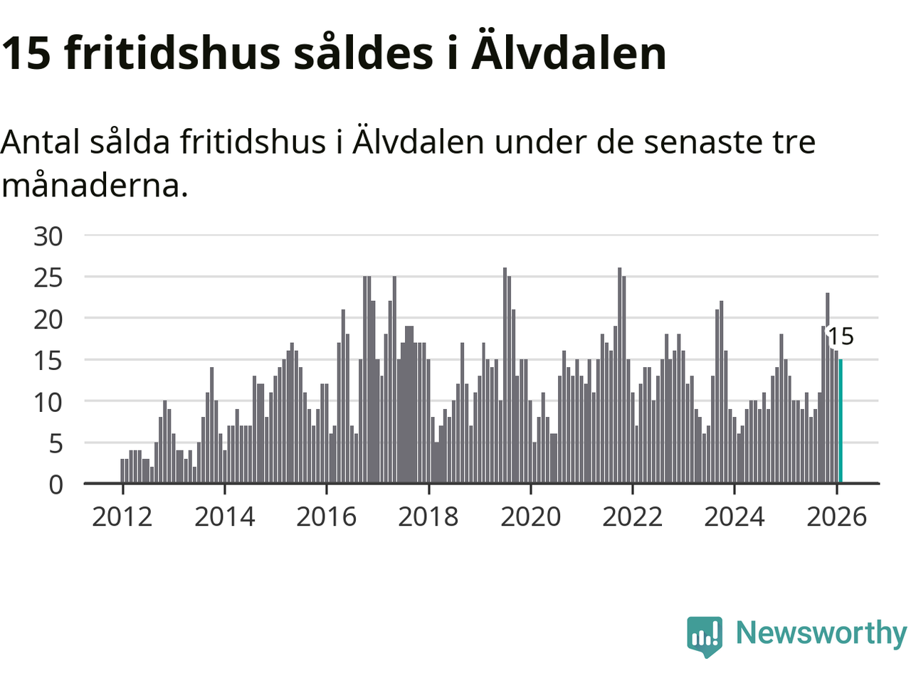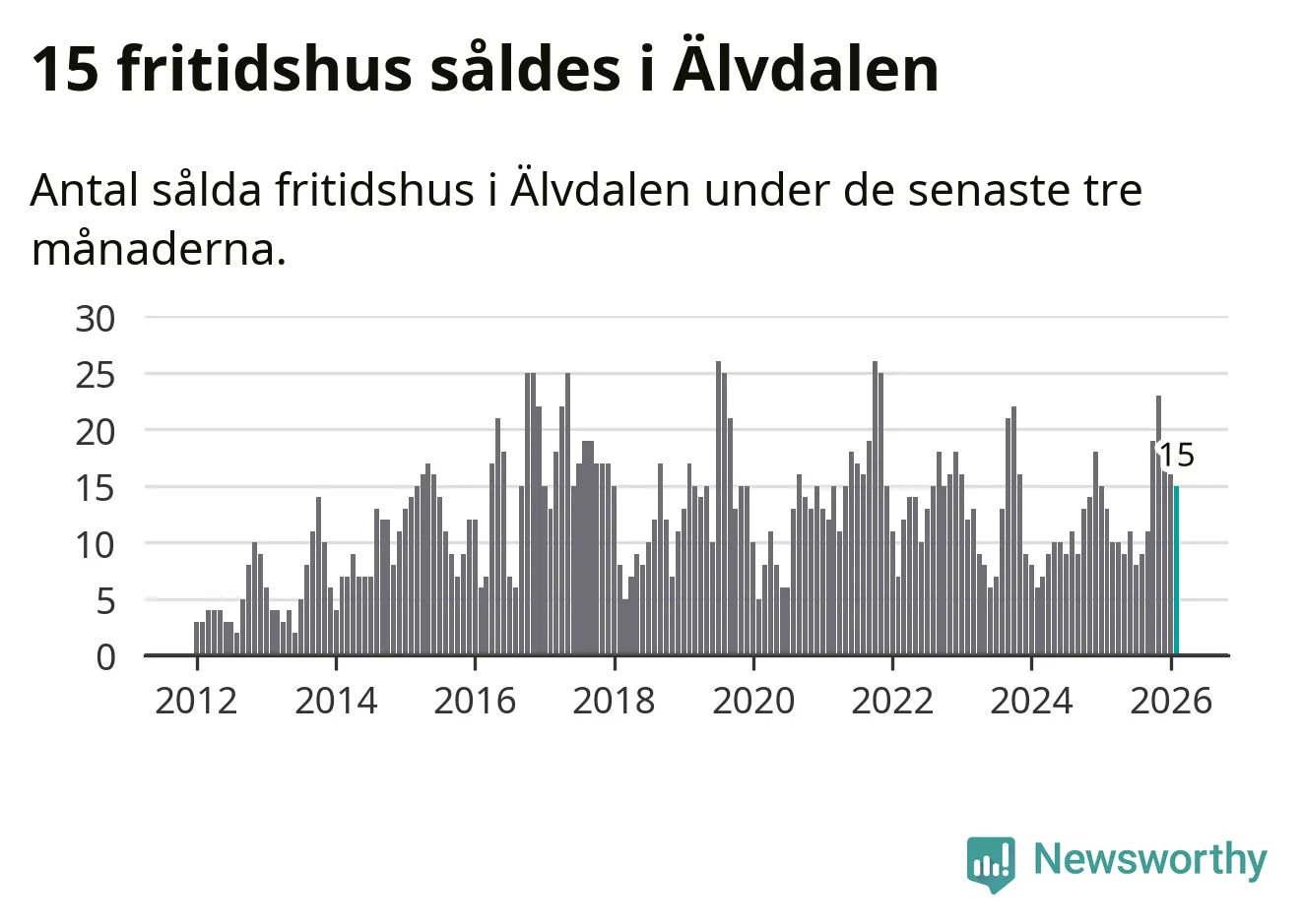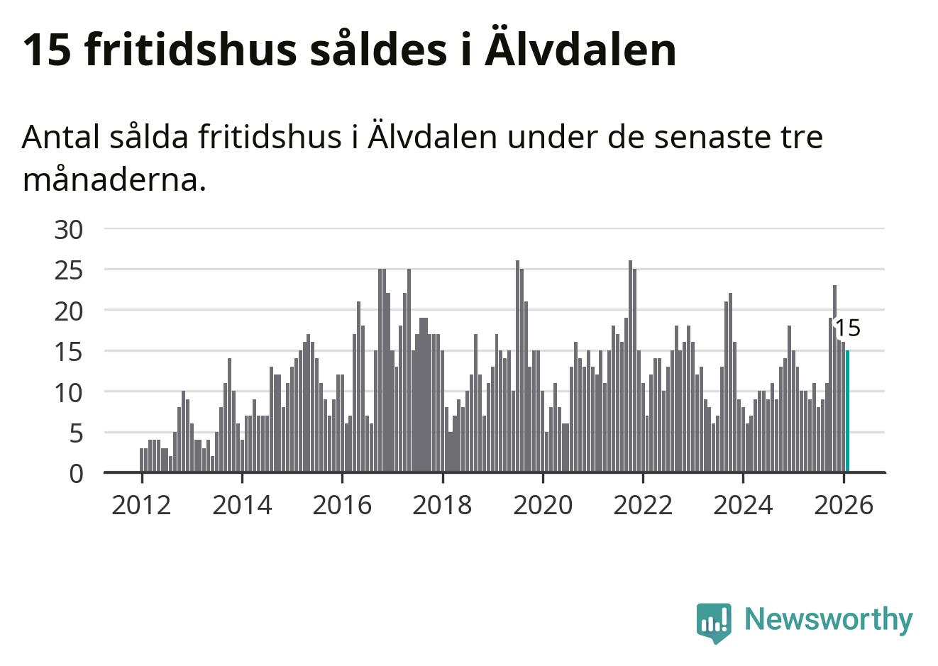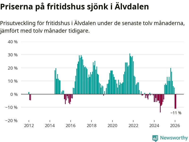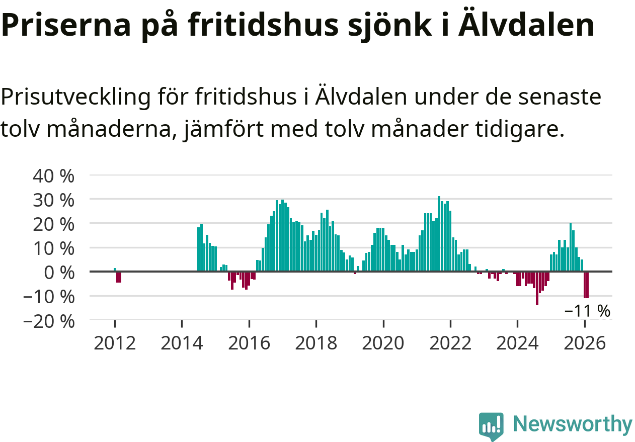 Sammanlagt såldes 15 fritidshus i Älvdalens kommun mellan december 2025 och februari till ett genomsnittligt pris på 2,6 miljoner kronor. I fjol gjordes 13 affärer vid den här tiden på året.