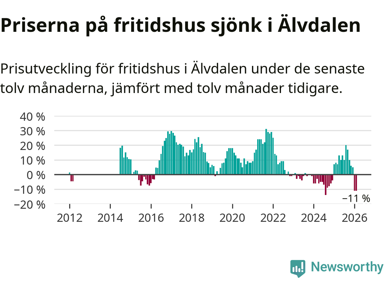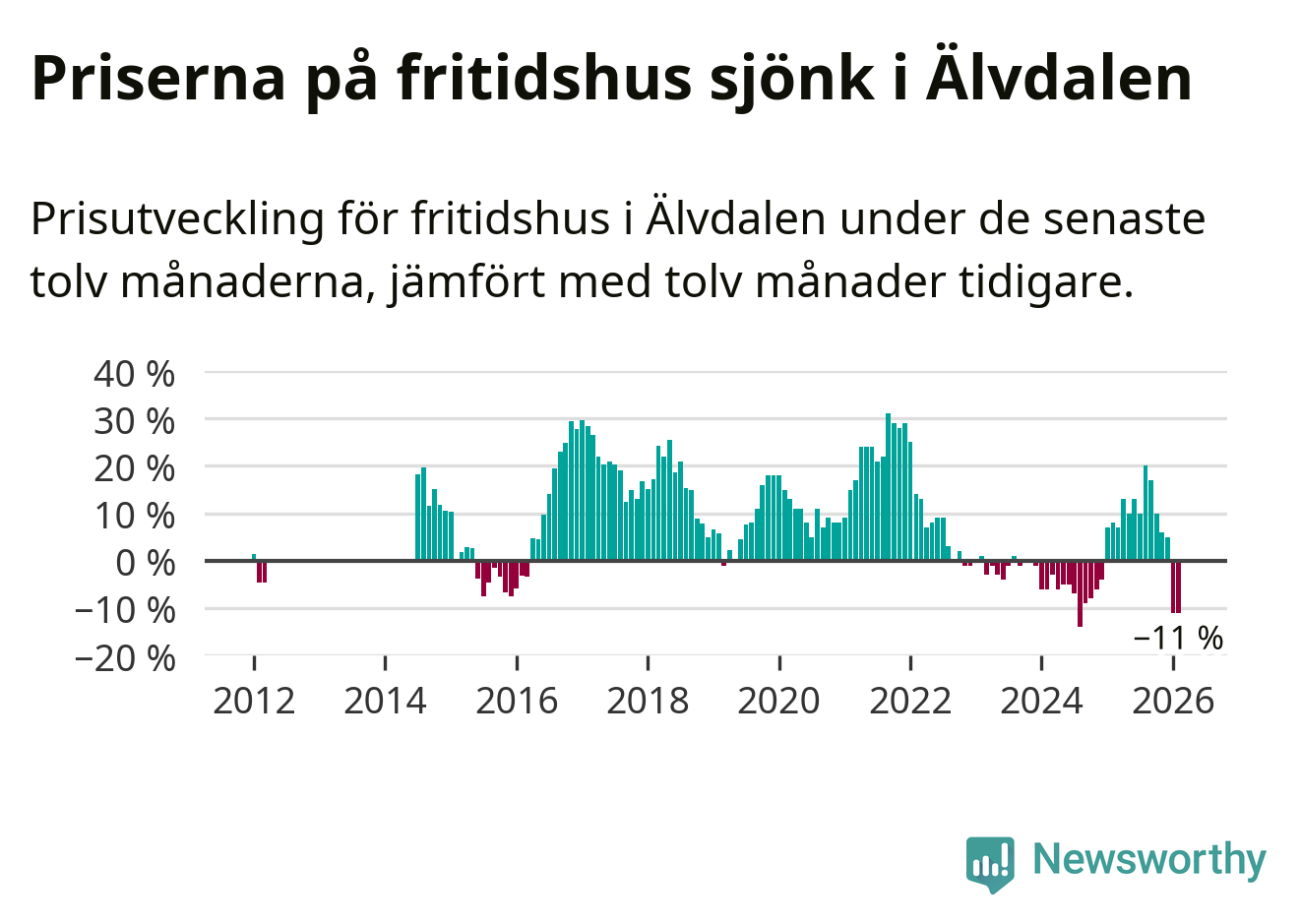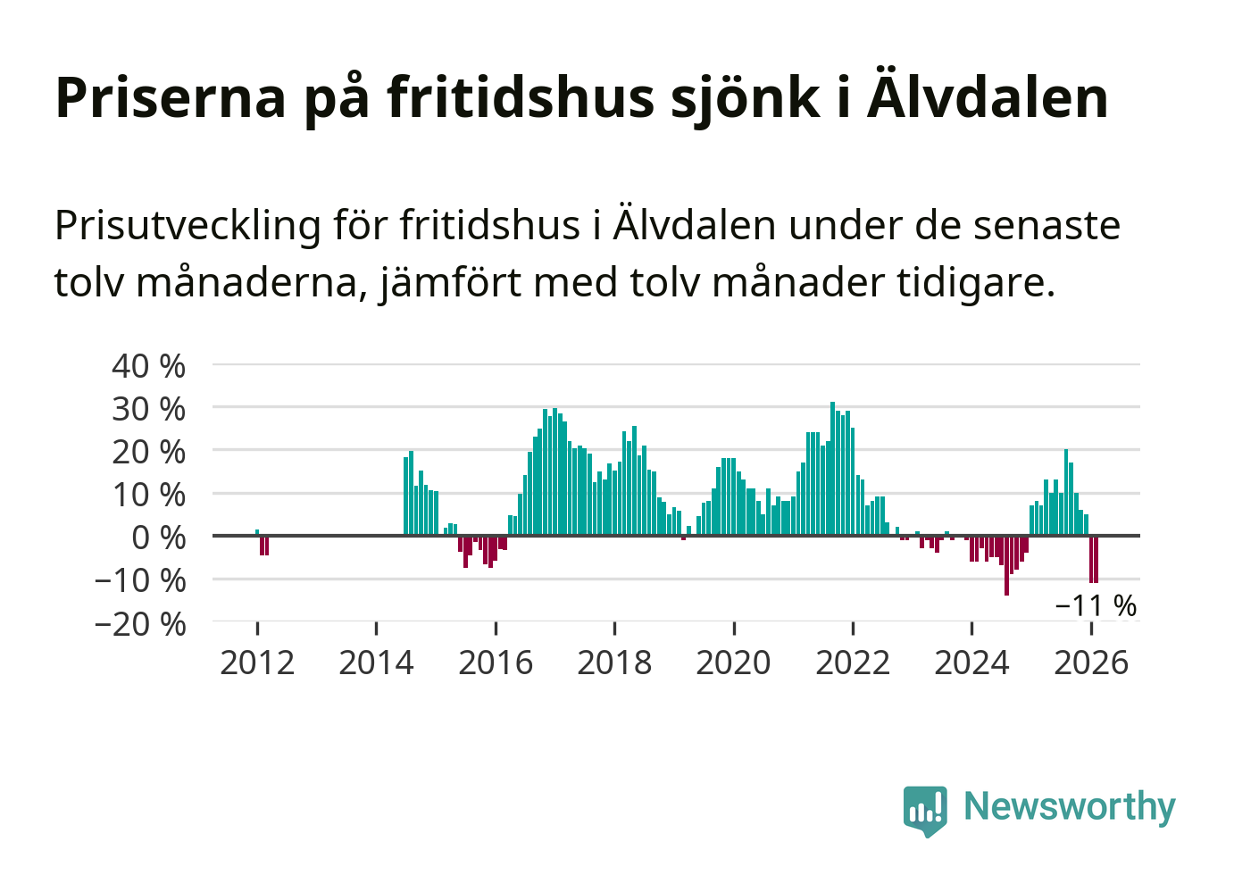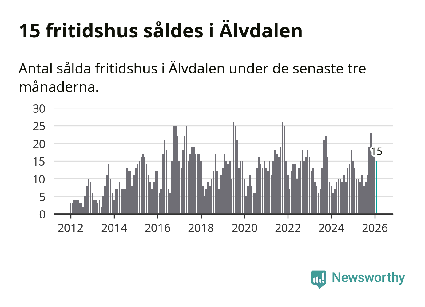 Sammanlagt såldes 15 fritidshus i Älvdalens kommun mellan december 2025 och februari till ett genomsnittligt pris på 2,6 miljoner kronor. I fjol gjordes 13 affärer vid den här tiden på året.