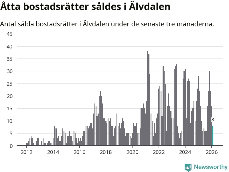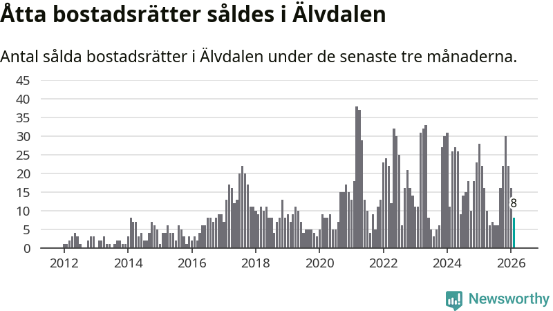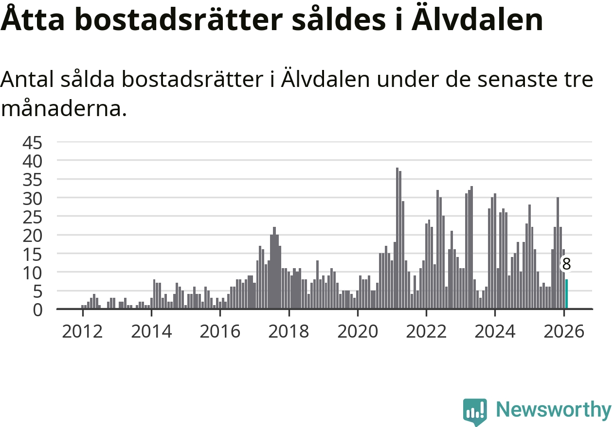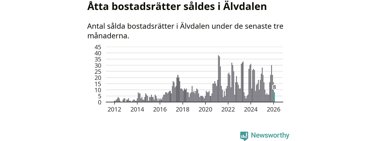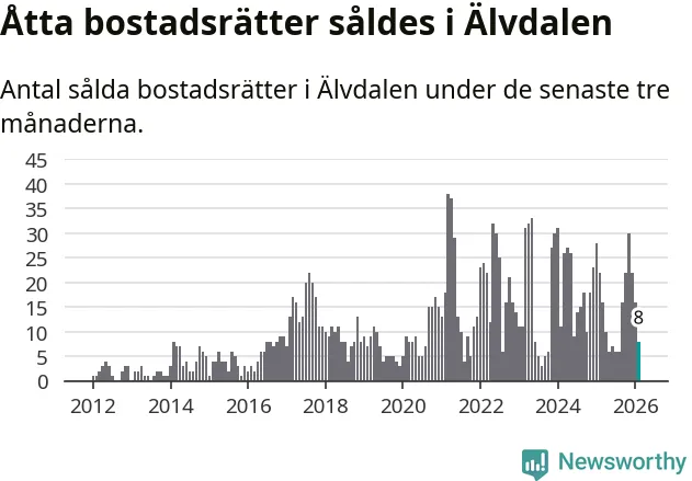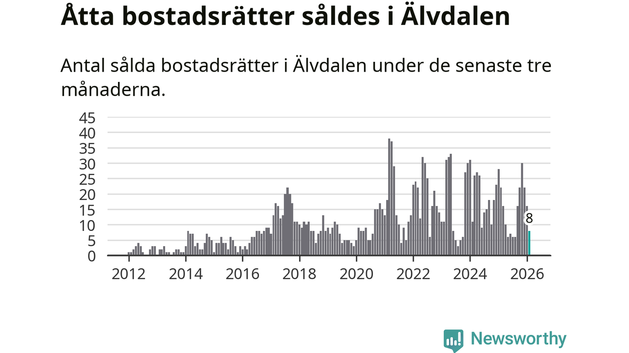 Mellan december och februari gjordes sammanlagt åtta affärer med bostadsrätter i Älvdalens kommun. Det kan jämföras med 22 vid motsvarande tid i fjol.