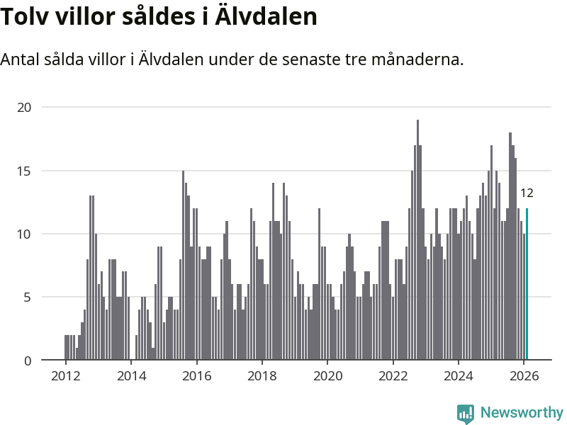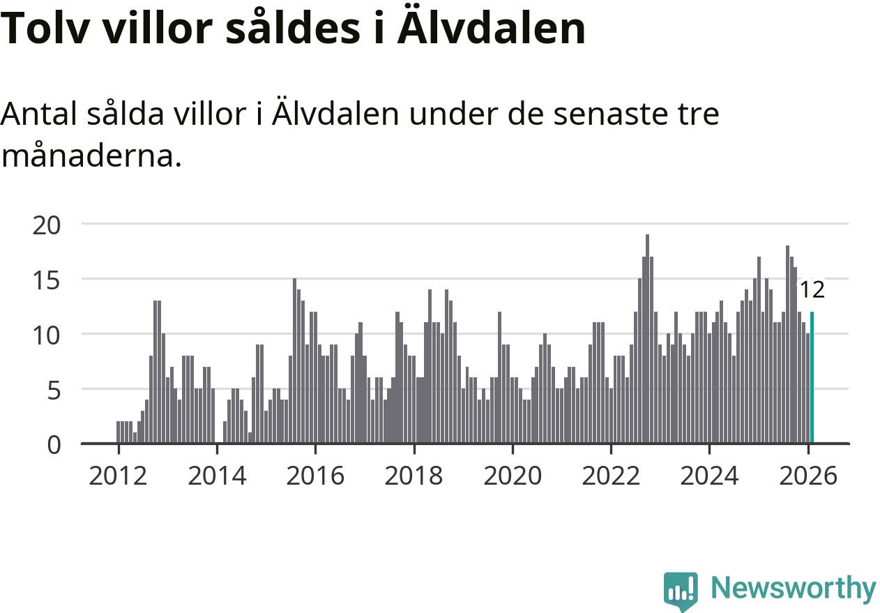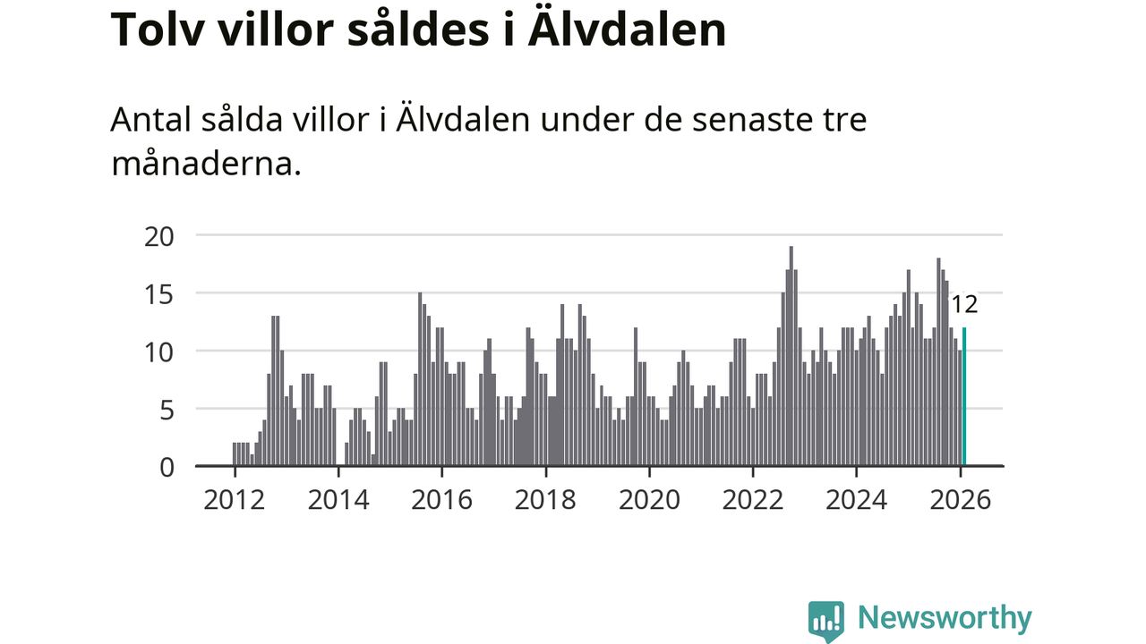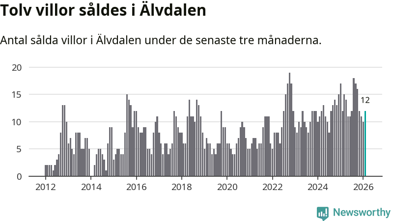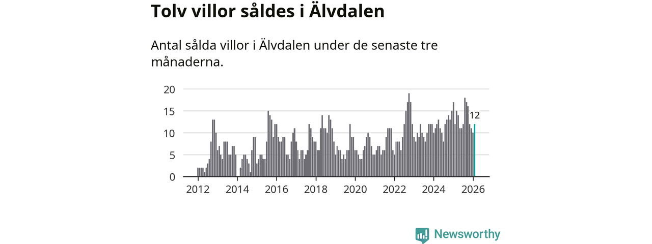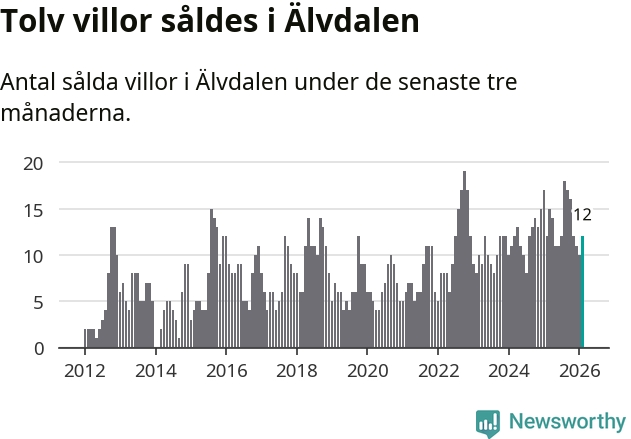 Mellan december och februari gjordes sammanlagt tolv affärer med villor i Älvdalens kommun. Det är lika många affärer som vid motsvarande tid i fjol.