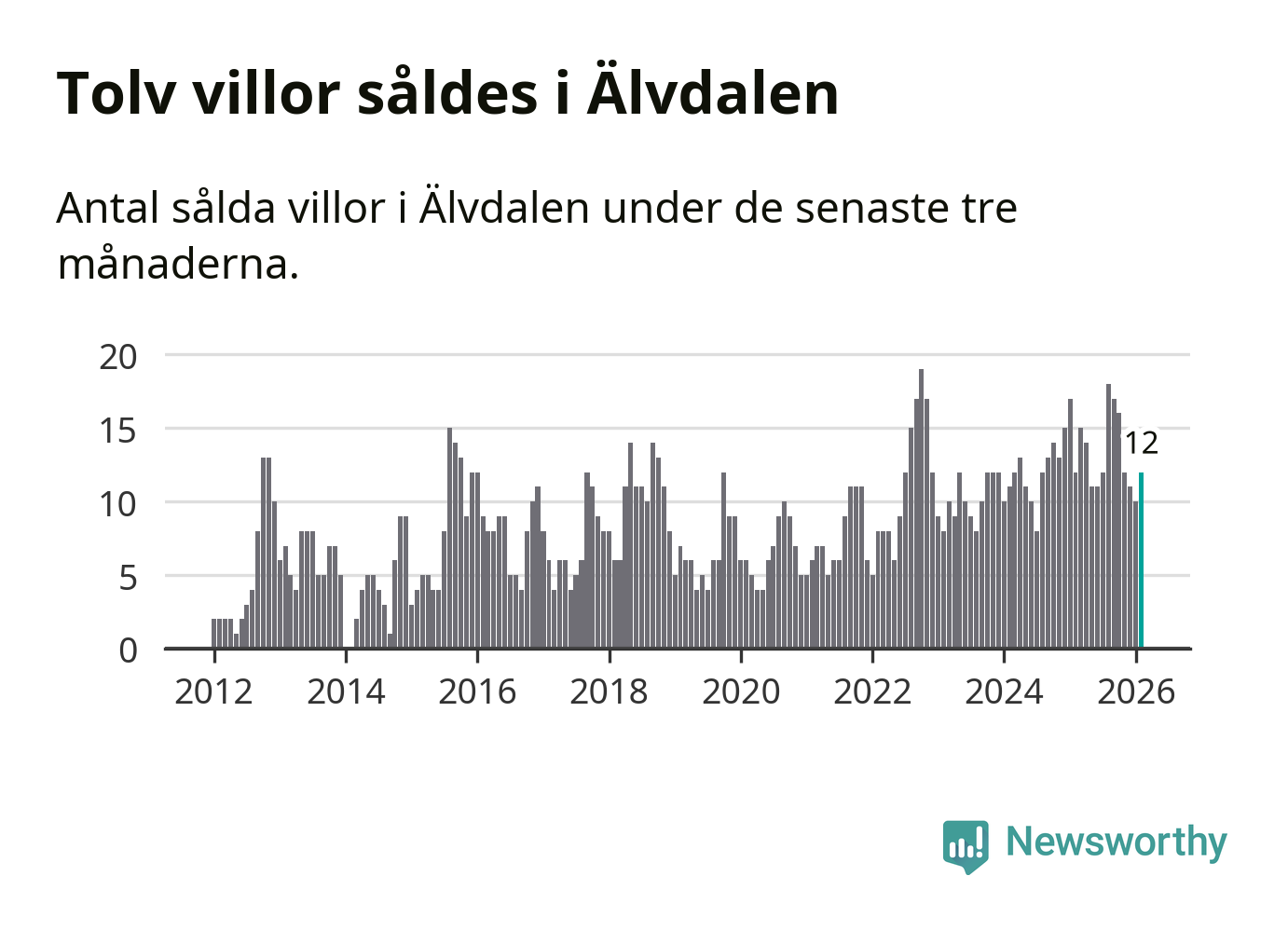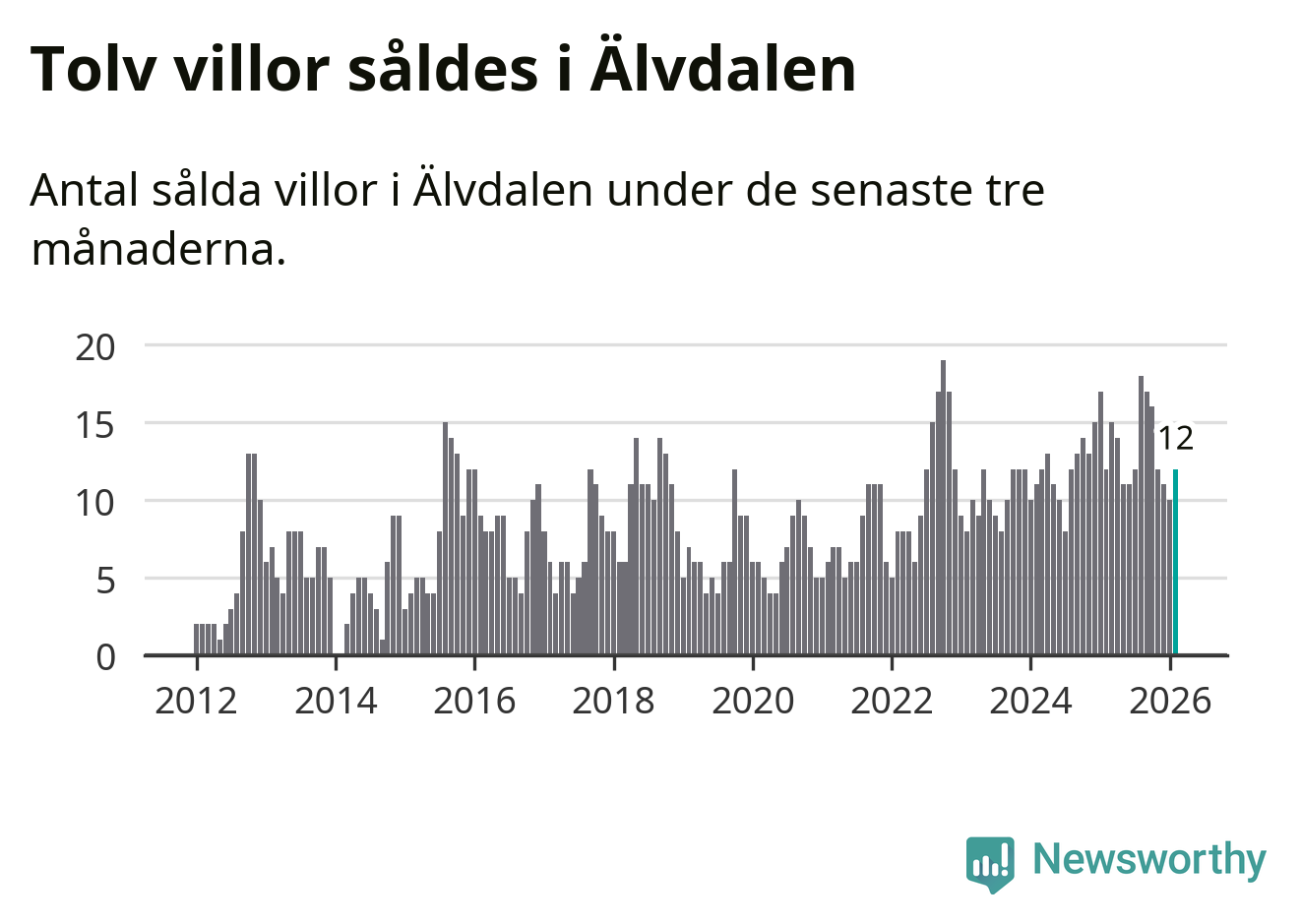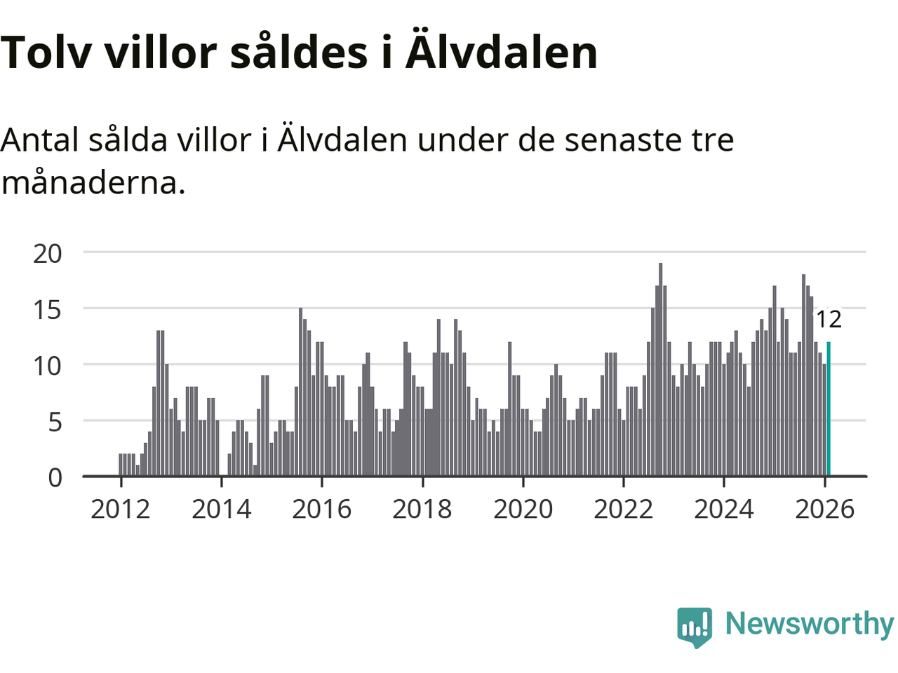 Mellan december och februari gjordes sammanlagt tolv affärer med villor i Älvdalens kommun. Det är lika många affärer som vid motsvarande tid i fjol.