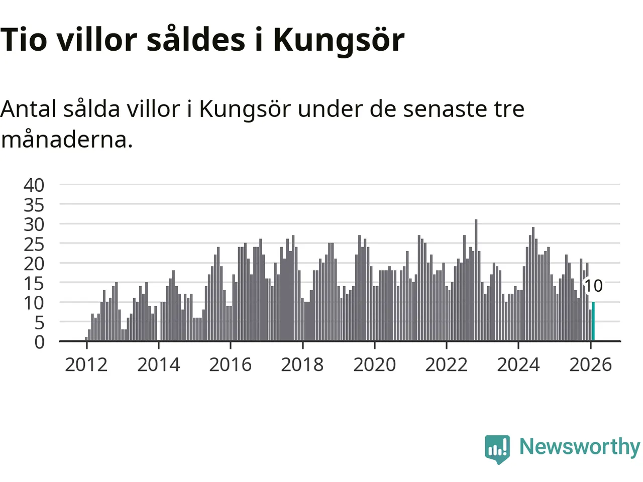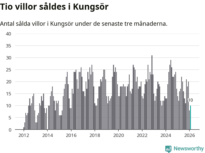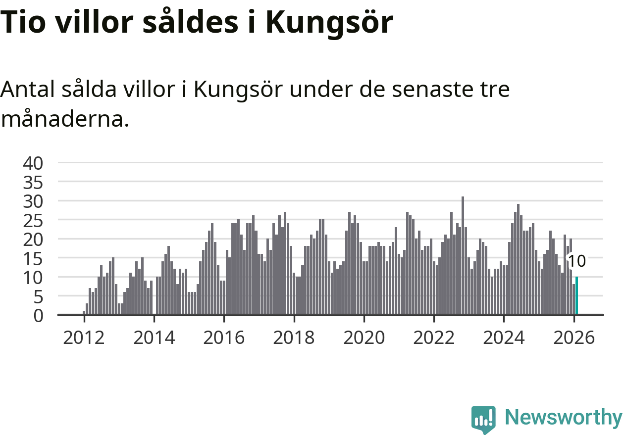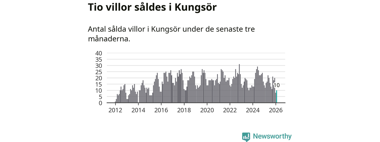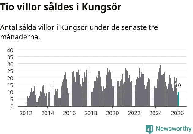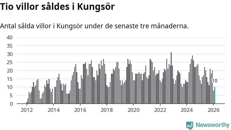 Mellan december och februari gjordes sammanlagt tio affärer med villor i Kungsörs kommun. Det kan jämföras med tolv vid motsvarande tid i fjol.
