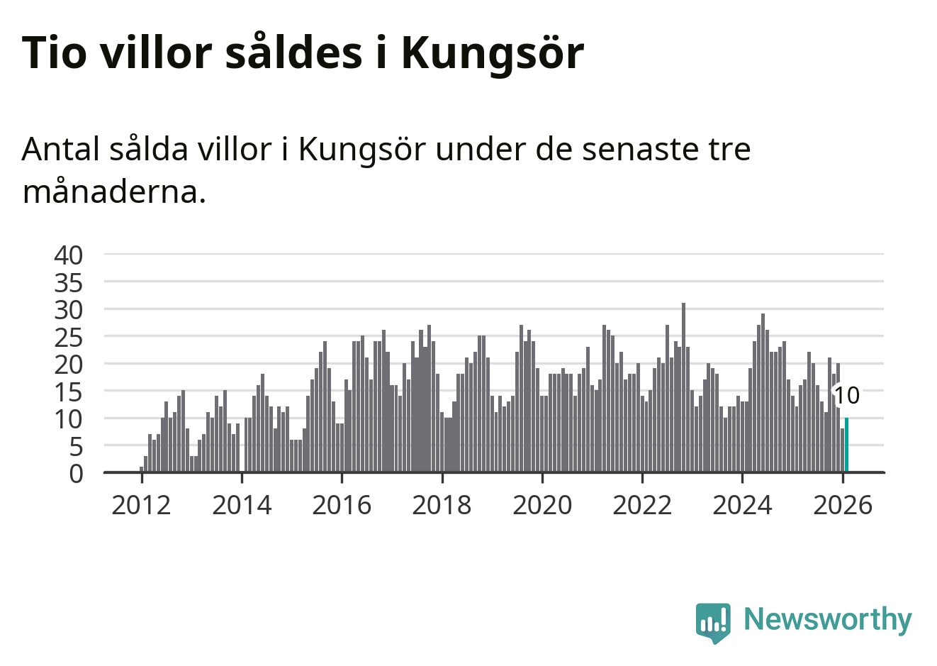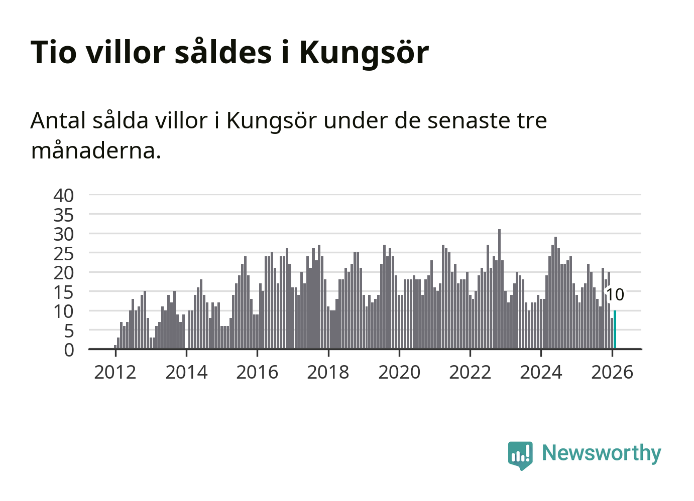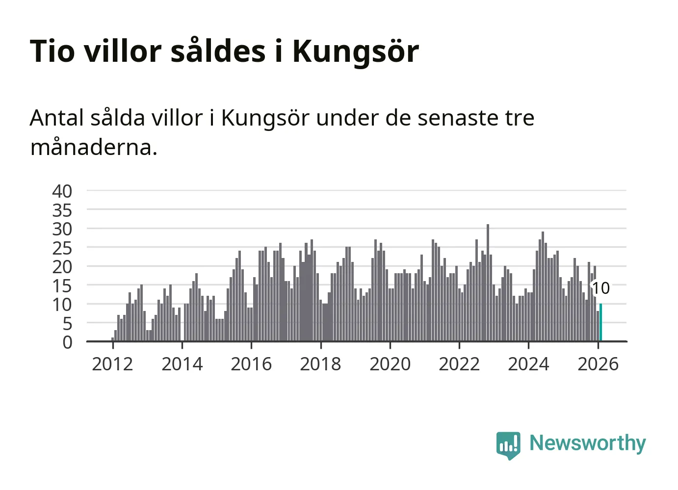Mellan december och februari gjordes sammanlagt tio affärer med villor i Kungsörs kommun. Det kan jämföras med tolv vid motsvarande tid i fjol.