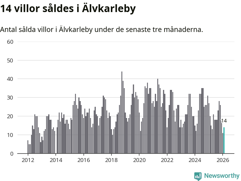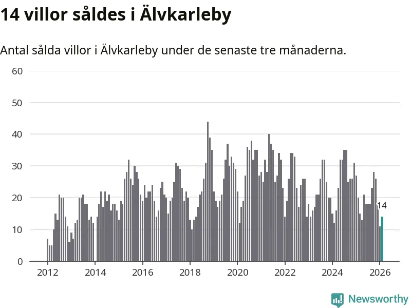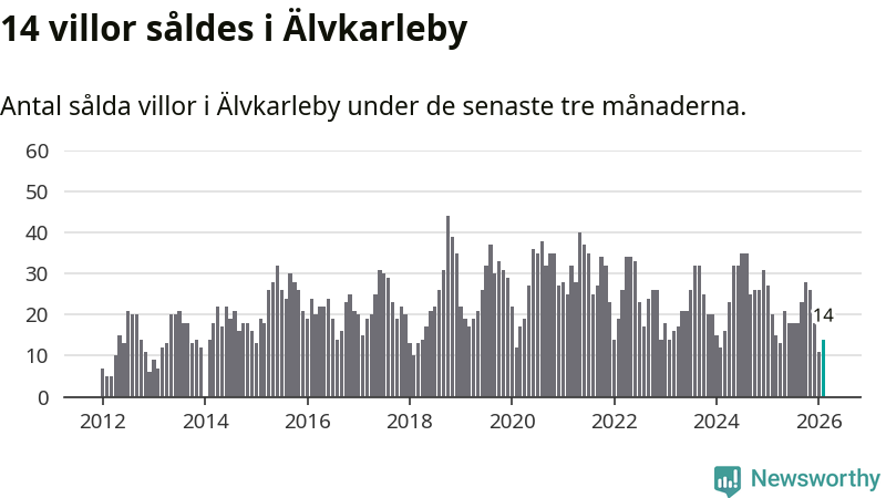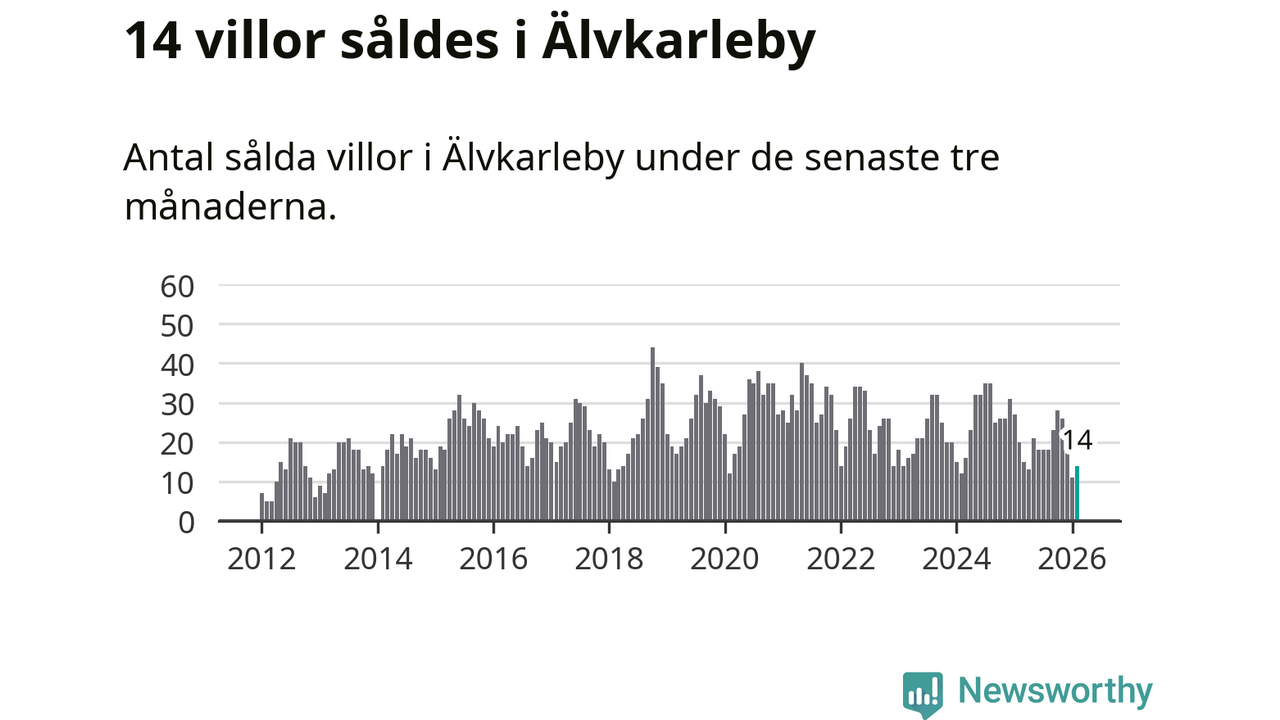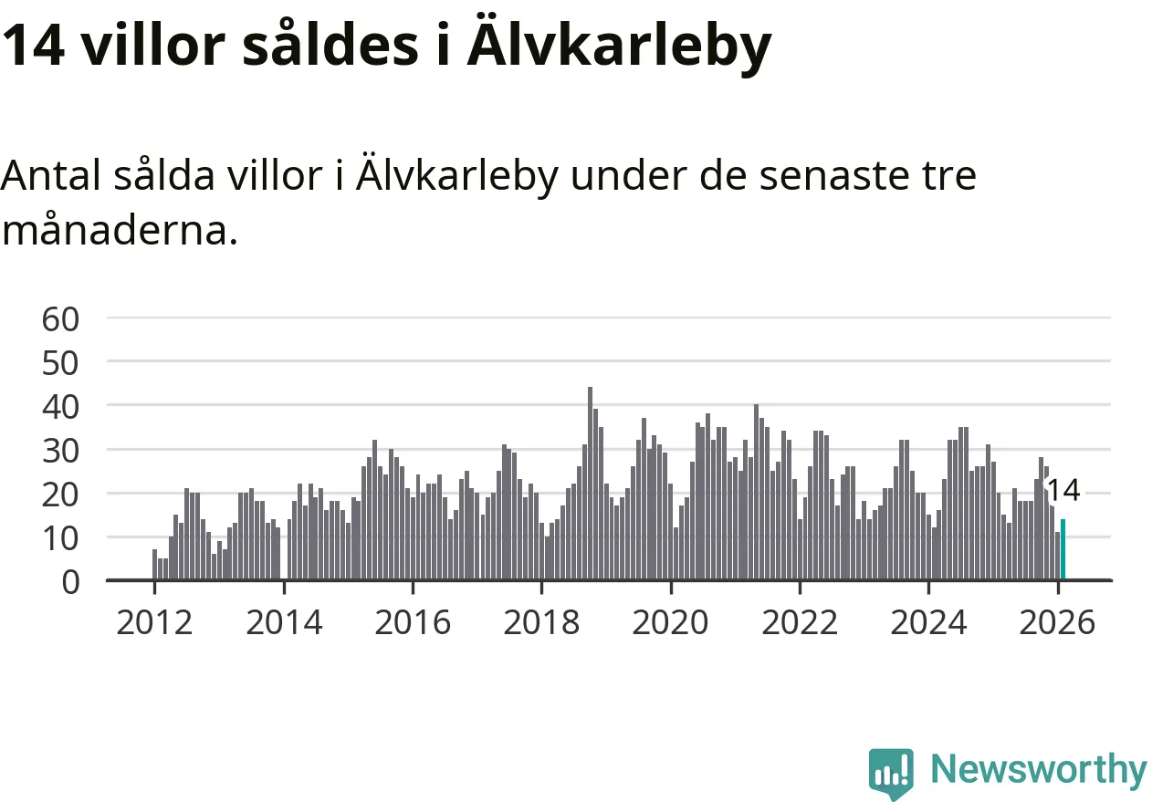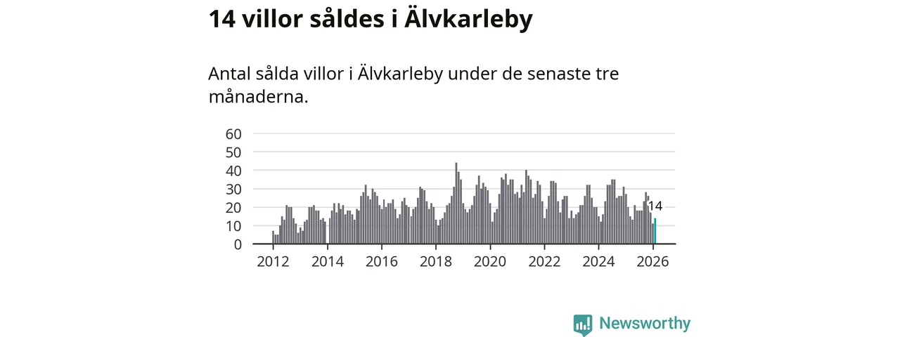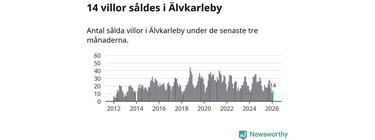 Mellan december och februari gjordes sammanlagt 14 affärer med villor i Älvkarleby kommun. Det kan jämföras med 20 vid motsvarande tid i fjol.