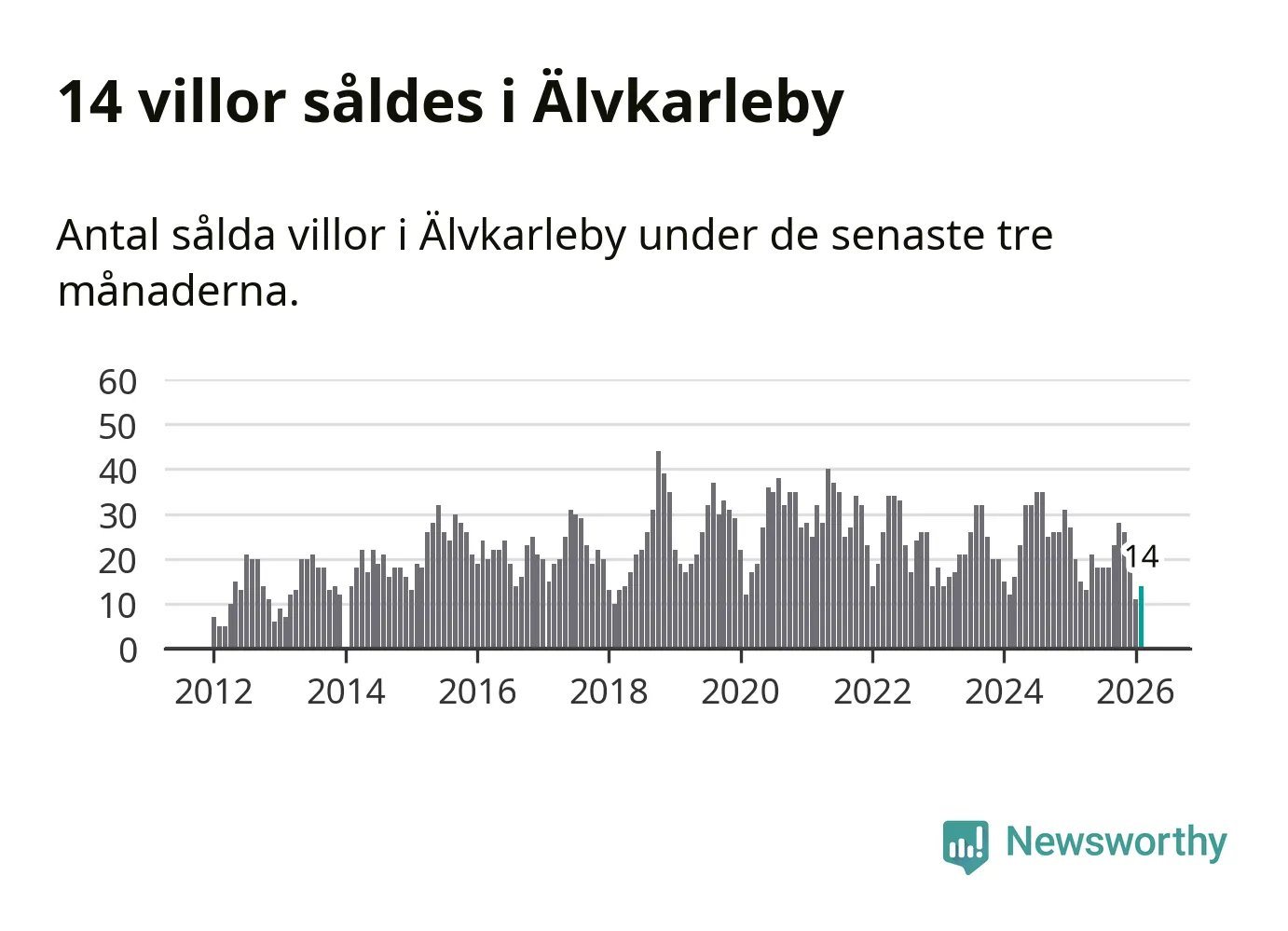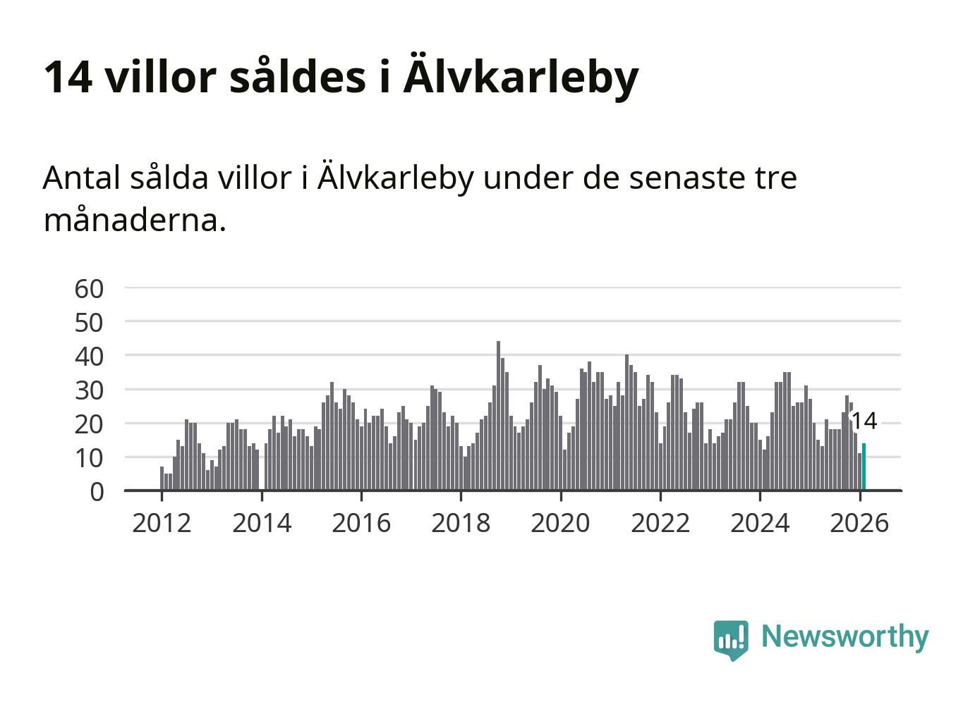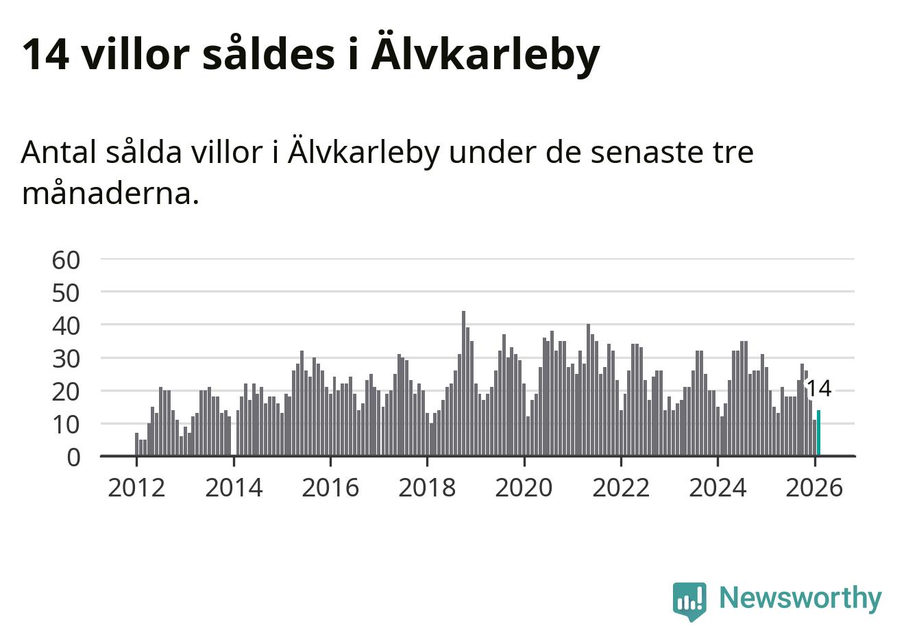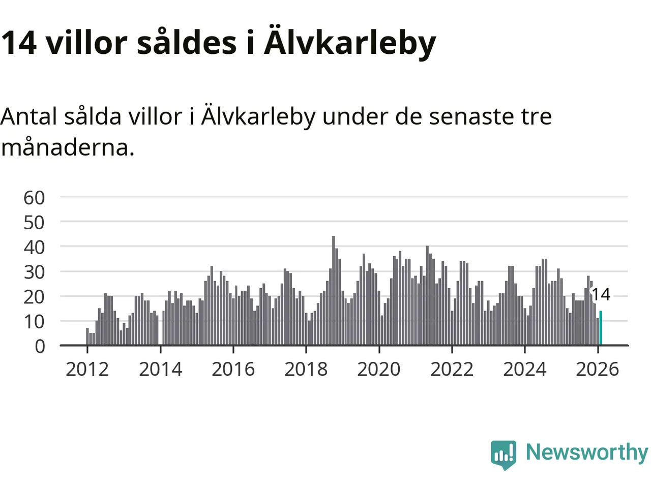 Mellan december och februari gjordes sammanlagt 14 affärer med villor i Älvkarleby kommun. Det kan jämföras med 20 vid motsvarande tid i fjol.
