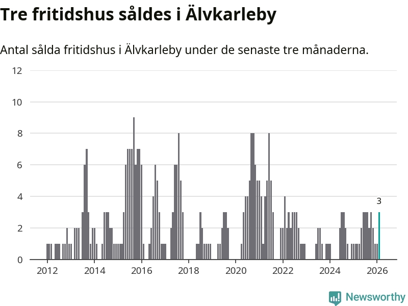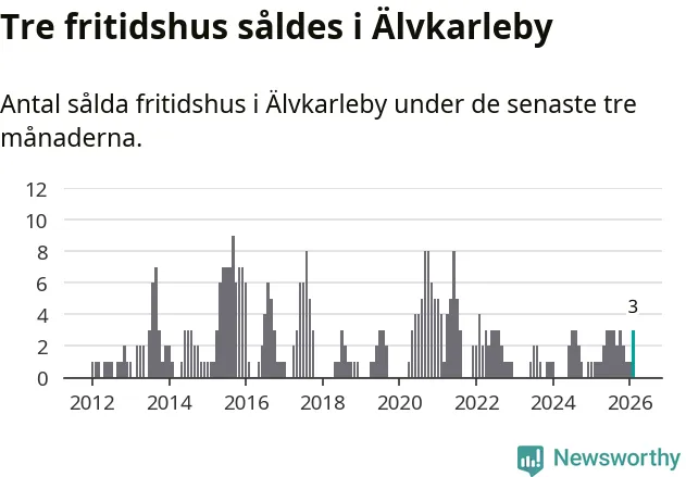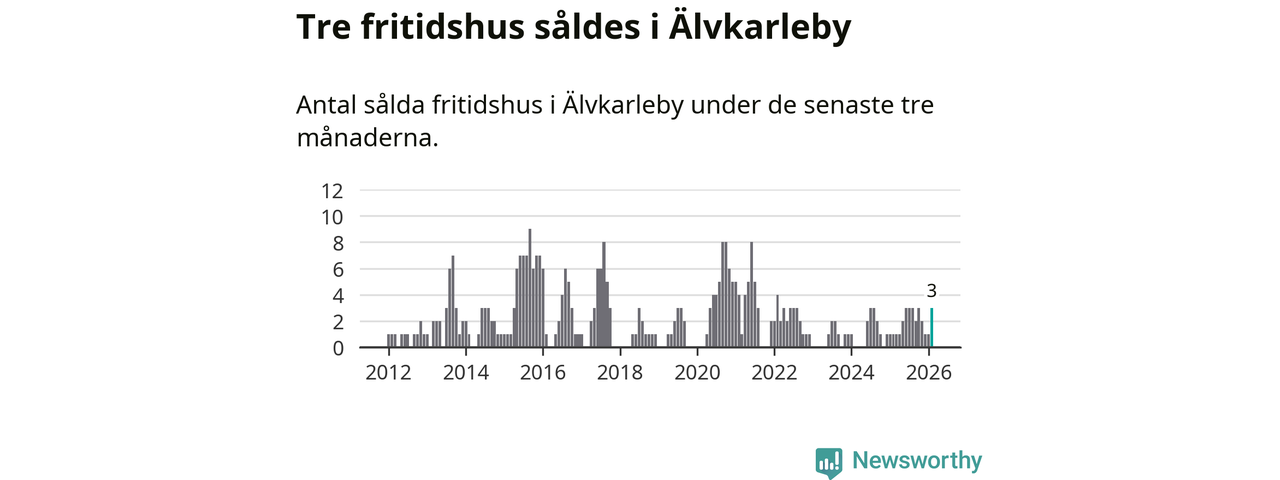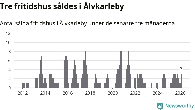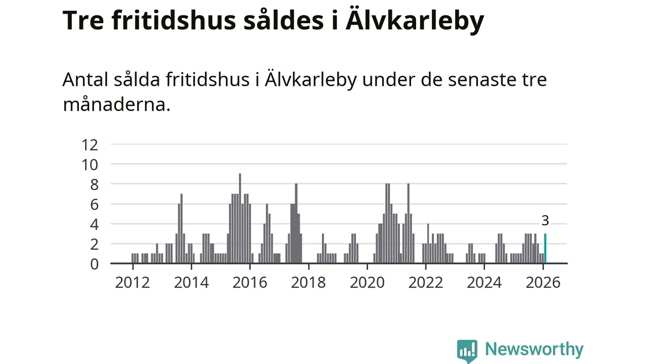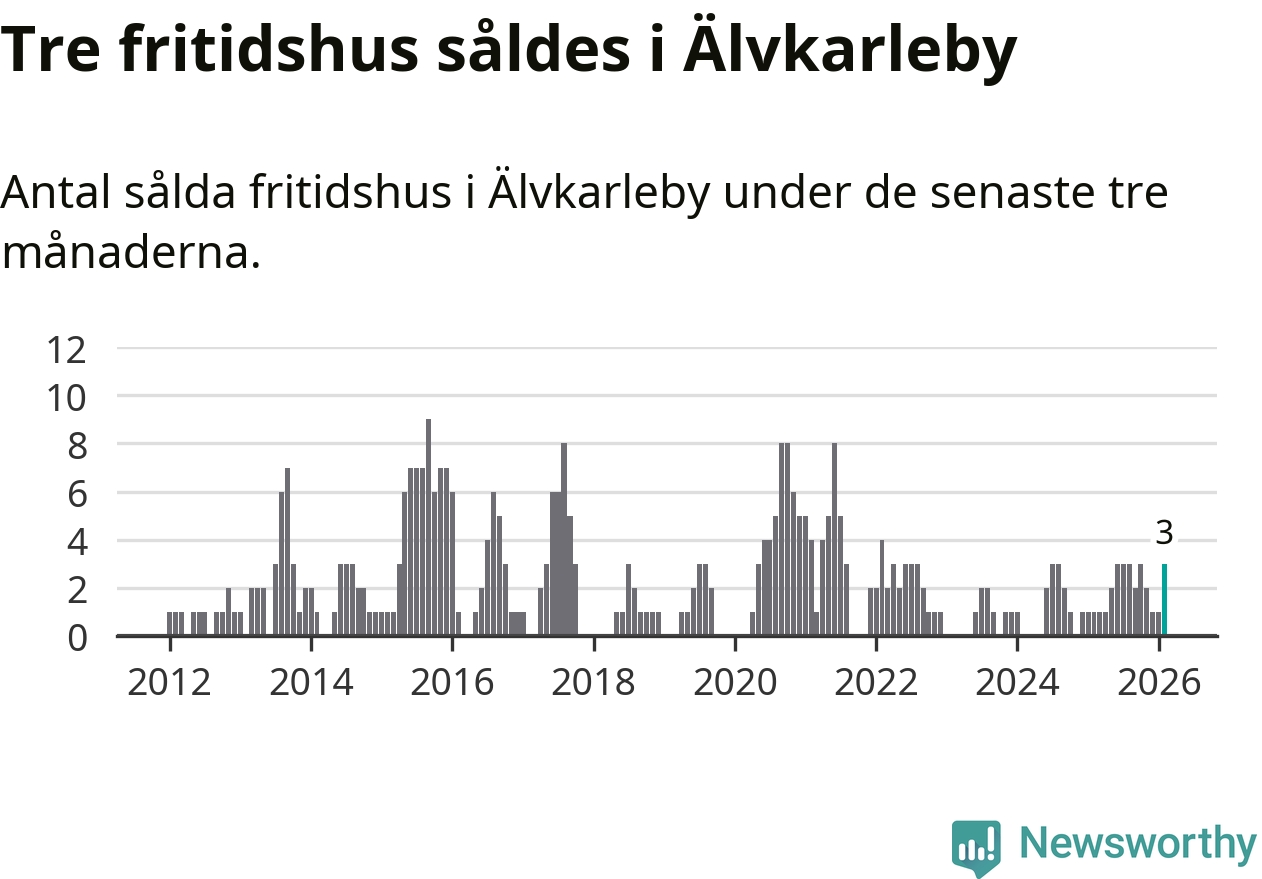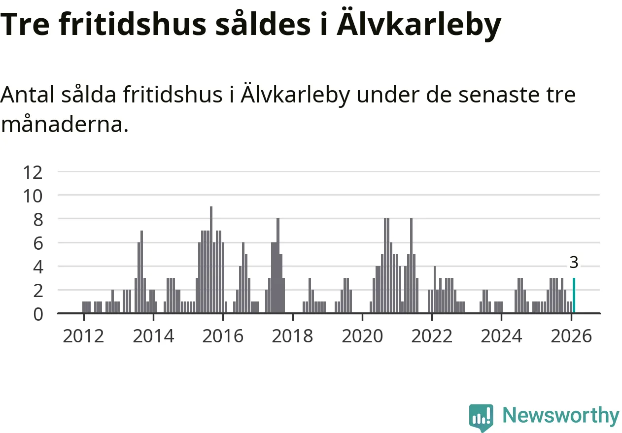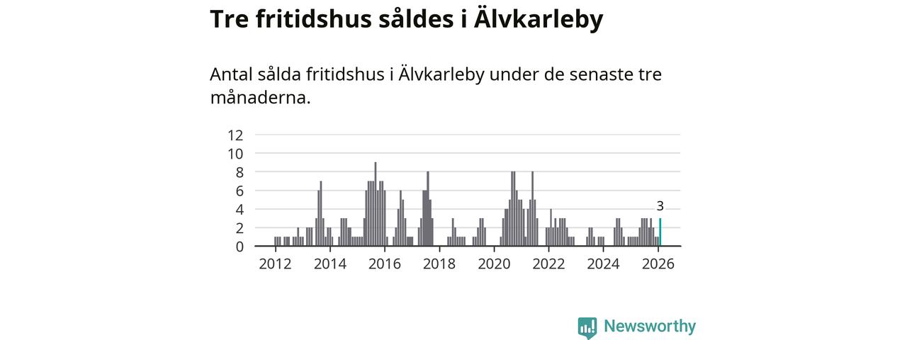 Mellan december och februari gjordes sammanlagt tre affärer med fritidshus i Älvkarleby kommun. Det kan jämföras med ett vid motsvarande tid i fjol.