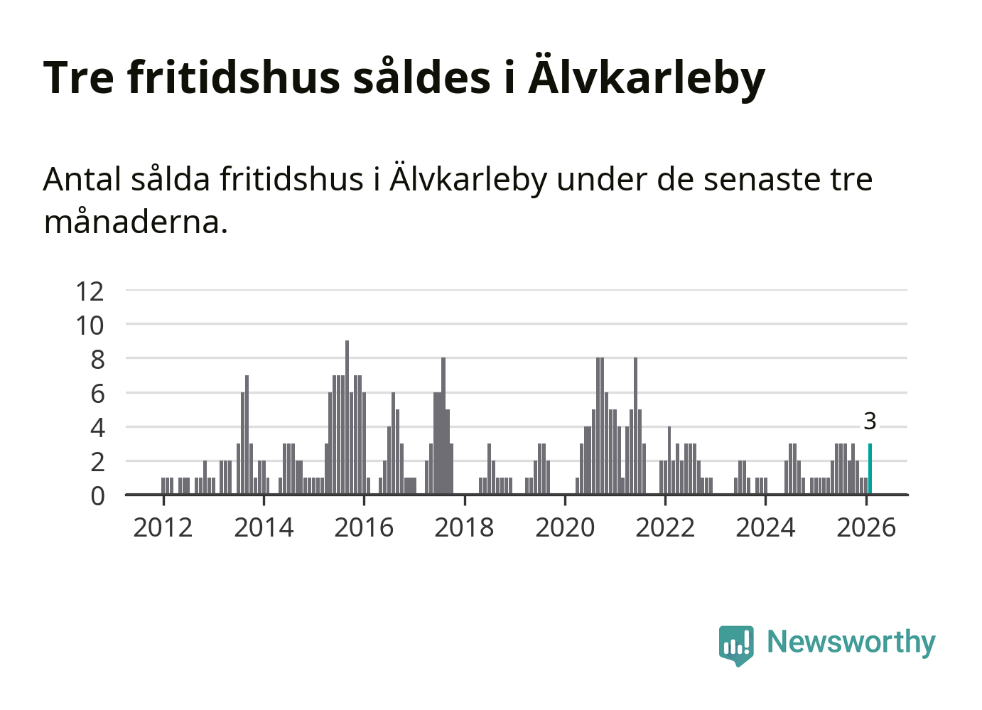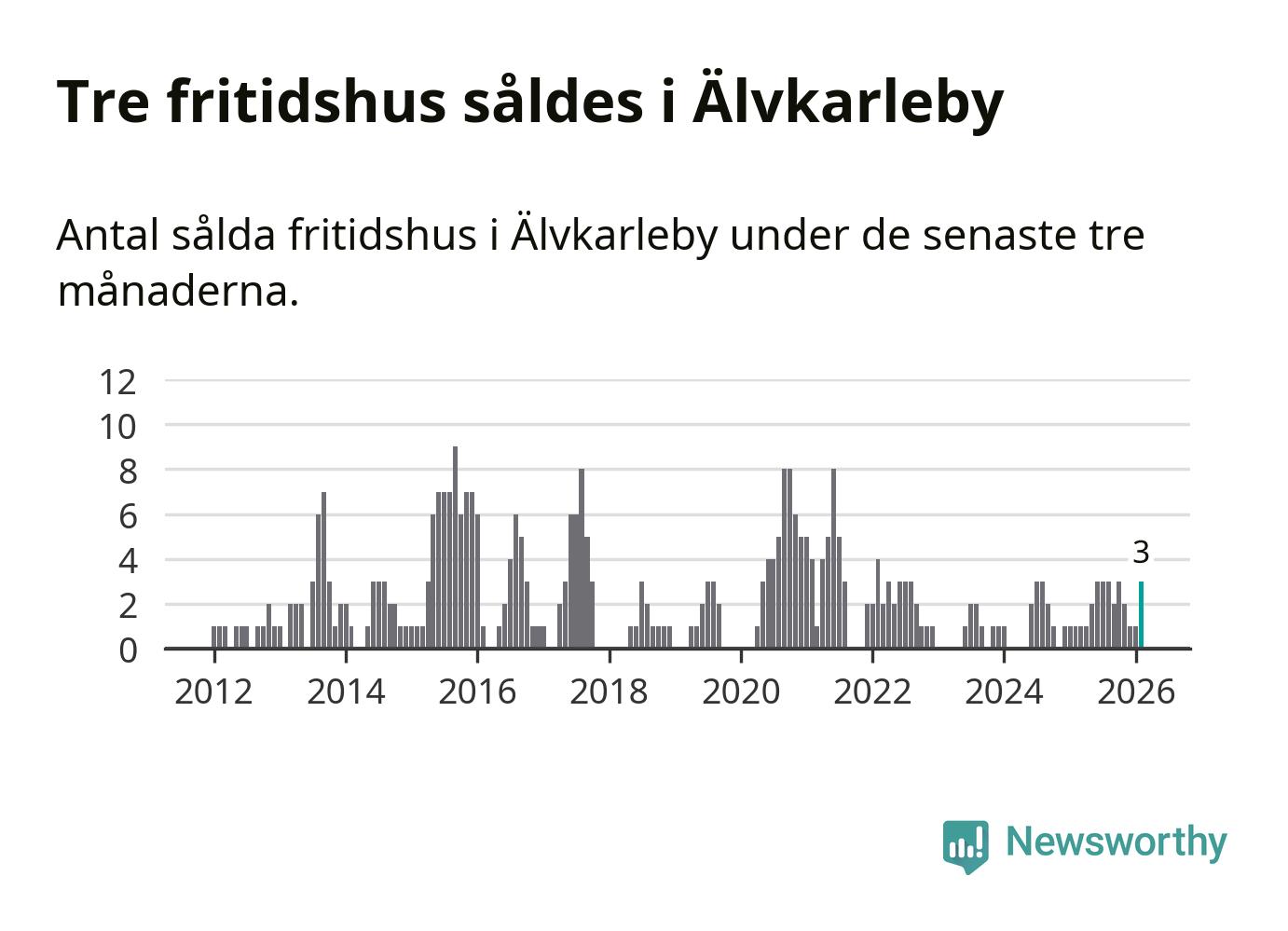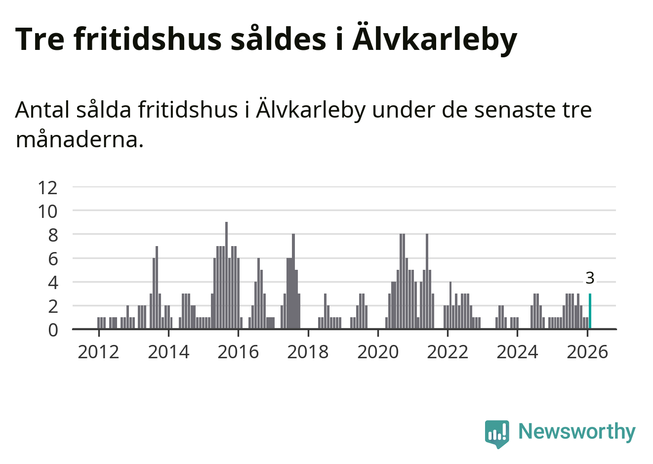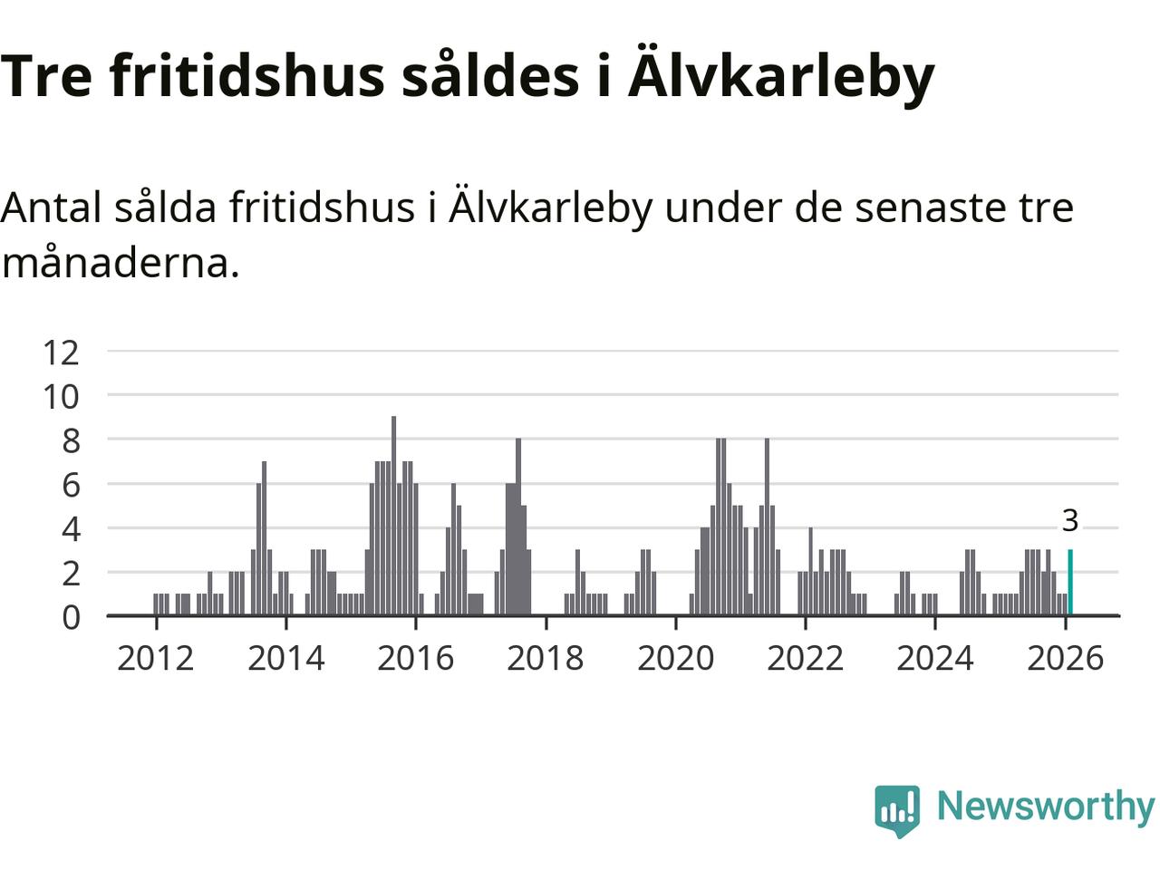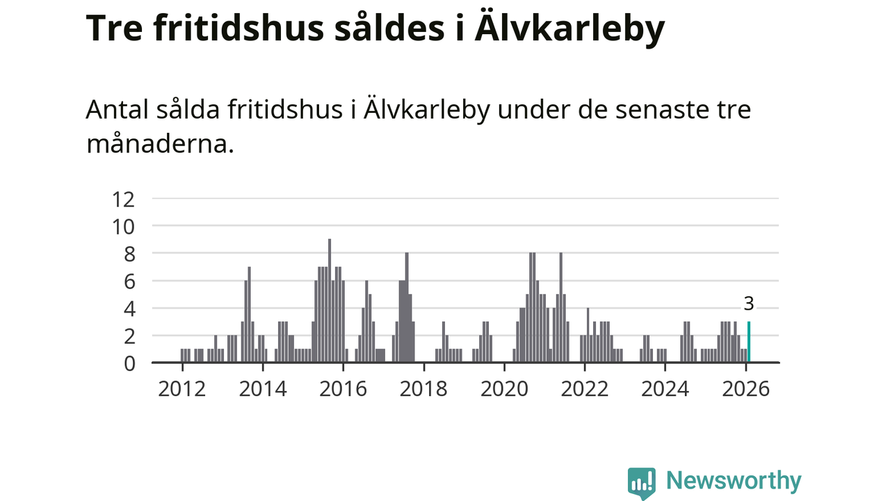Mellan december och februari gjordes sammanlagt tre affärer med fritidshus i Älvkarleby kommun. Det kan jämföras med ett vid motsvarande tid i fjol.