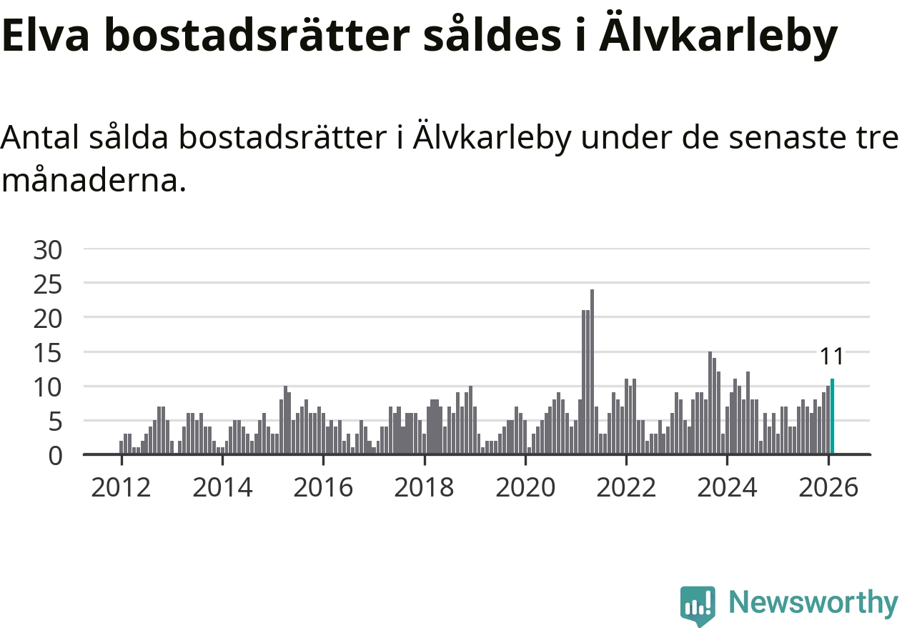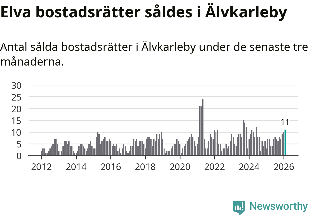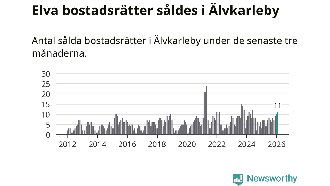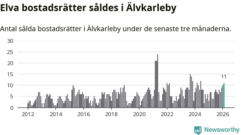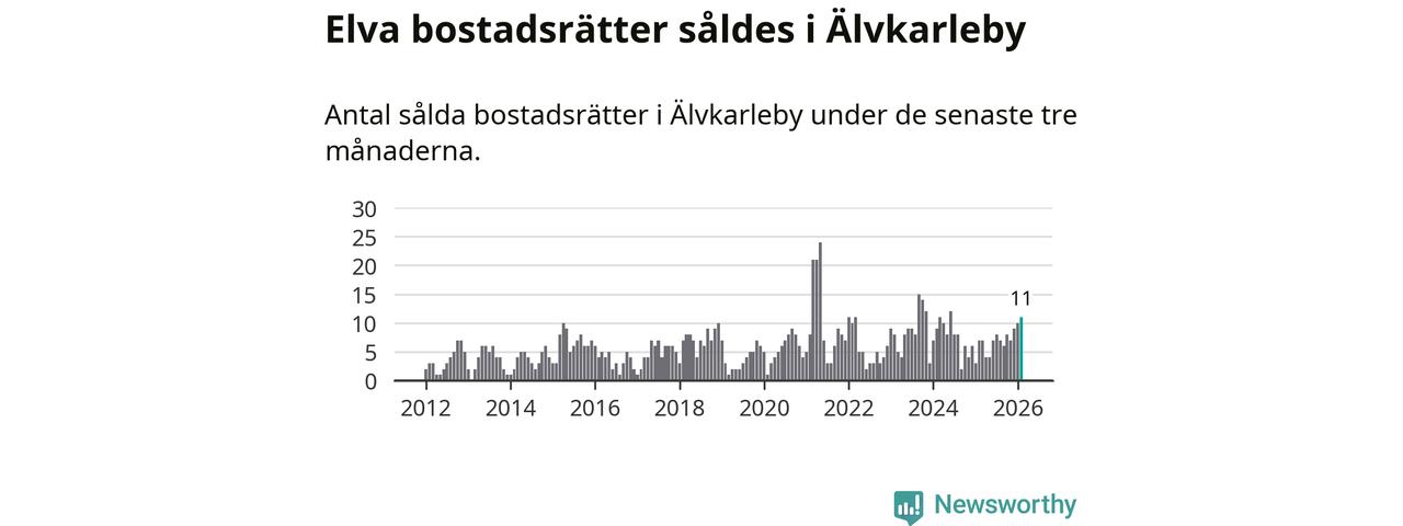 Mellan december och februari gjordes sammanlagt elva affärer med bostadsrätter i Älvkarleby kommun. Det kan jämföras med sju vid motsvarande tid i fjol.