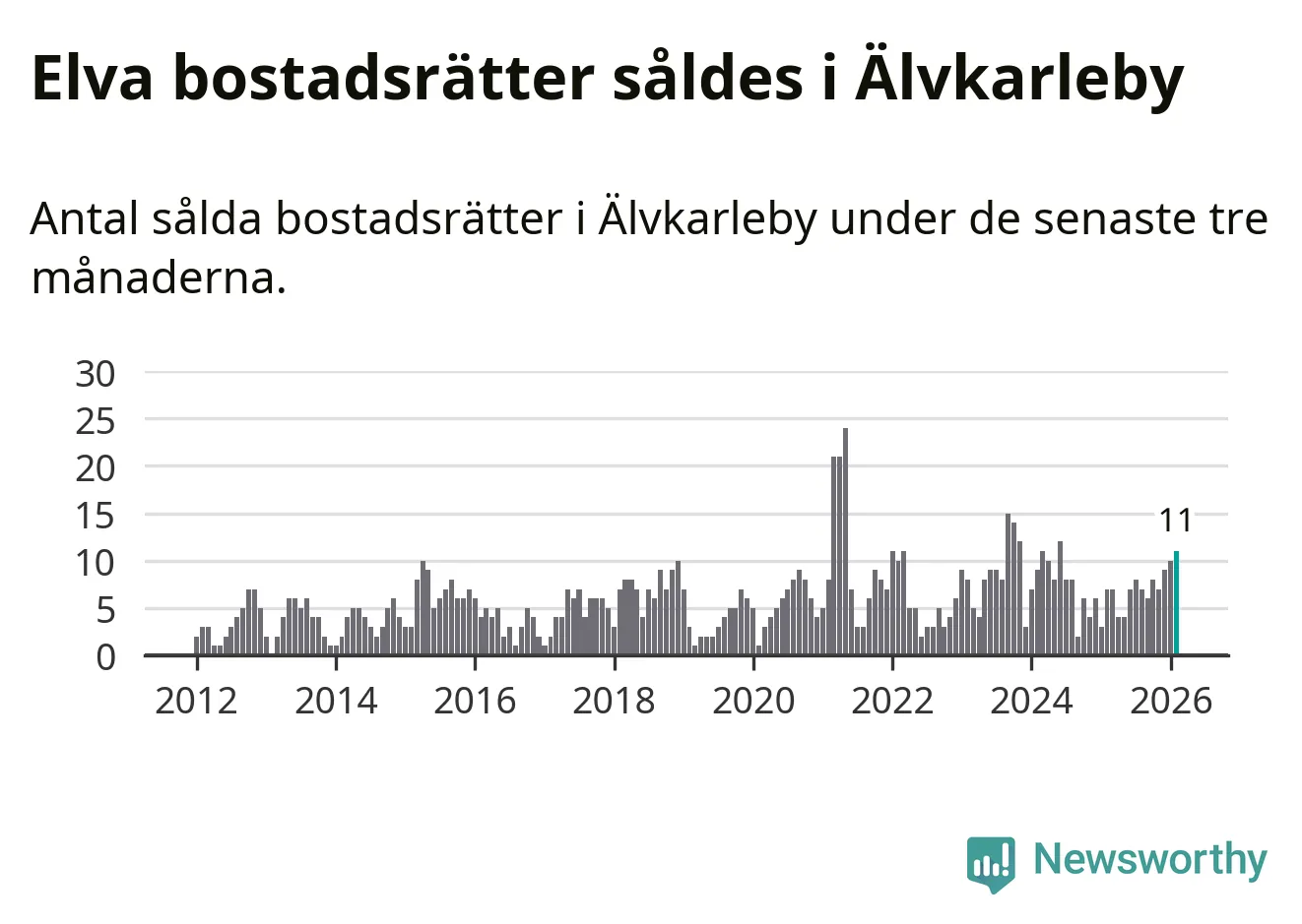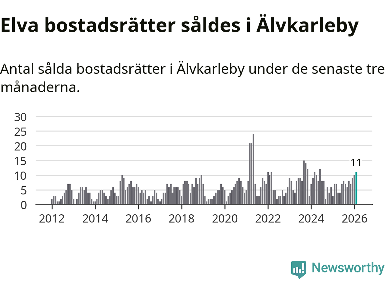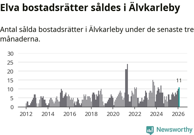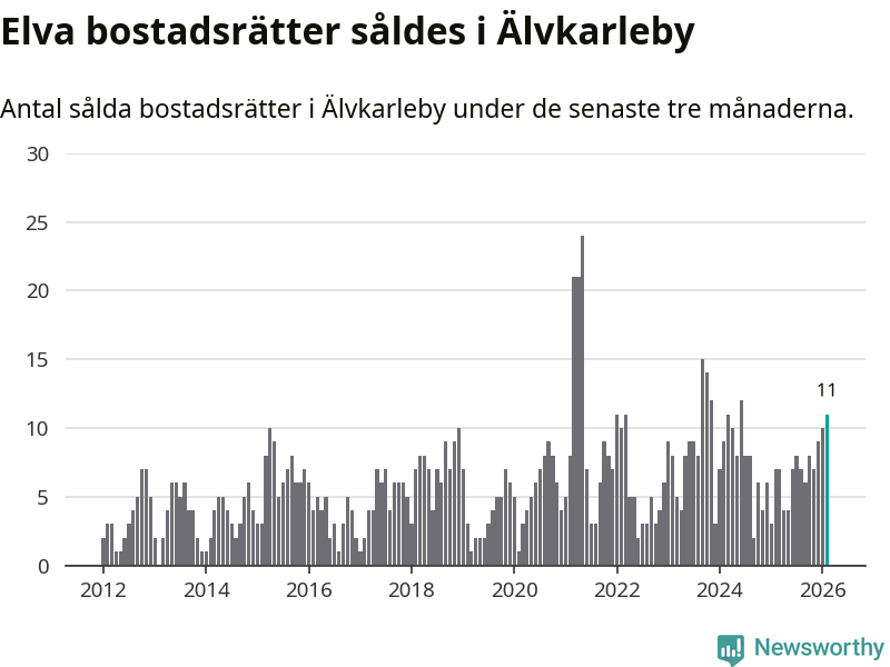 Mellan december och februari gjordes sammanlagt elva affärer med bostadsrätter i Älvkarleby kommun. Det kan jämföras med sju vid motsvarande tid i fjol.