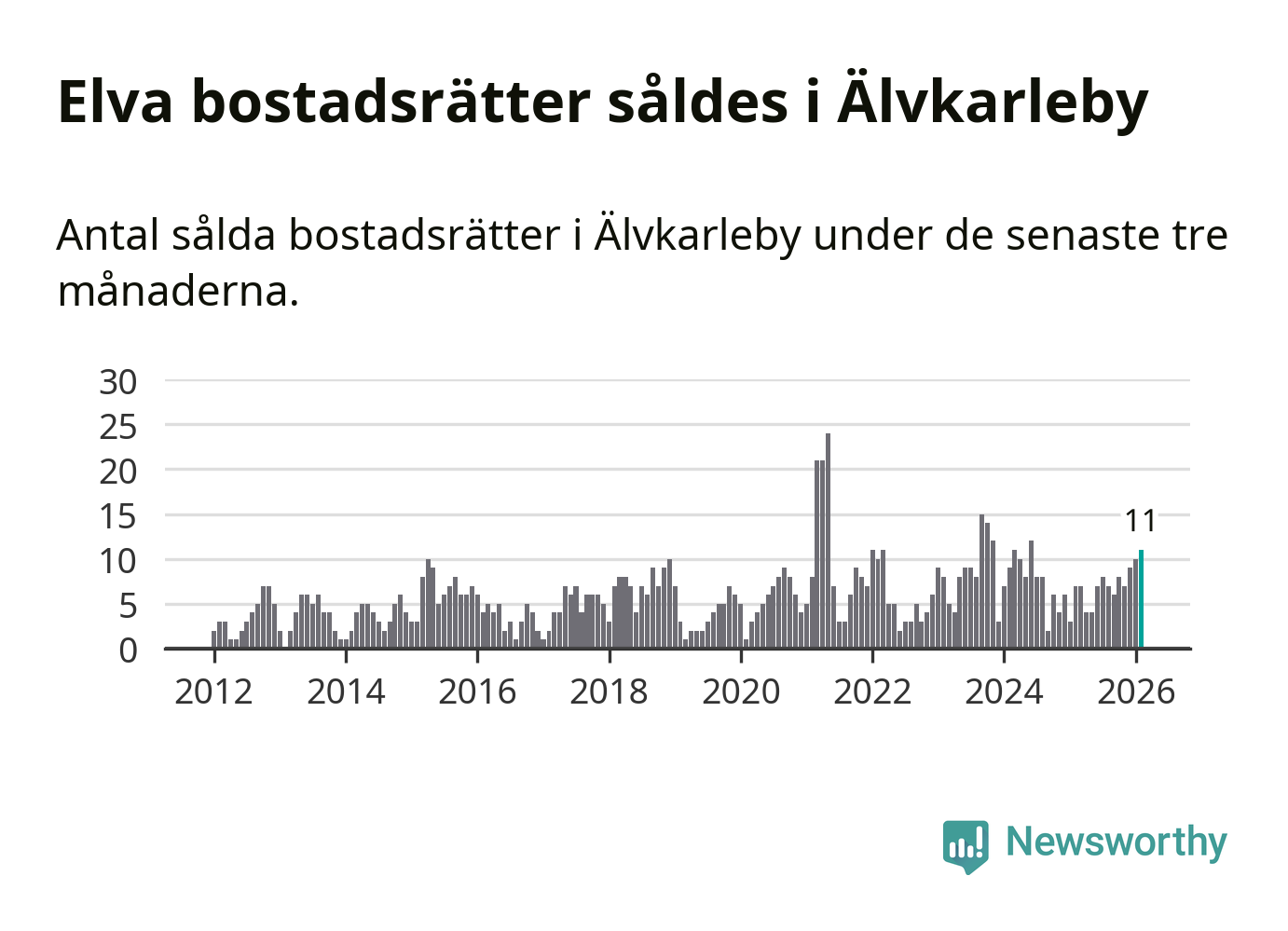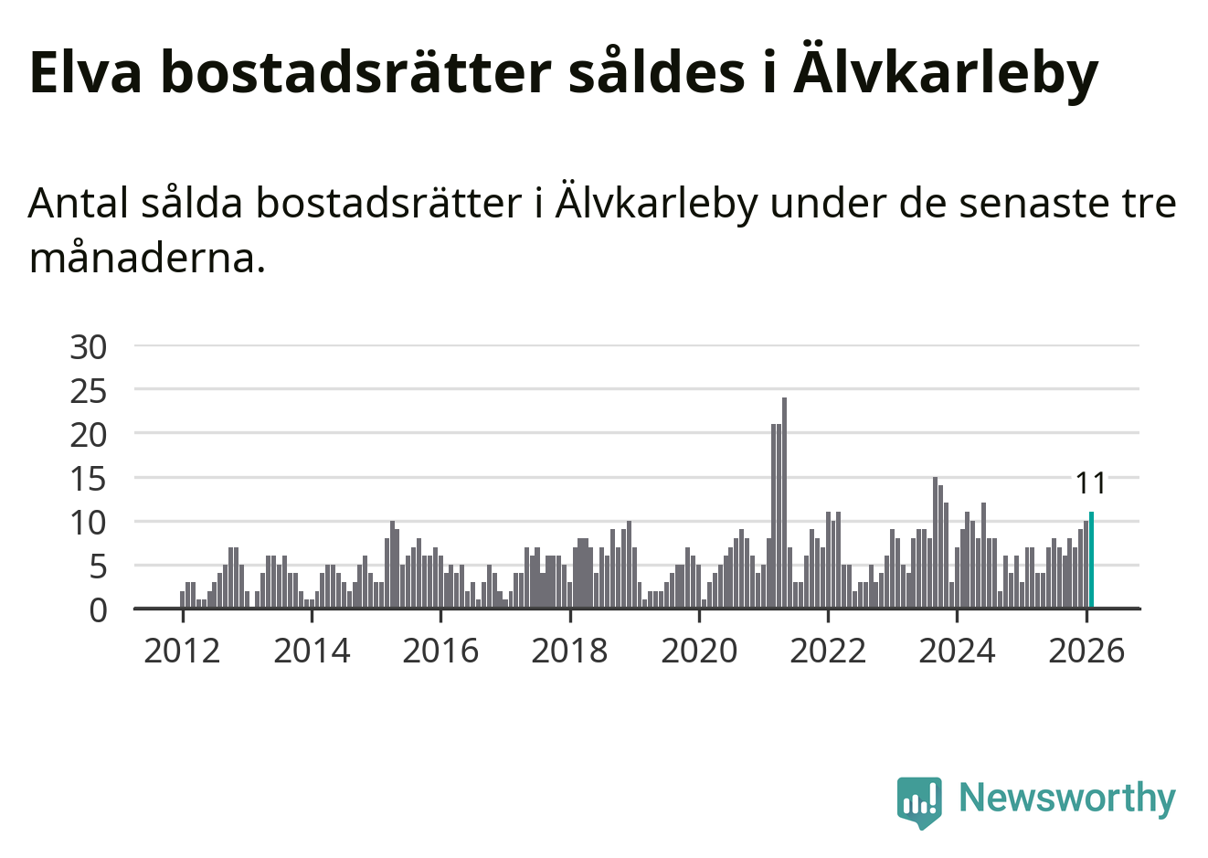 Graf: Antal sålda bostadsrätter i Älvkarleby kommun