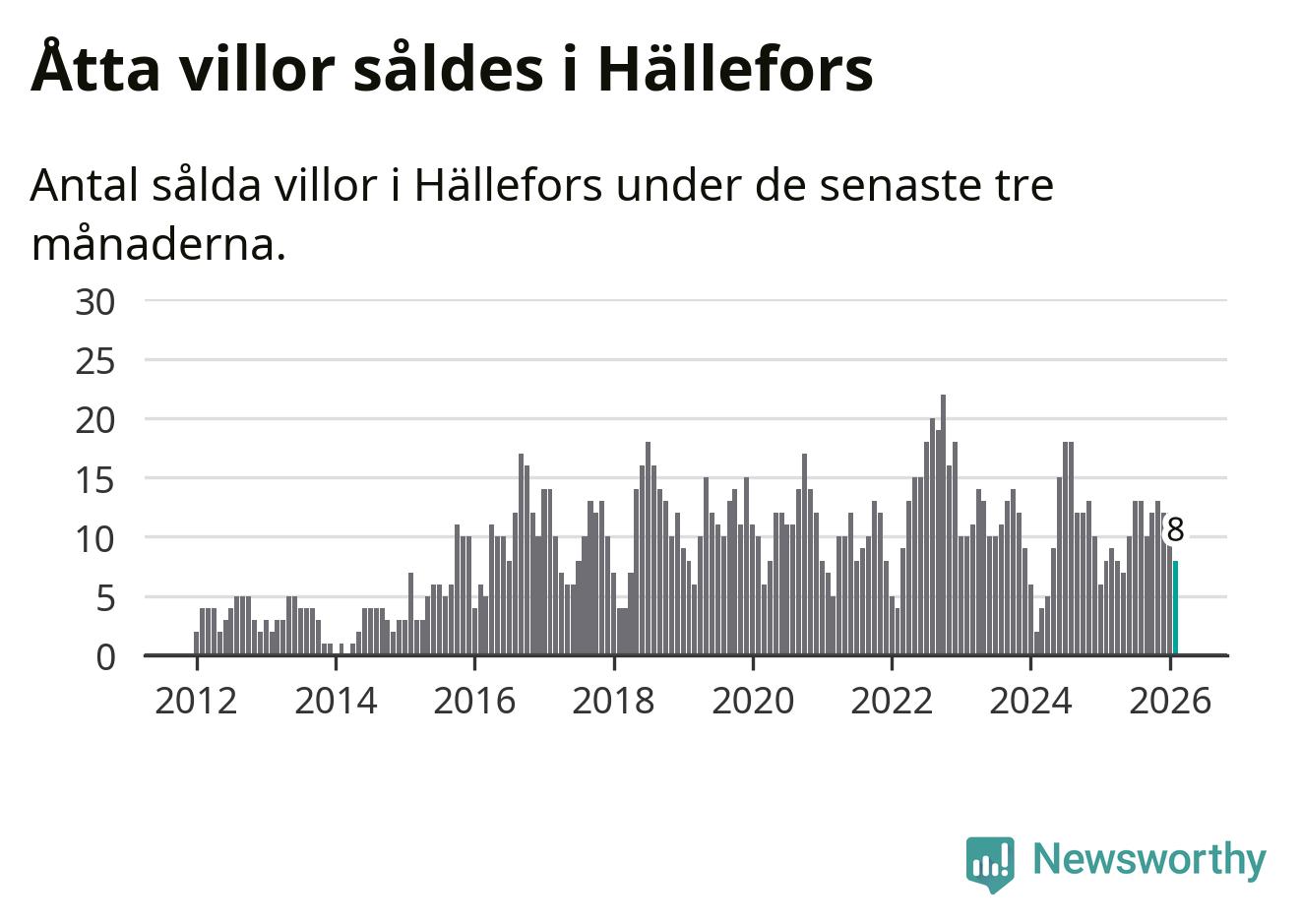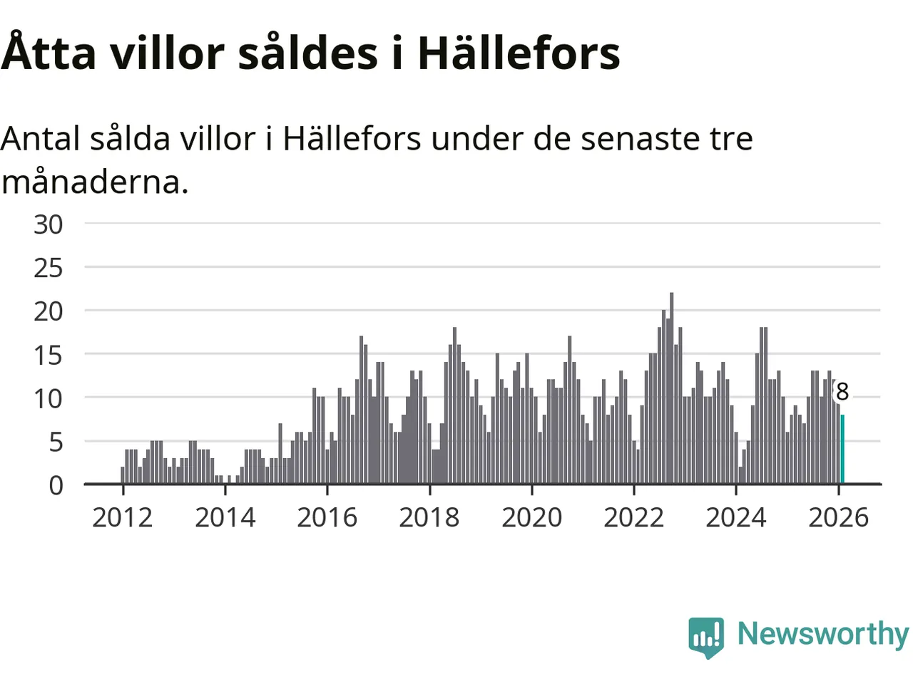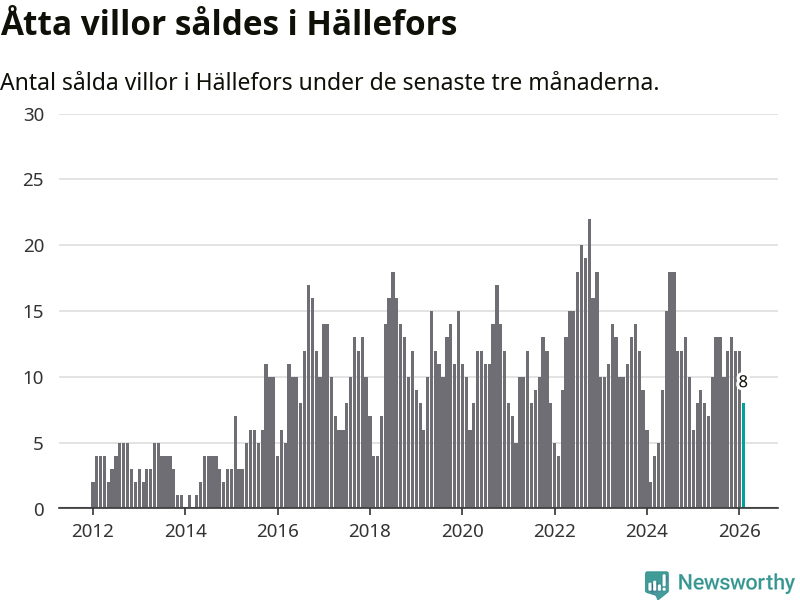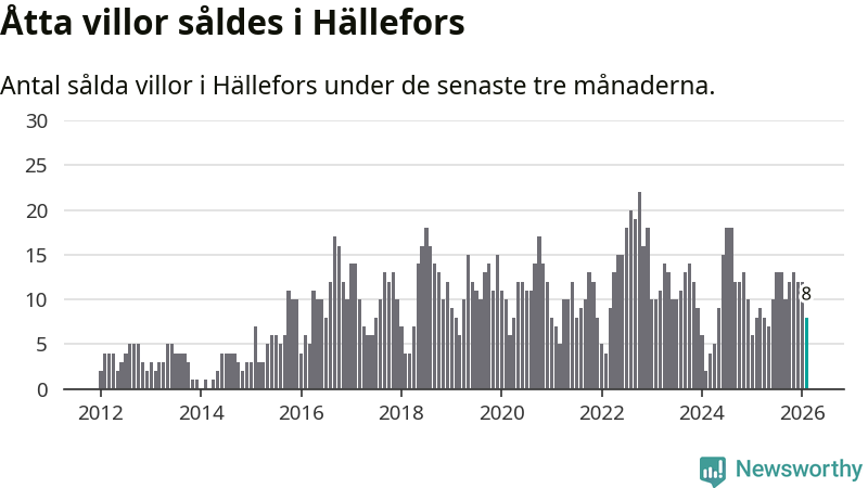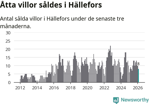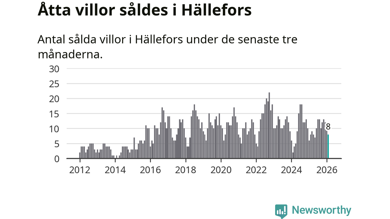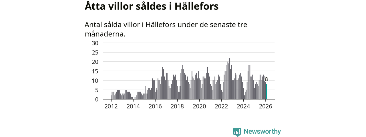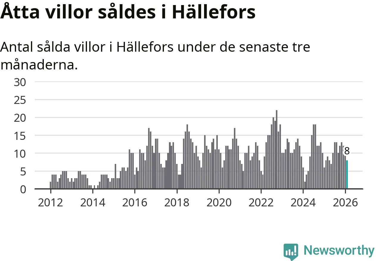 Mellan december och februari gjordes sammanlagt åtta affärer med villor i Hällefors kommun. Det är lika många affärer som vid motsvarande tid i fjol.
