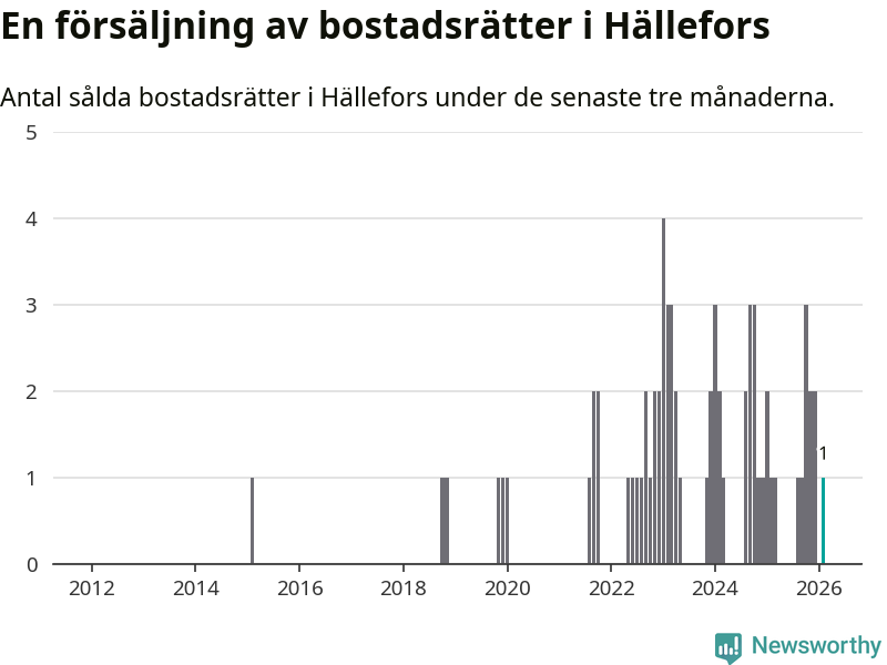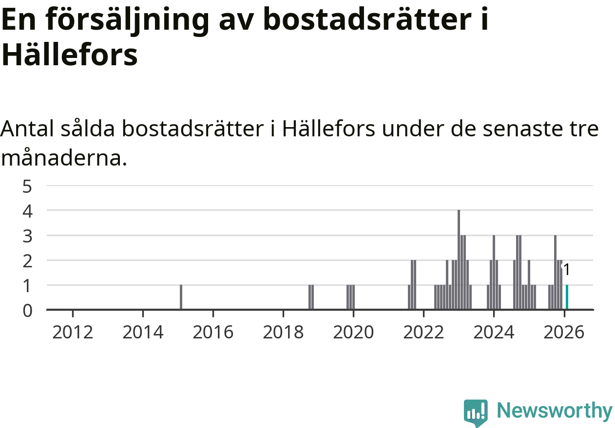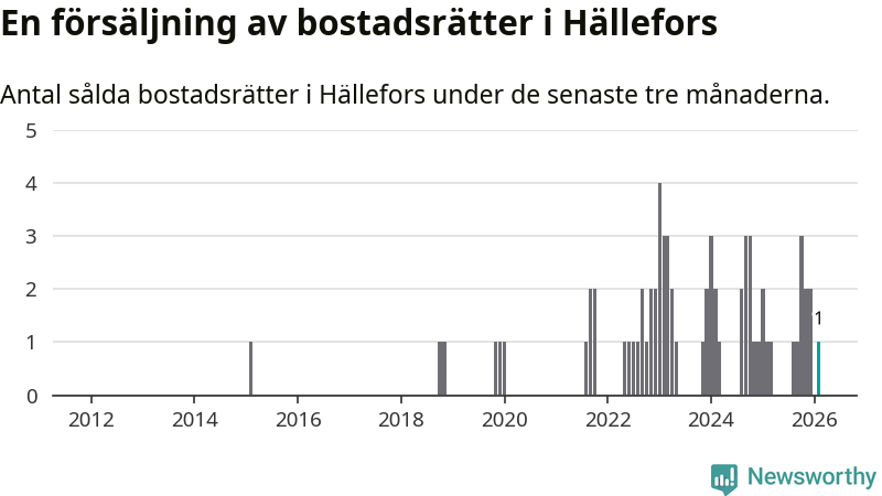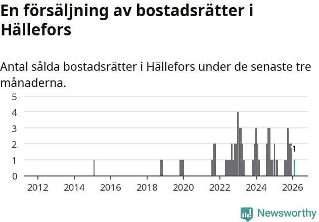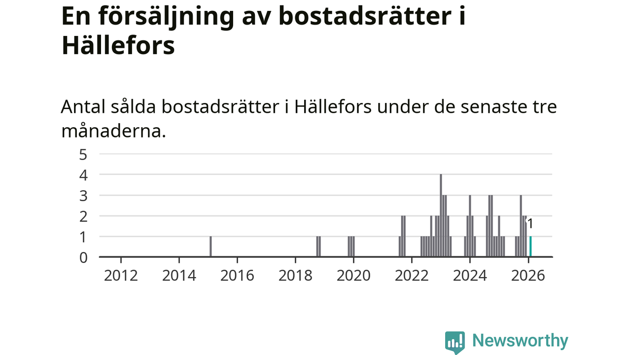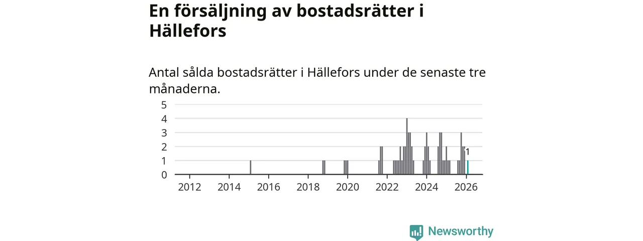 Mellan december och februari gjordes sammanlagt en affär med bostadsrätter i Hällefors kommun. Det är lika många affärer som vid motsvarande tid i fjol.