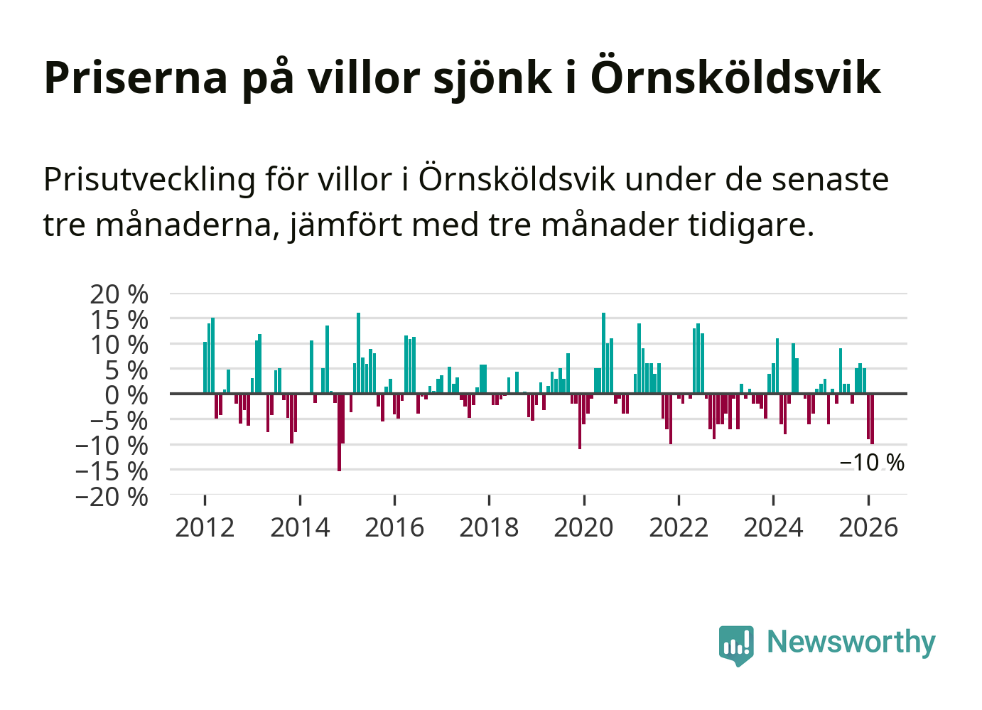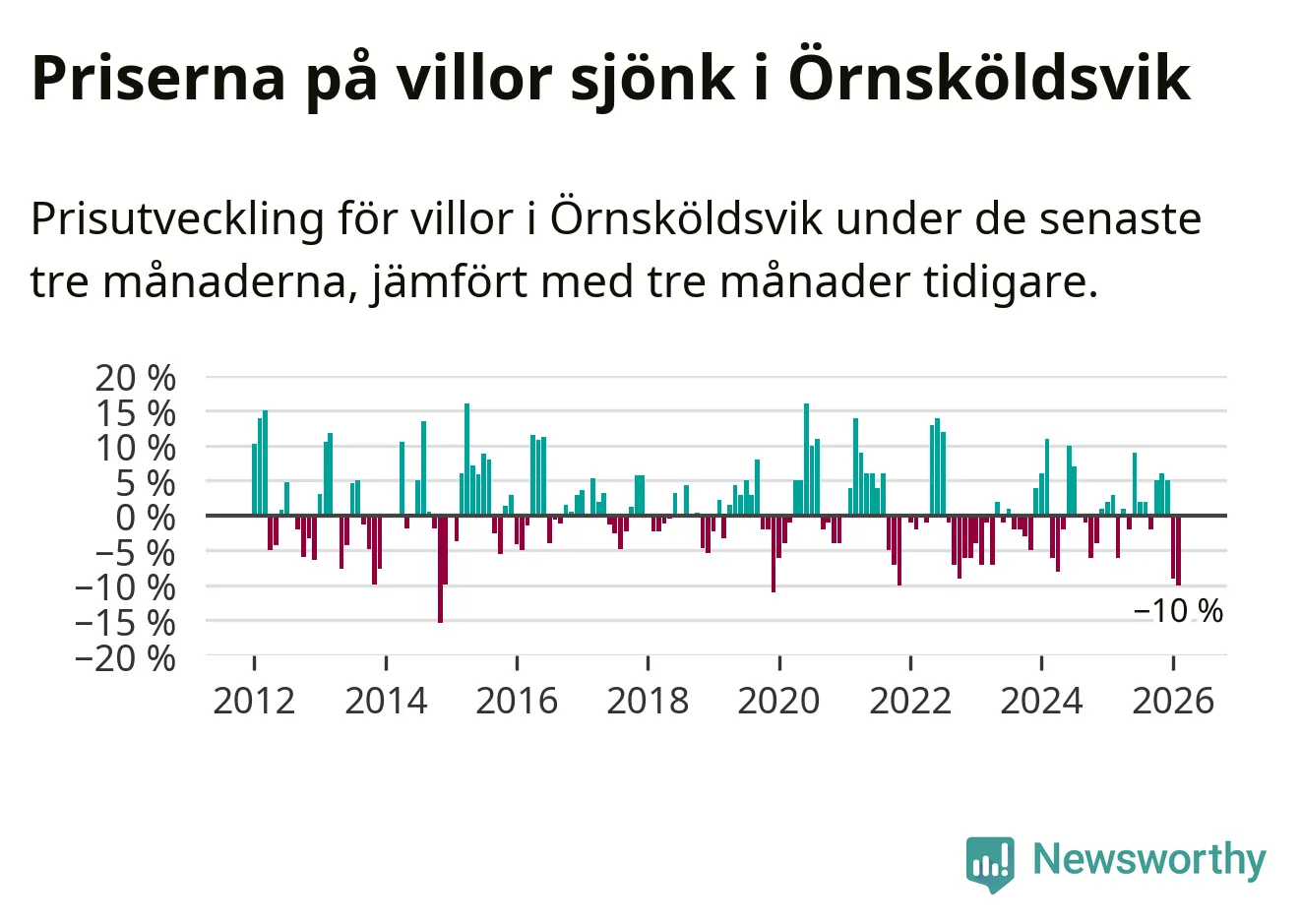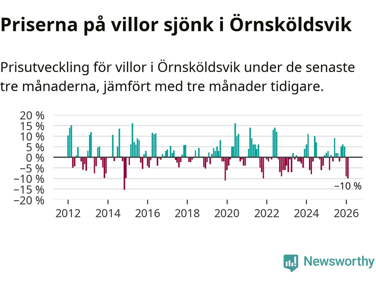 Villapriserna sjönk med tio procent i Örnsköldsviks kommun under de senaste tre månaderna. Det är den svagaste prisutvecklingen sedan 2021.