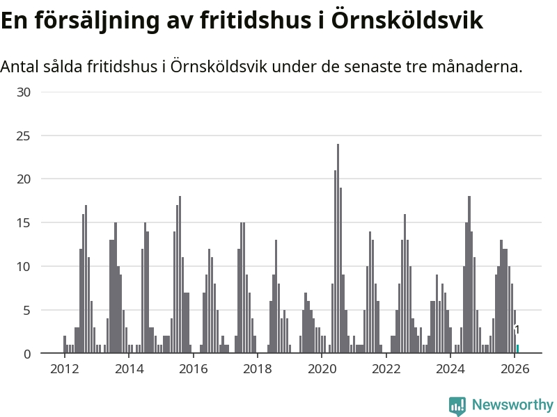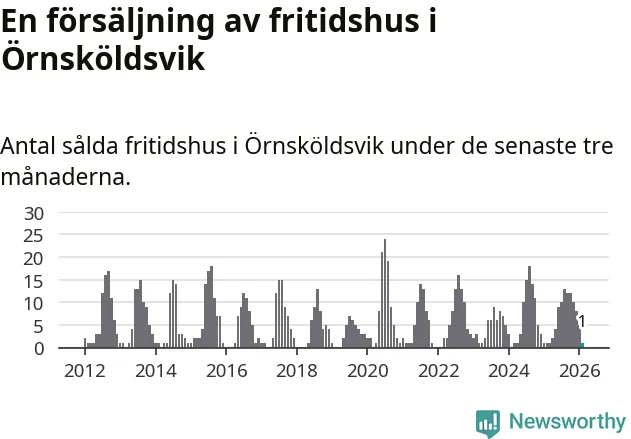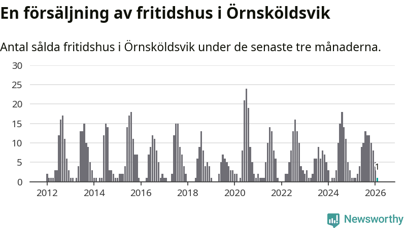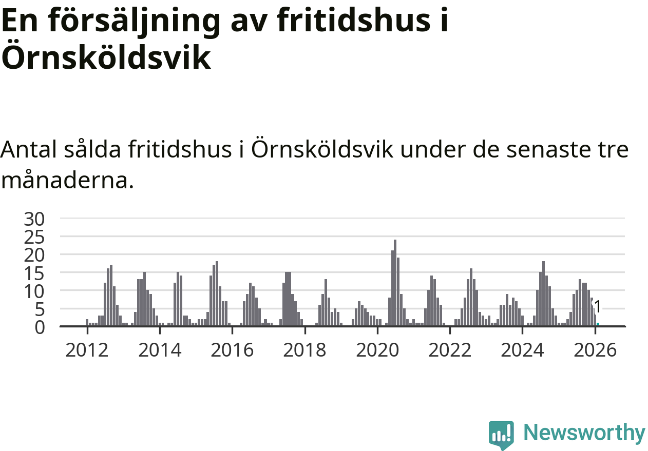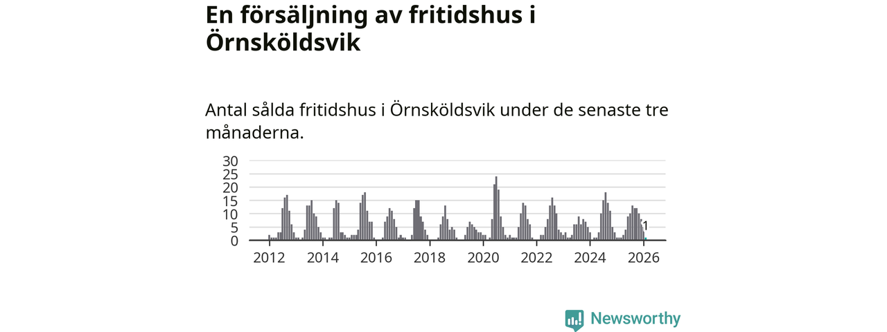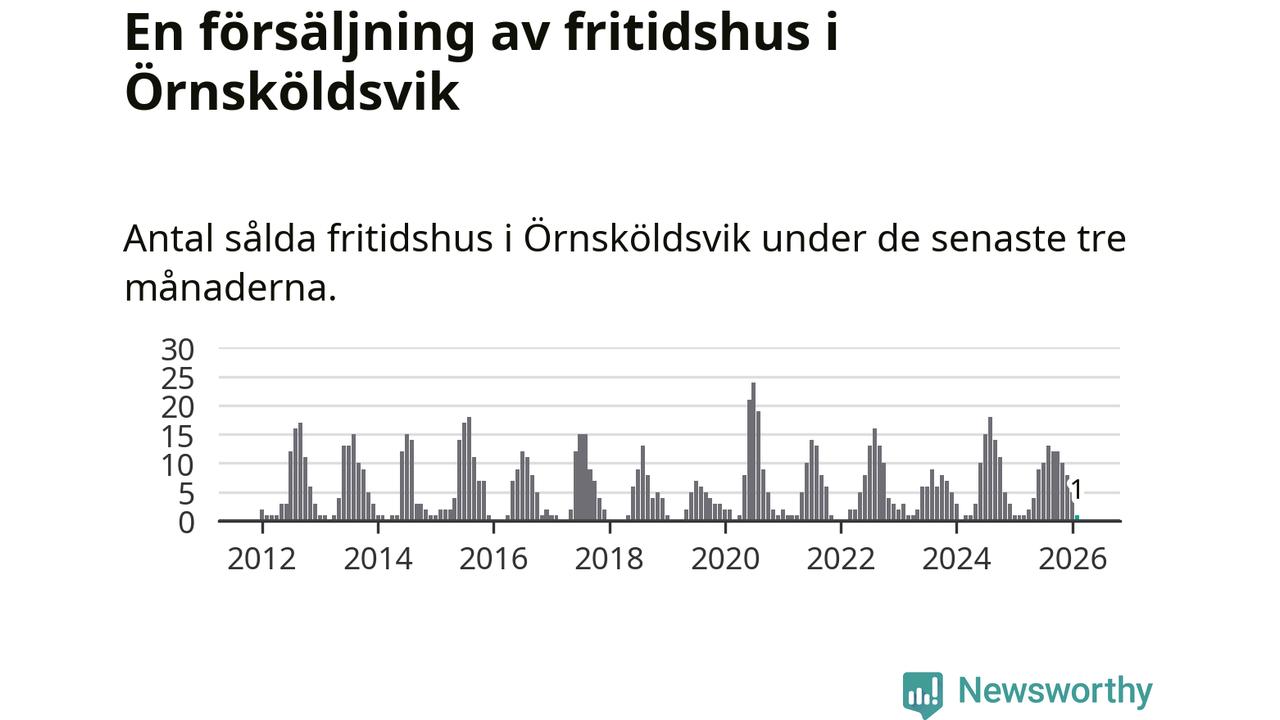 Mellan december och februari gjordes sammanlagt en affär med fritidshus i Örnsköldsviks kommun. Det är lika många affärer som vid motsvarande tid i fjol.
