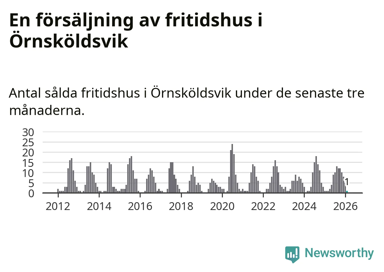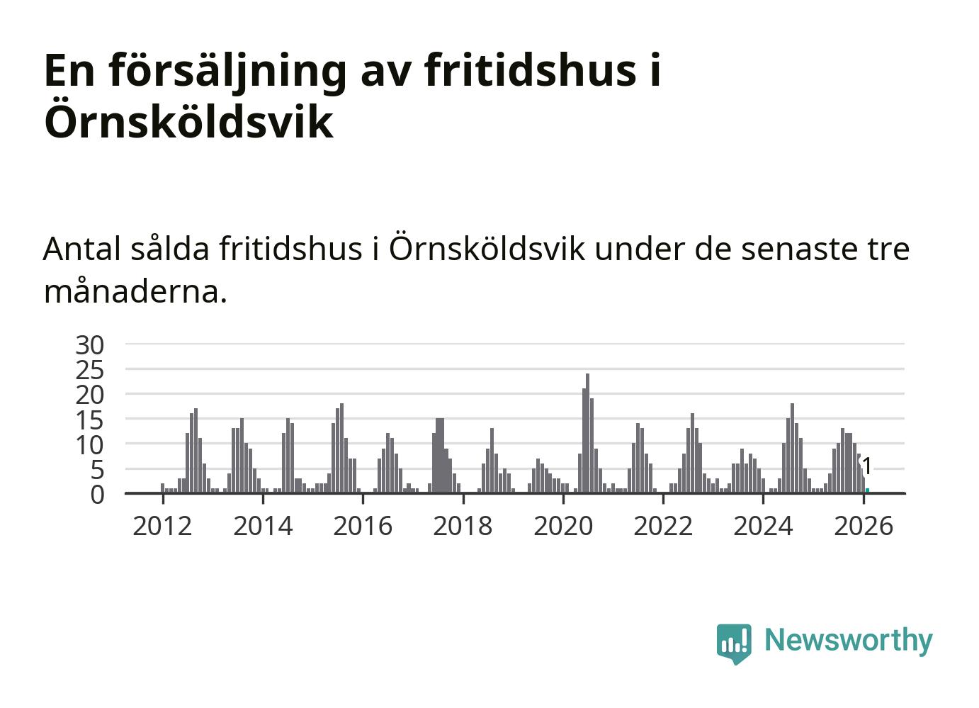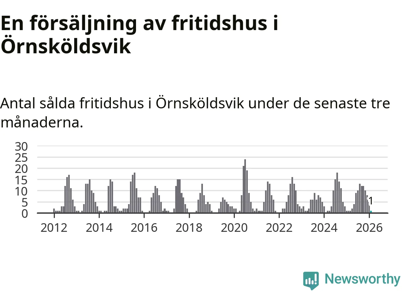 Mellan december och februari gjordes sammanlagt en affär med fritidshus i Örnsköldsviks kommun. Det är lika många affärer som vid motsvarande tid i fjol.