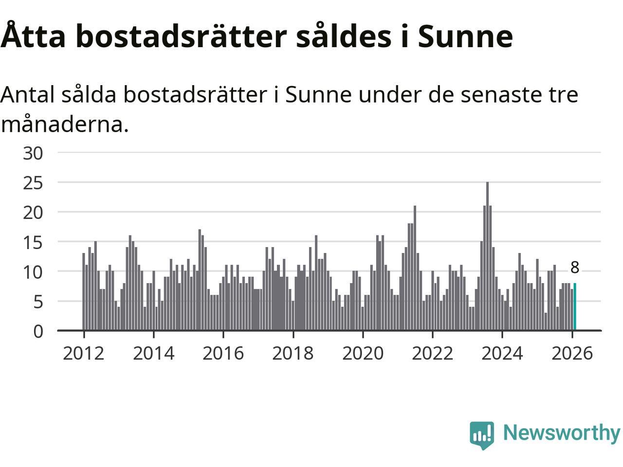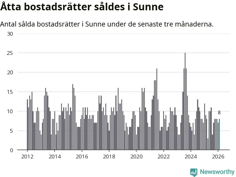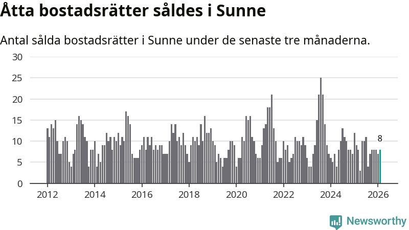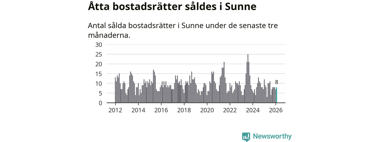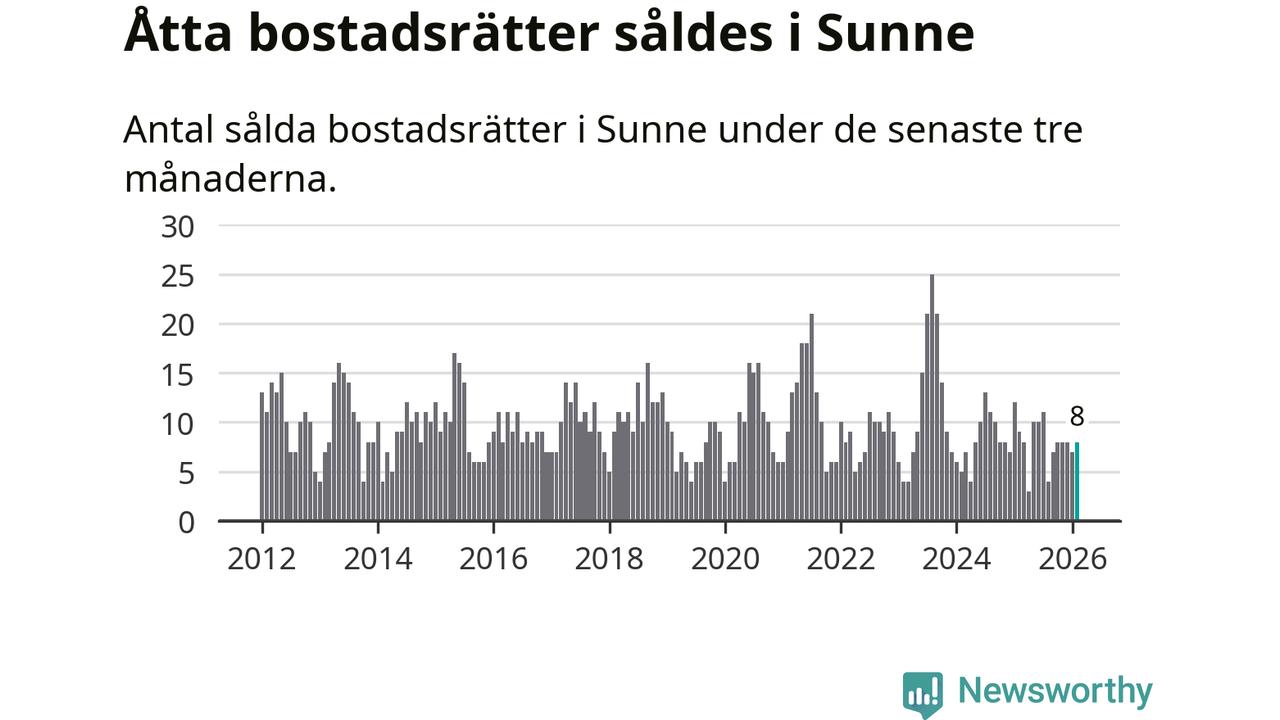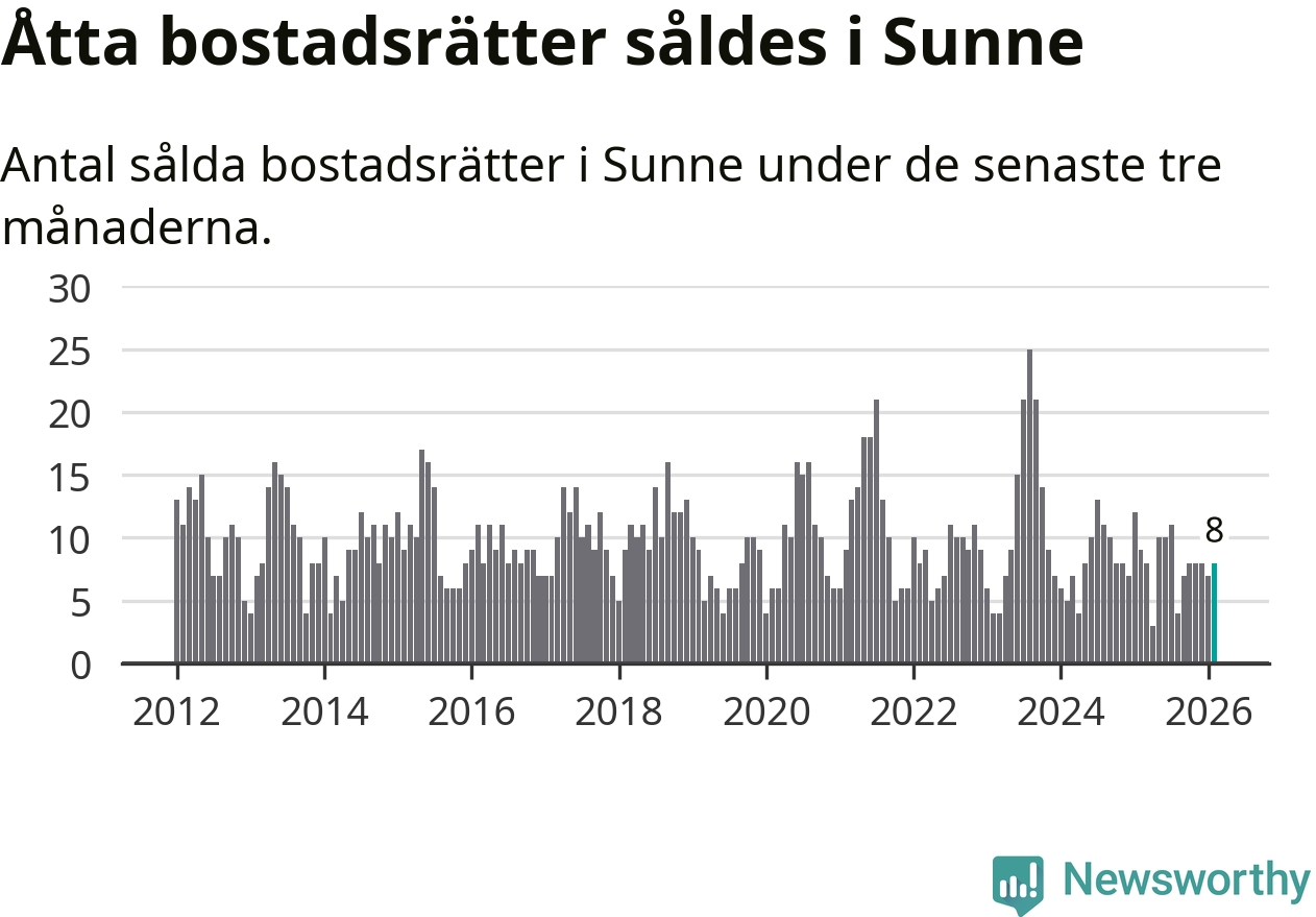 Mellan december och februari gjordes sammanlagt åtta affärer med bostadsrätter i Sunne kommun. Det kan jämföras med nio vid motsvarande tid i fjol.