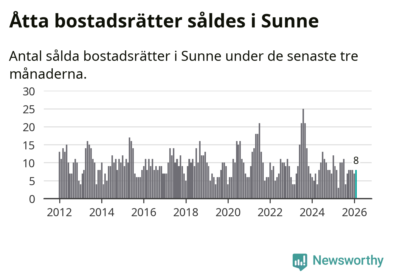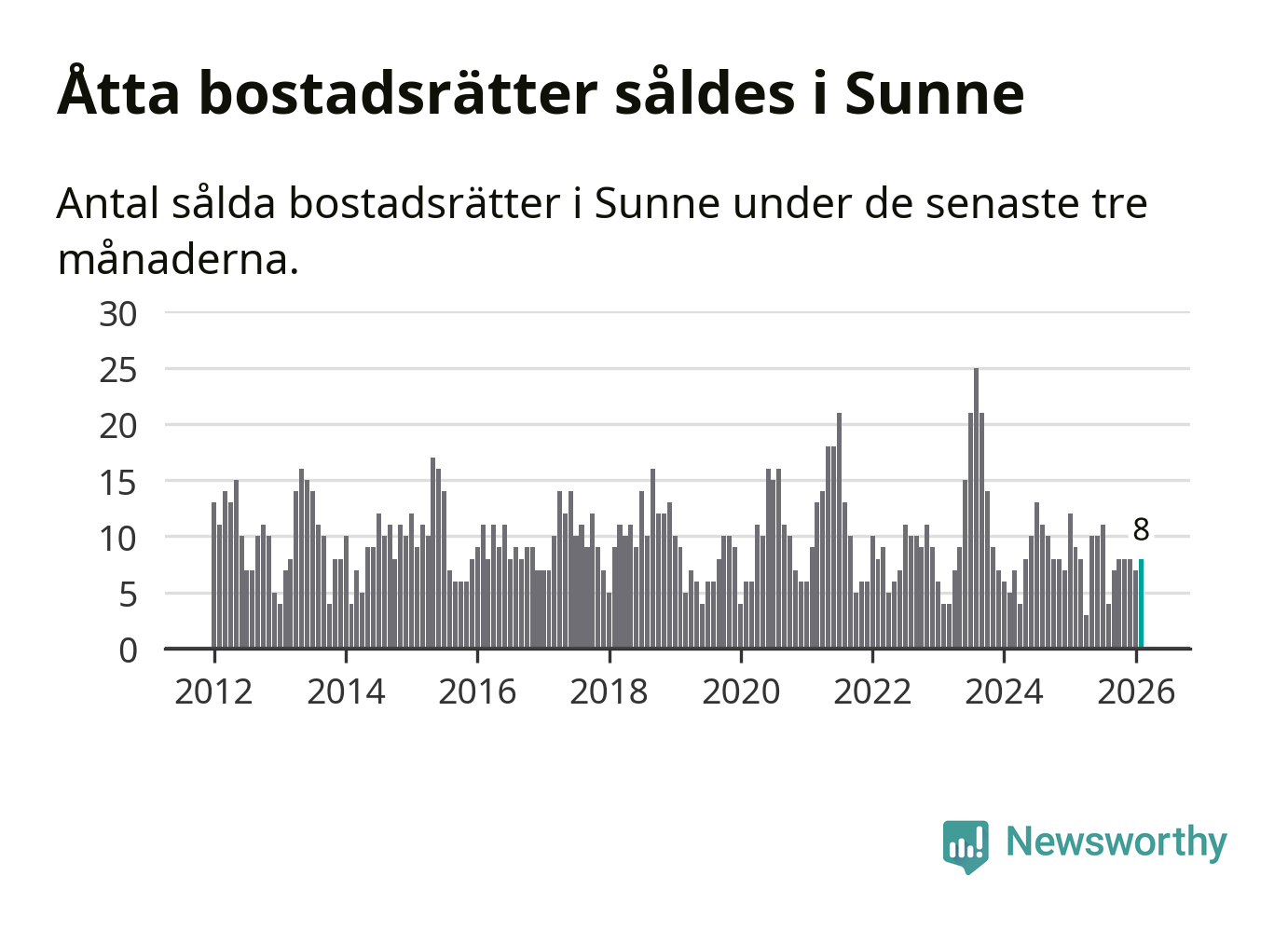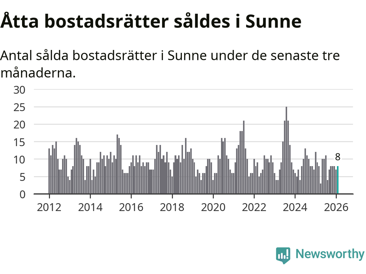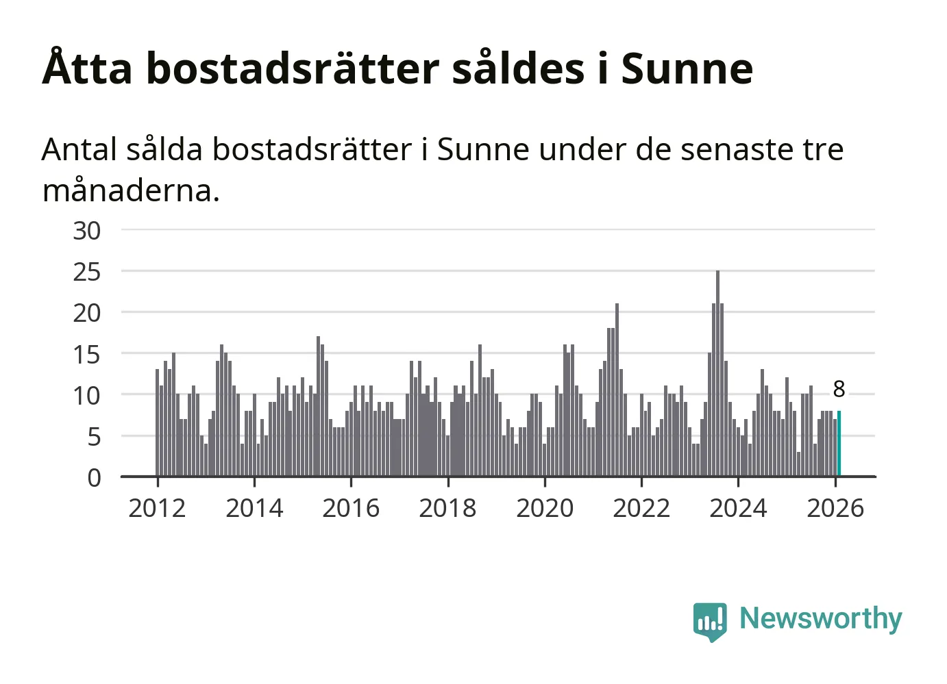 Mellan december och februari gjordes sammanlagt åtta affärer med bostadsrätter i Sunne kommun. Det kan jämföras med nio vid motsvarande tid i fjol.