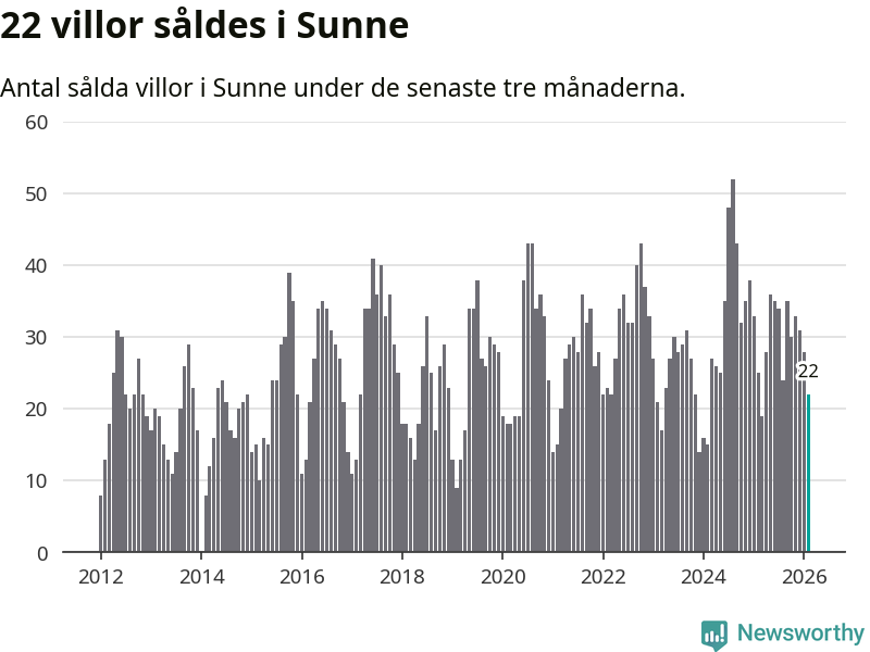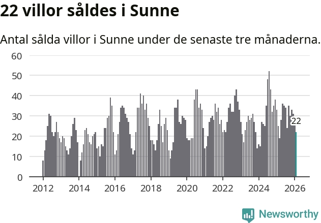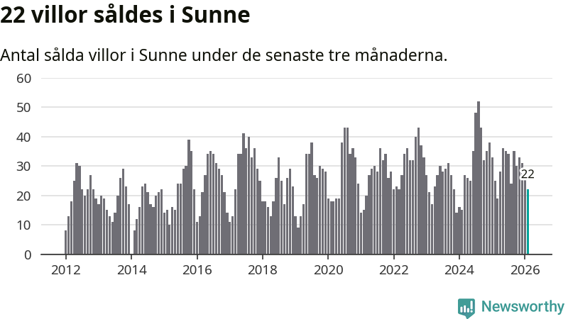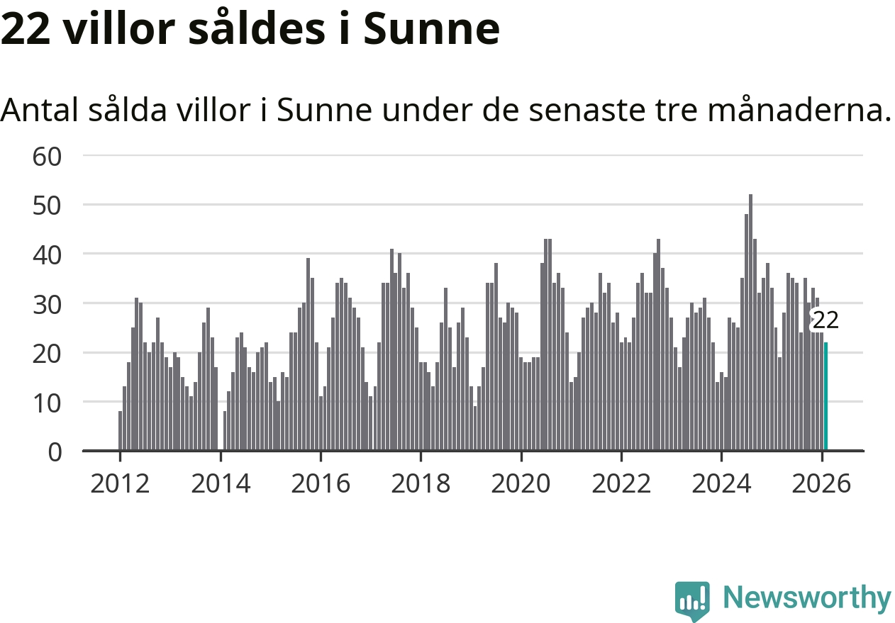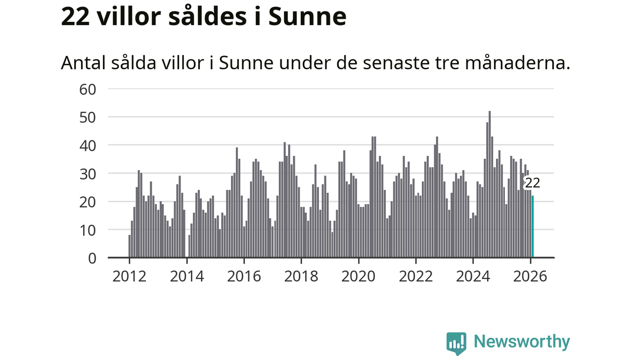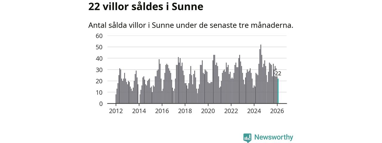 Mellan december och februari gjordes sammanlagt 22 affärer med villor i Sunne kommun. Det kan jämföras med 25 vid motsvarande tid i fjol.