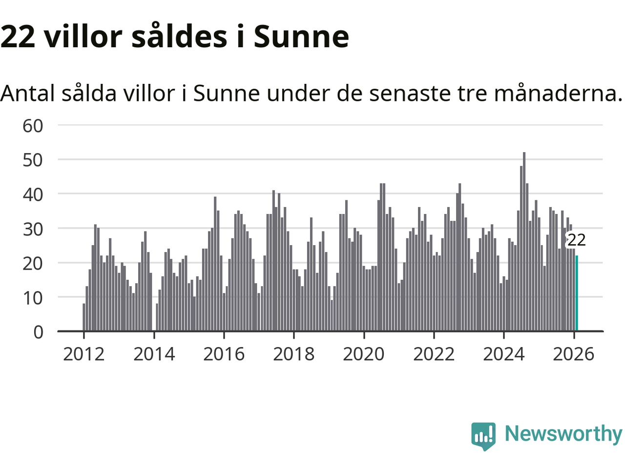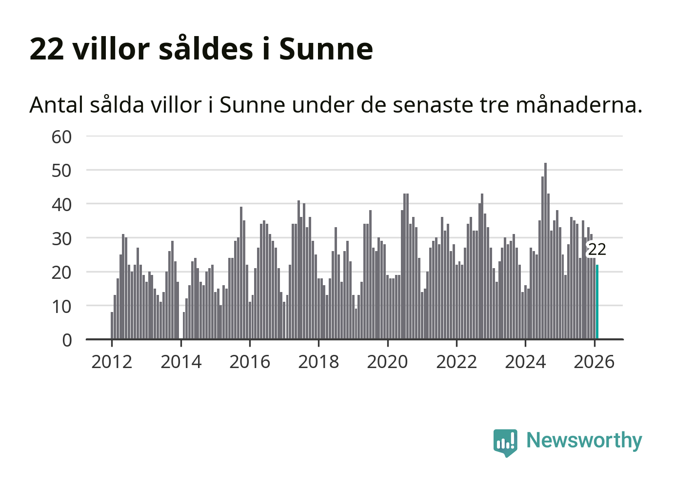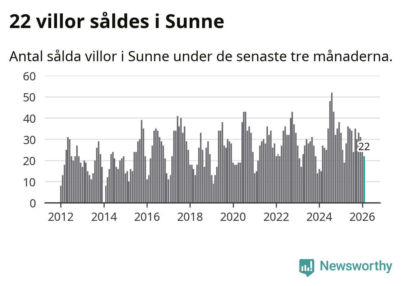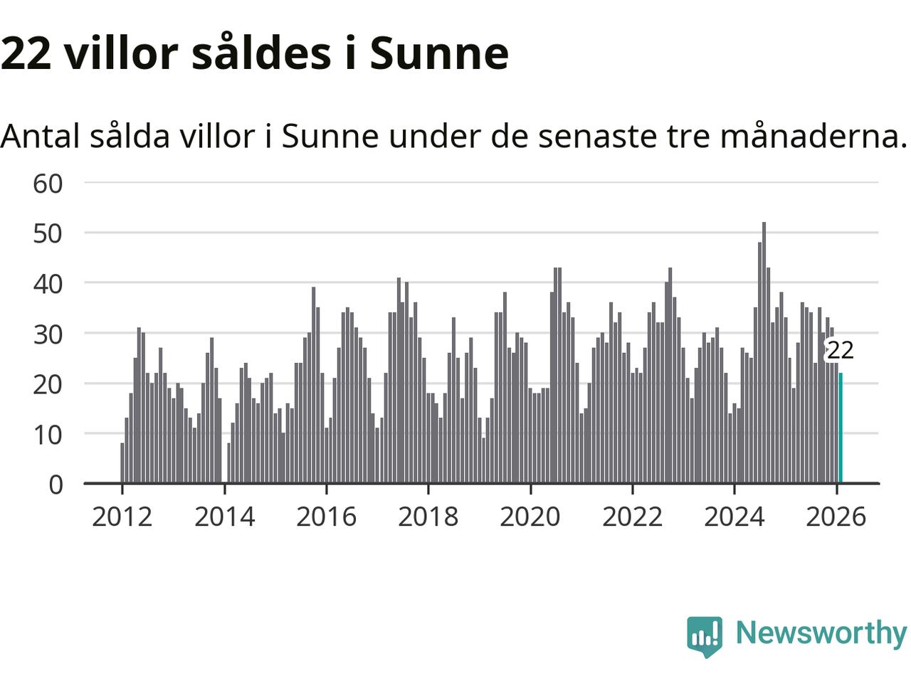 Mellan december och februari gjordes sammanlagt 22 affärer med villor i Sunne kommun. Det kan jämföras med 25 vid motsvarande tid i fjol.