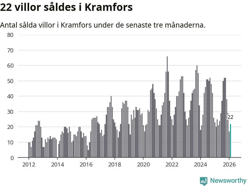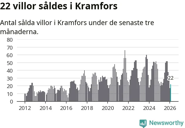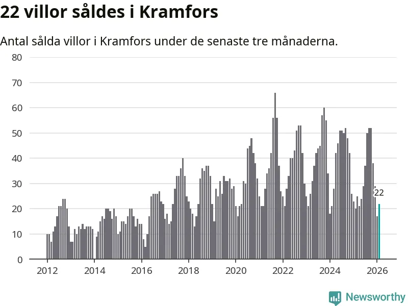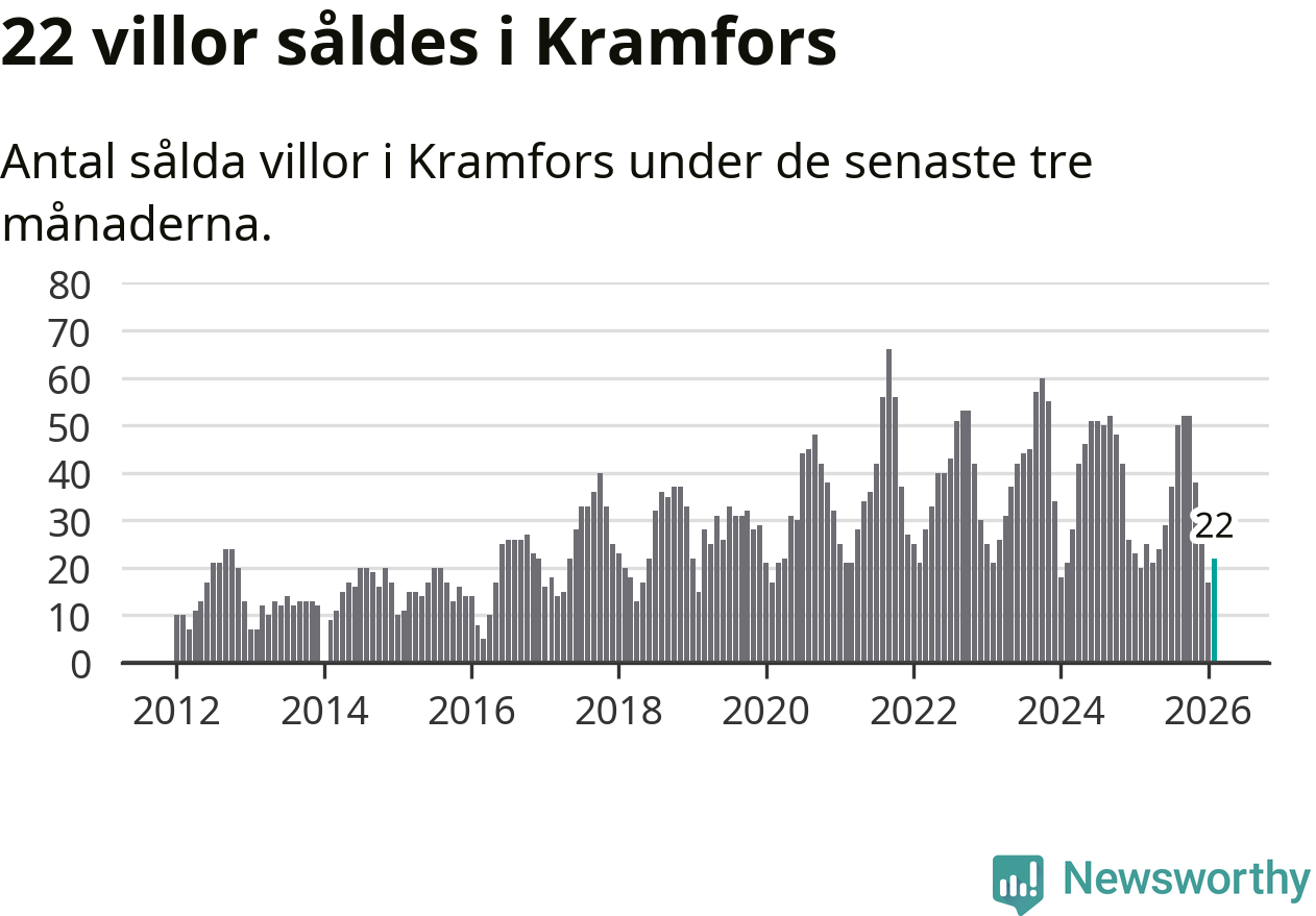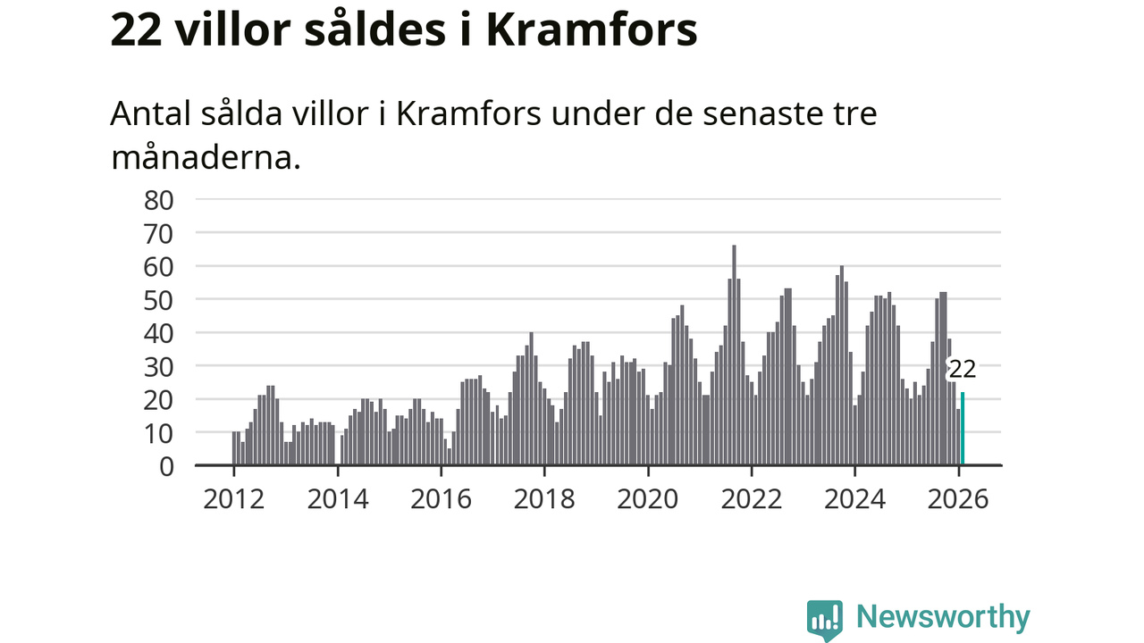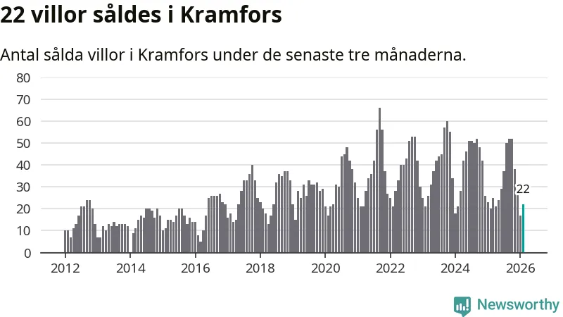 Mellan december och februari gjordes sammanlagt 22 affärer med villor i Kramfors kommun. Det kan jämföras med 20 vid motsvarande tid i fjol.
