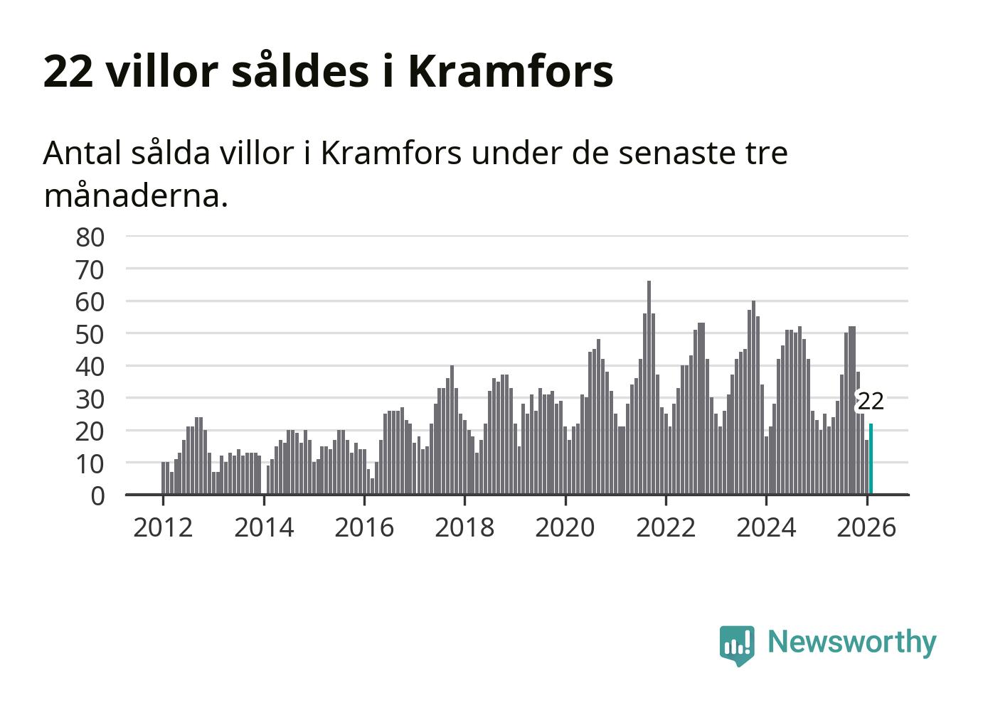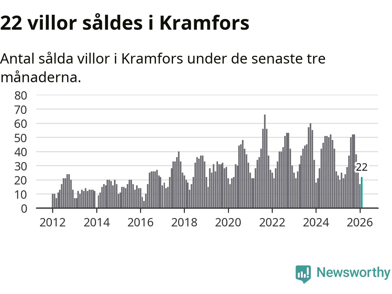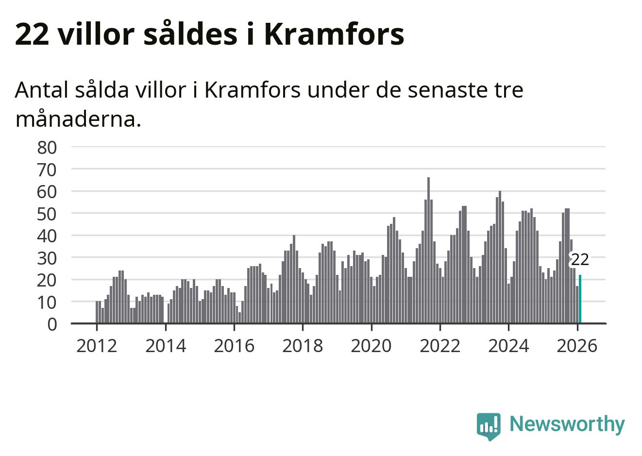 Mellan december och februari gjordes sammanlagt 22 affärer med villor i Kramfors kommun. Det kan jämföras med 20 vid motsvarande tid i fjol.