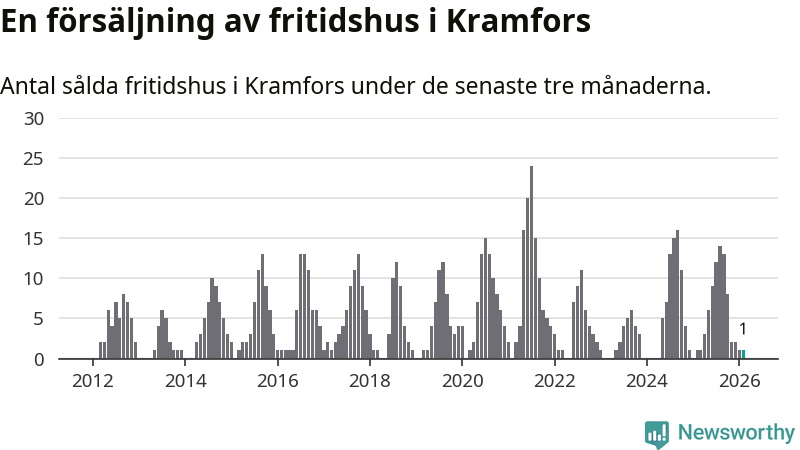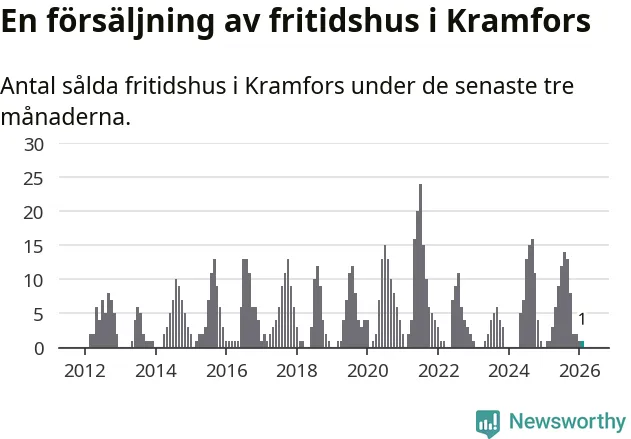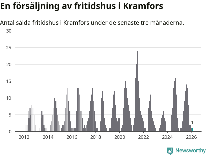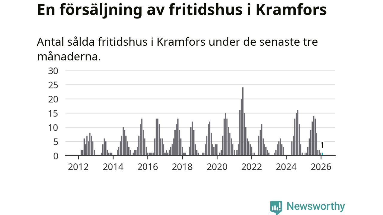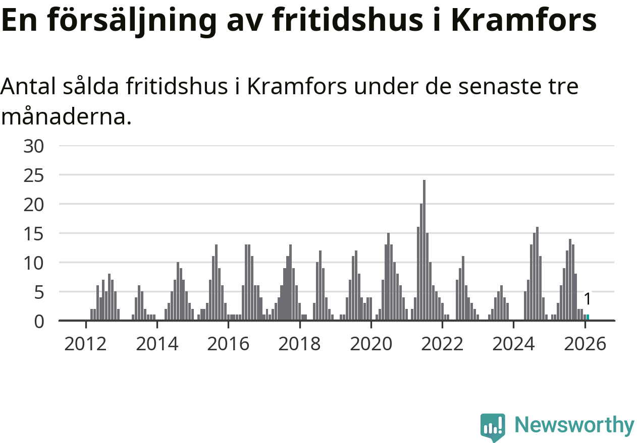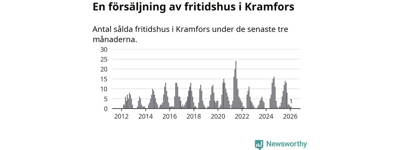 Mellan december och februari gjordes sammanlagt en affär med fritidshus i Kramfors kommun. Det är lika många affärer som vid motsvarande tid i fjol.