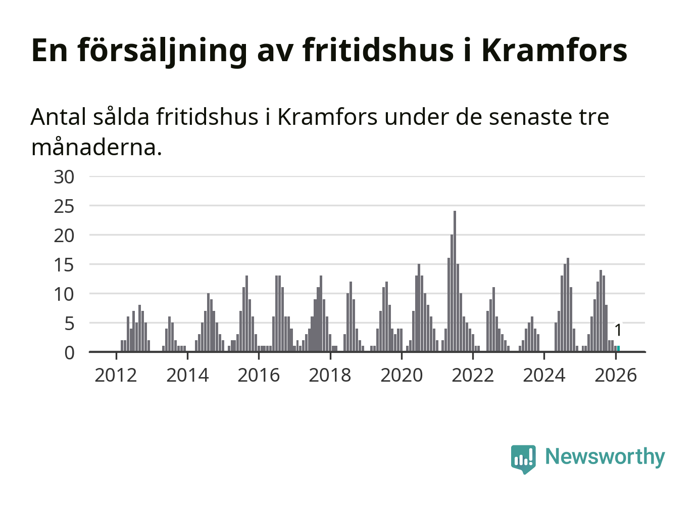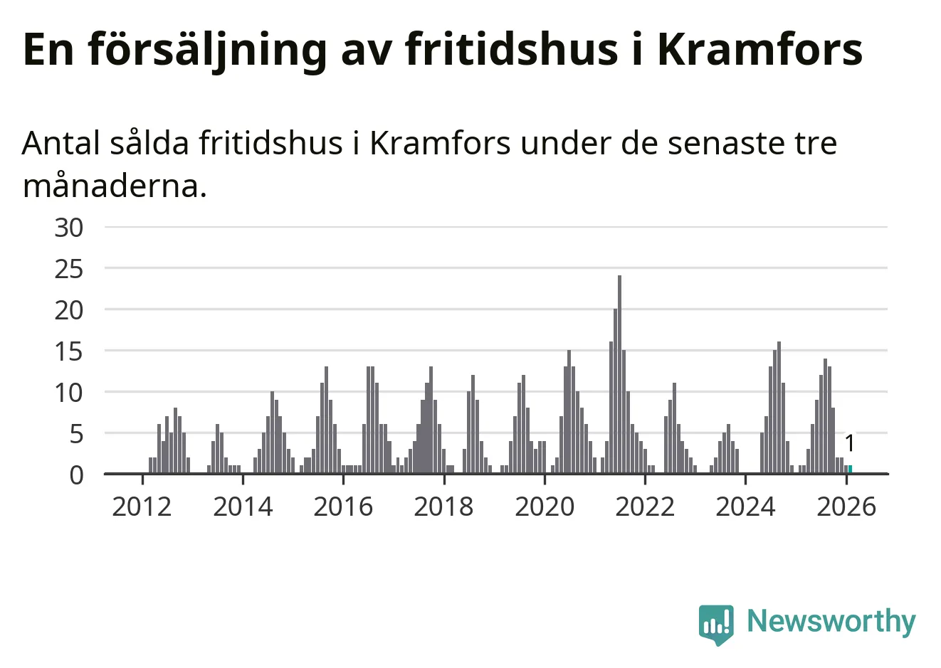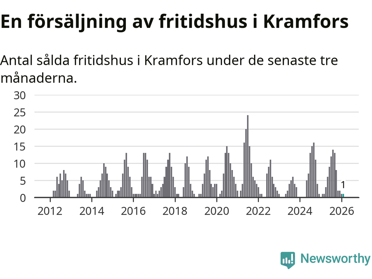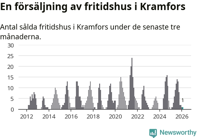Mellan december och februari gjordes sammanlagt en affär med fritidshus i Kramfors kommun. Det är lika många affärer som vid motsvarande tid i fjol.