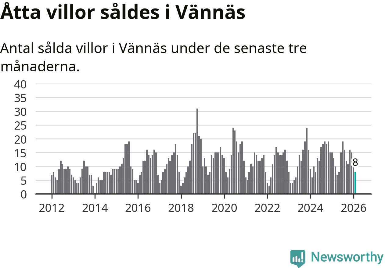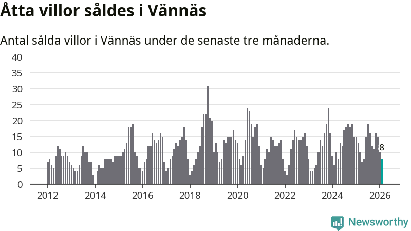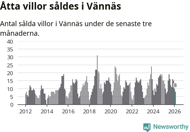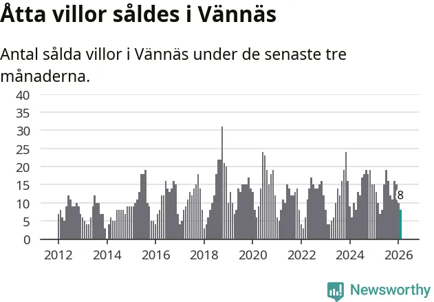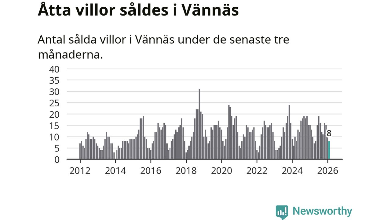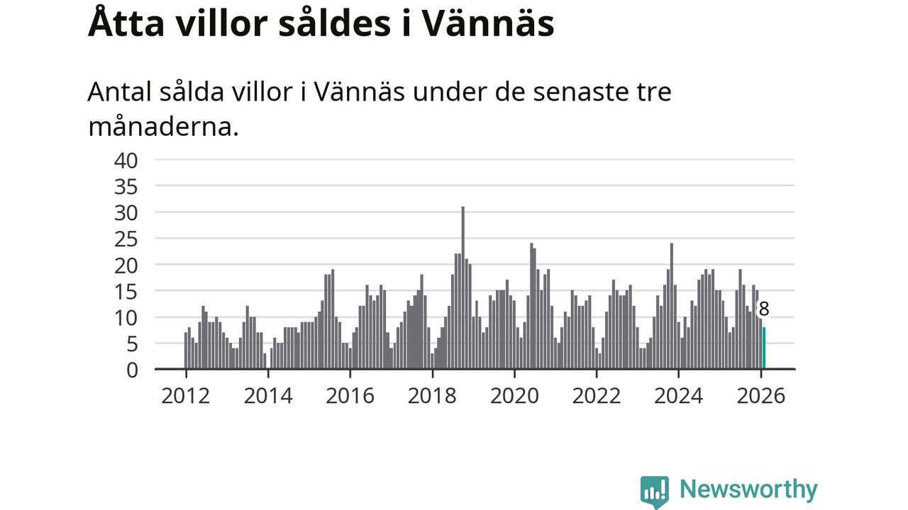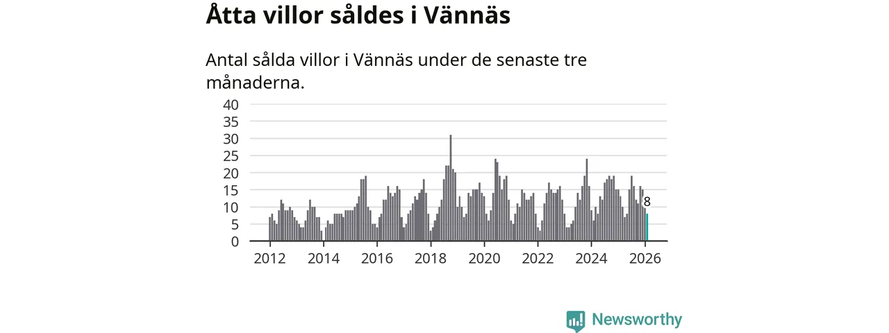 Mellan december och februari gjordes sammanlagt åtta affärer med villor i Vännäs kommun. Det kan jämföras med 13 vid motsvarande tid i fjol.