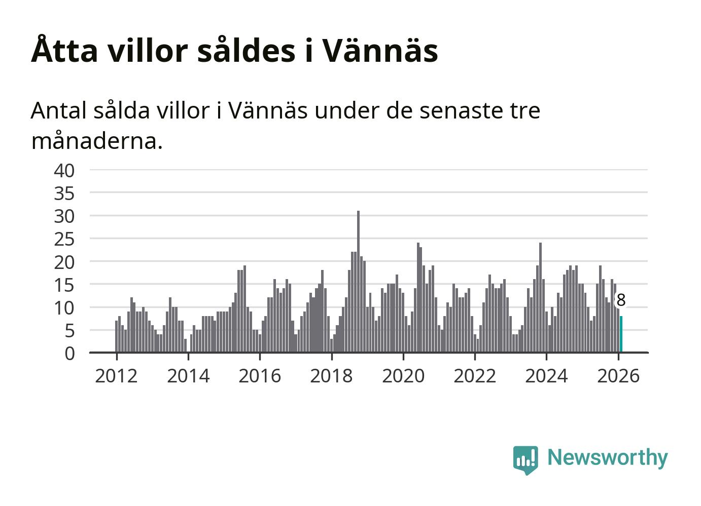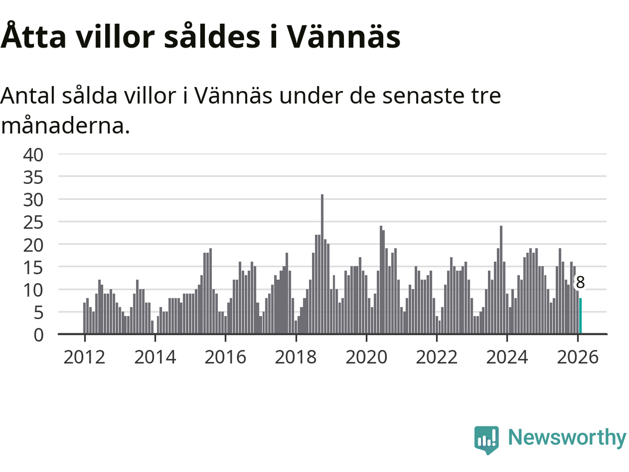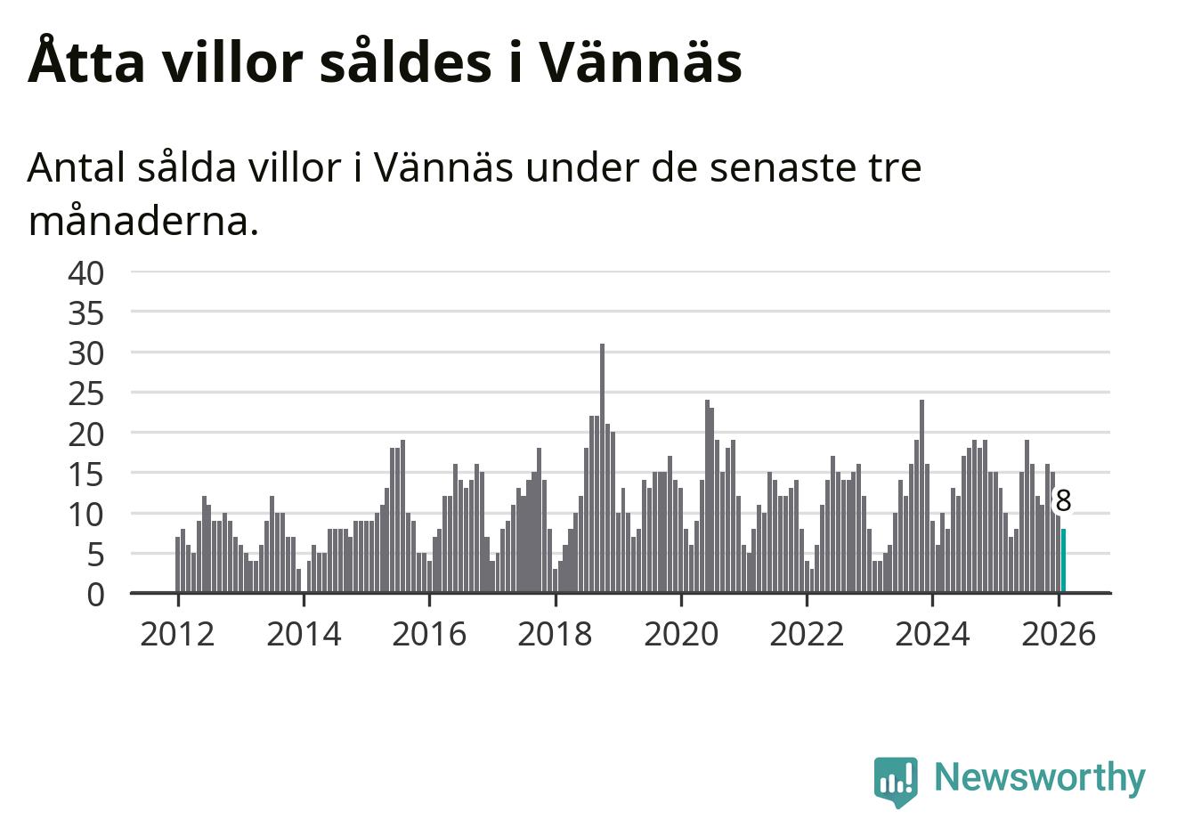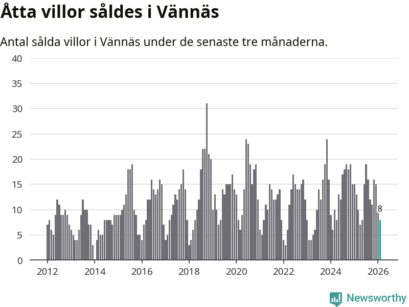 Mellan december och februari gjordes sammanlagt åtta affärer med villor i Vännäs kommun. Det kan jämföras med 13 vid motsvarande tid i fjol.