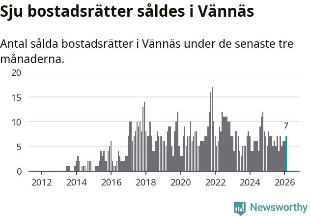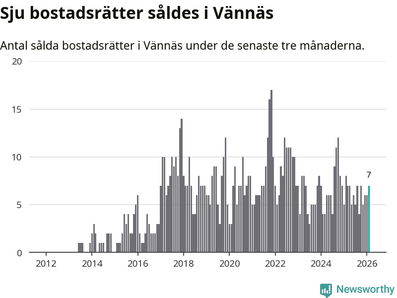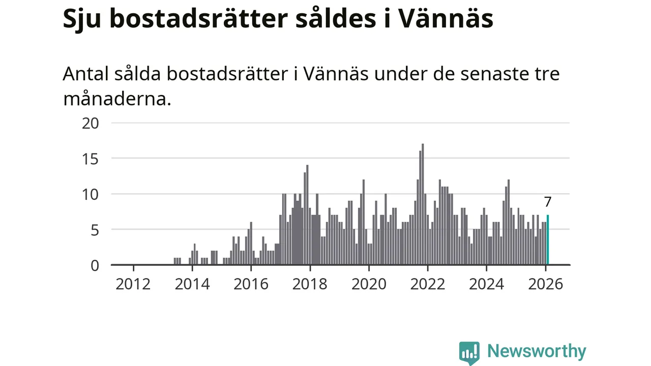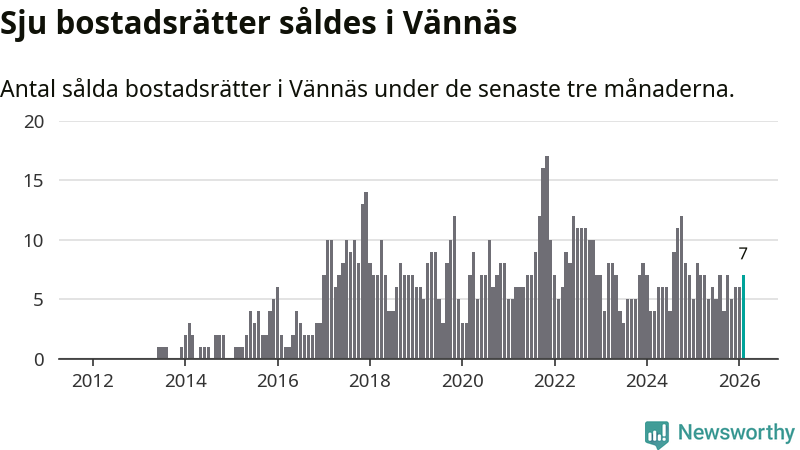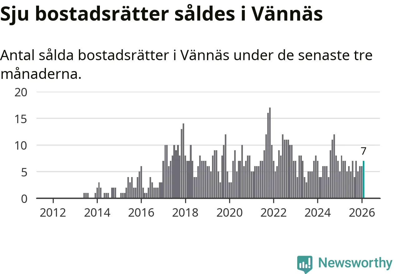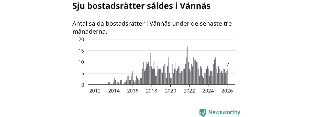 Mellan december och februari gjordes sammanlagt sju affärer med bostadsrätter i Vännäs kommun. Det kan jämföras med åtta vid motsvarande tid i fjol.