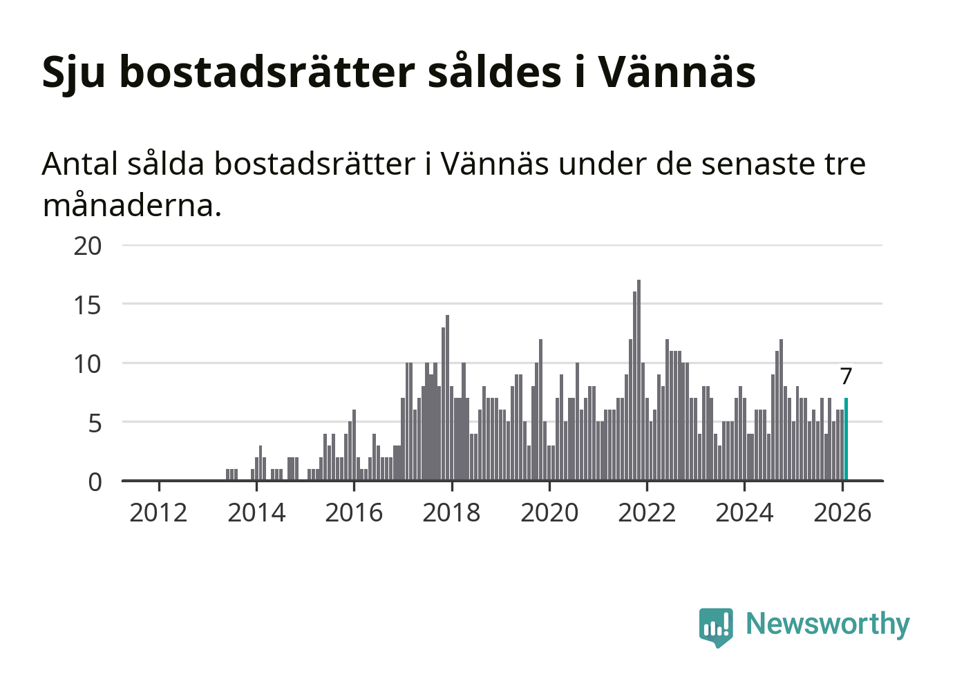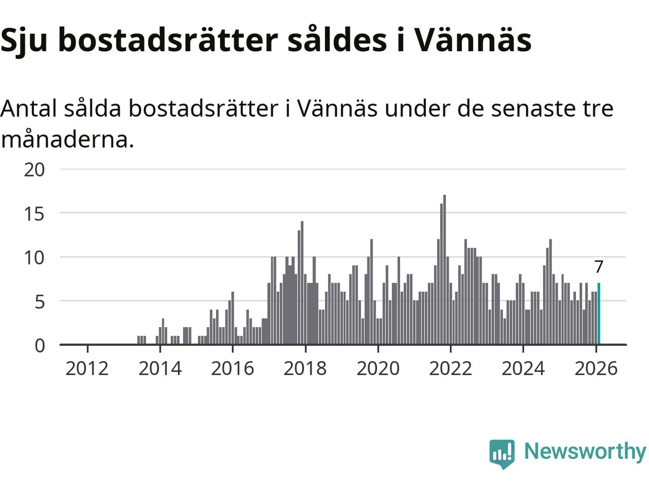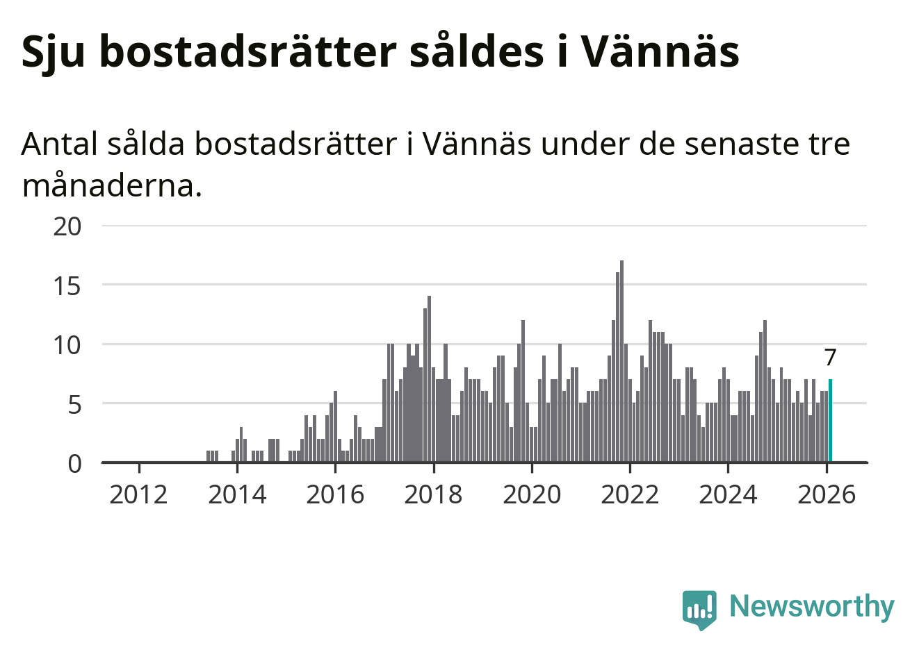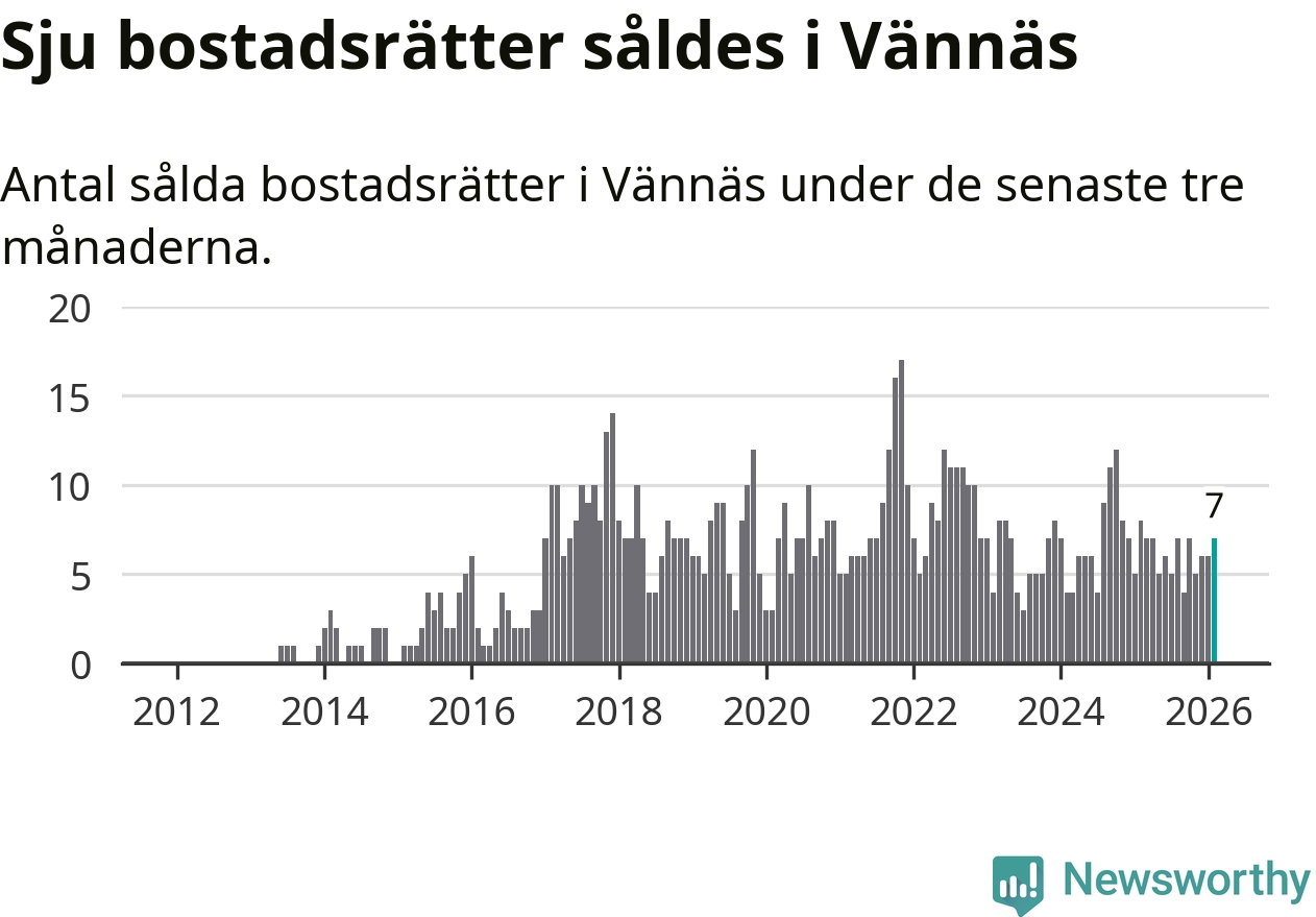 Mellan december och februari gjordes sammanlagt sju affärer med bostadsrätter i Vännäs kommun. Det kan jämföras med åtta vid motsvarande tid i fjol.