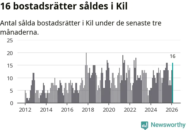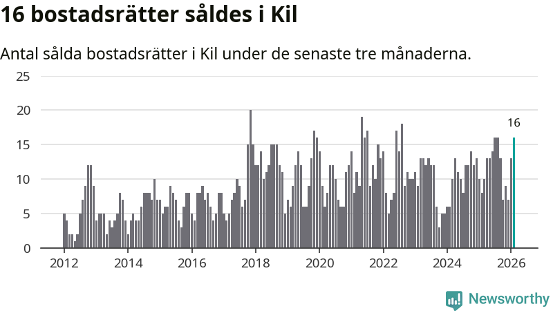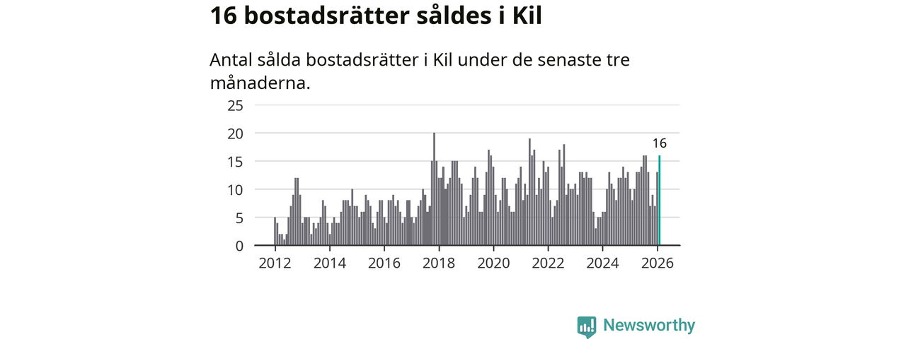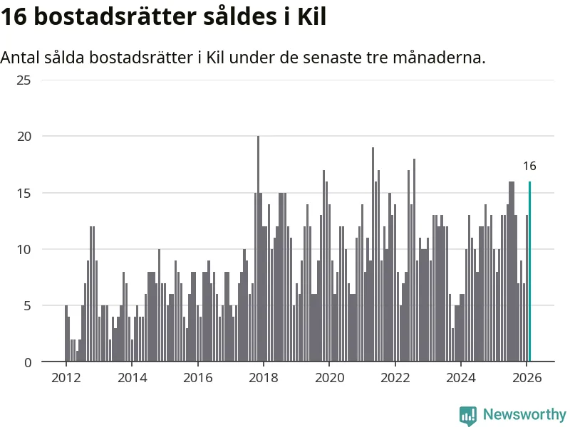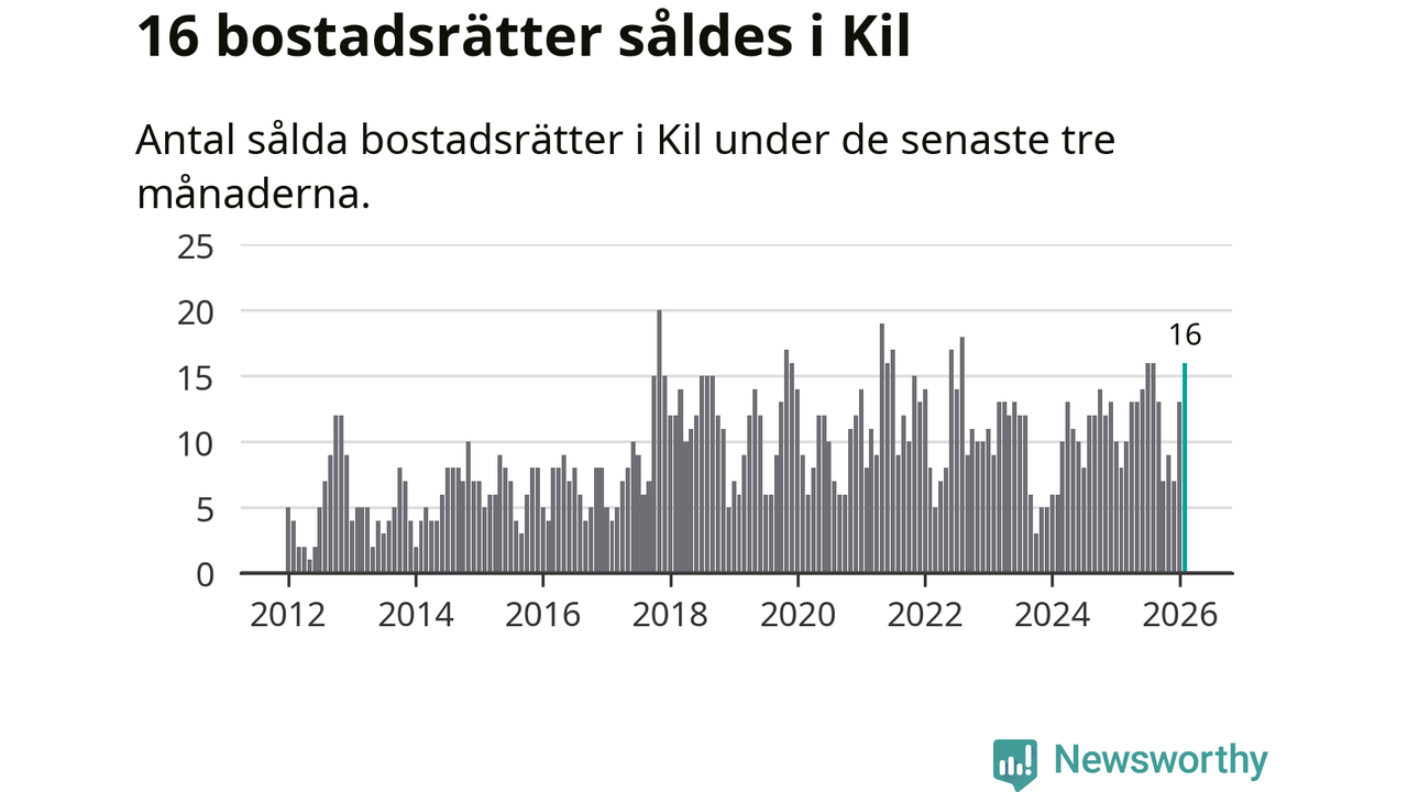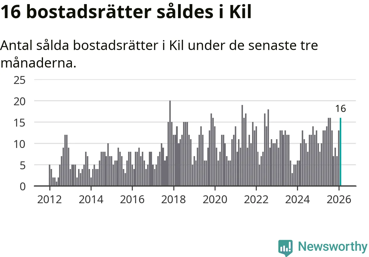 Mellan december och februari gjordes sammanlagt 16 affärer med bostadsrätter i Kils kommun. Det kan jämföras med åtta vid motsvarande tid i fjol.