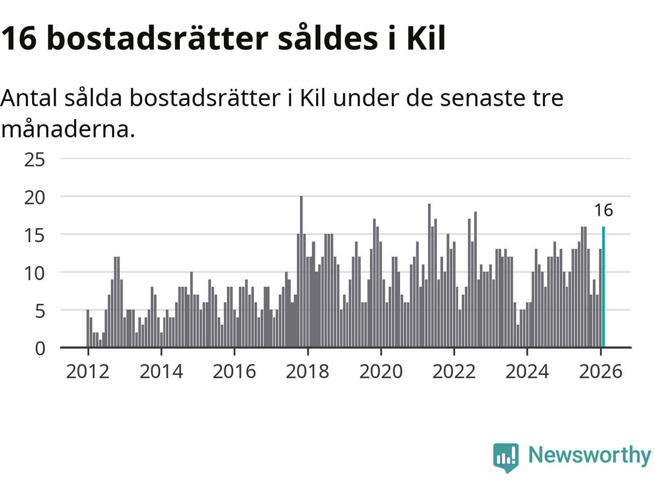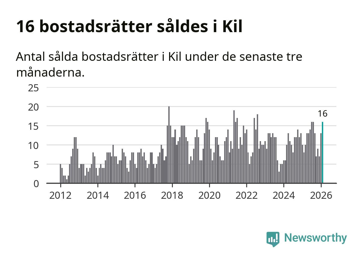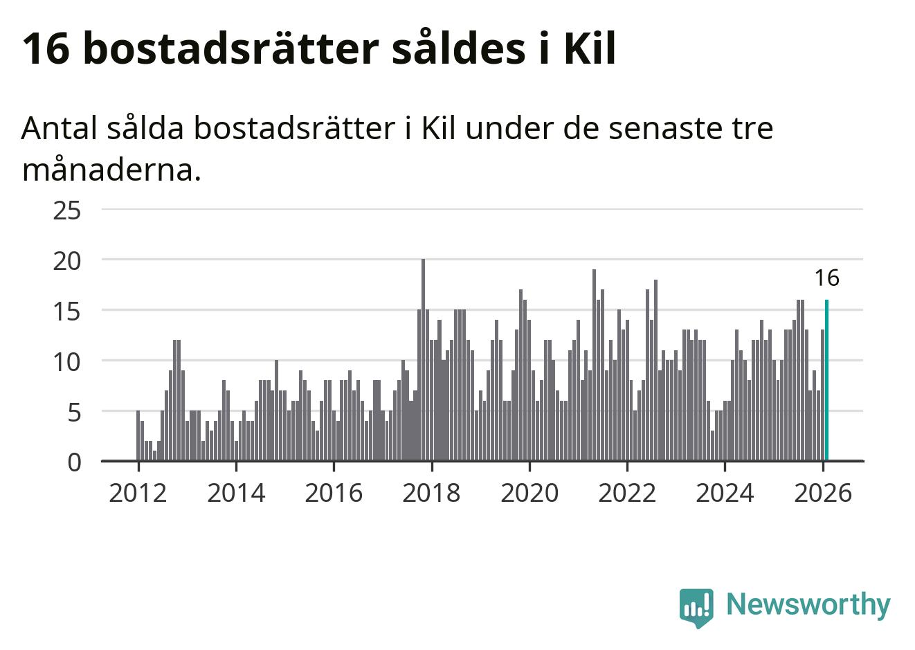 Mellan december och februari gjordes sammanlagt 16 affärer med bostadsrätter i Kils kommun. Det kan jämföras med åtta vid motsvarande tid i fjol.