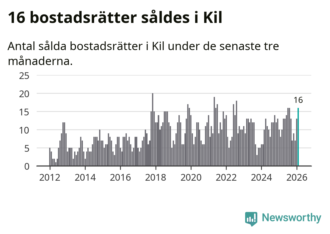 Graf: Antal sålda bostadsrätter i Kils kommun