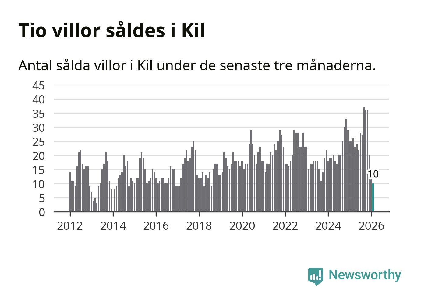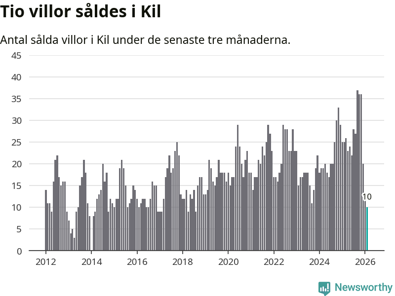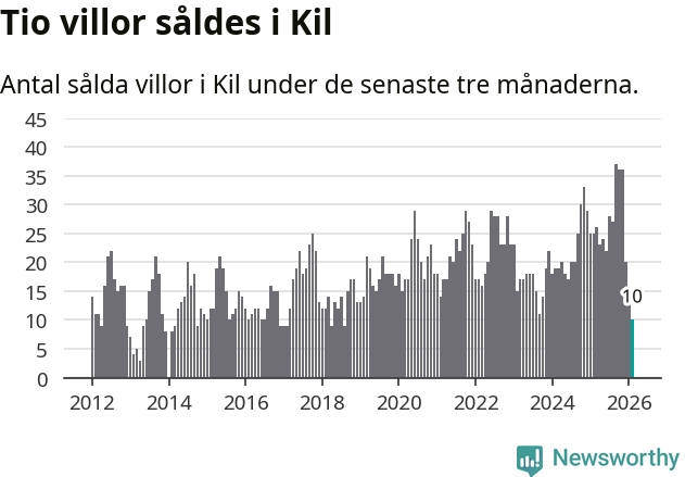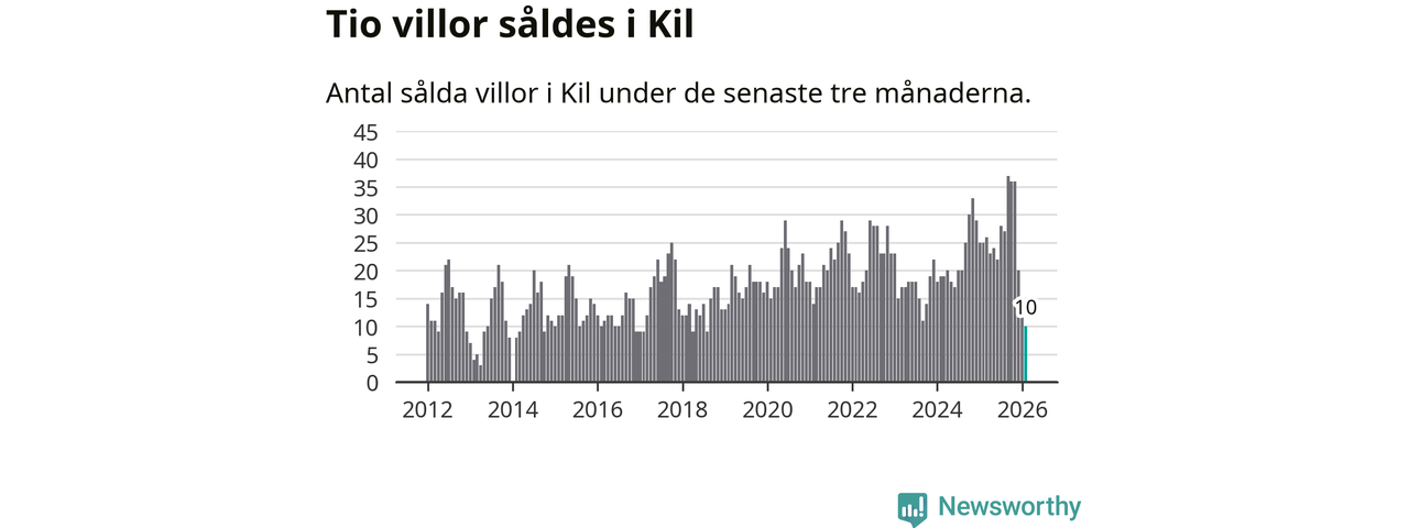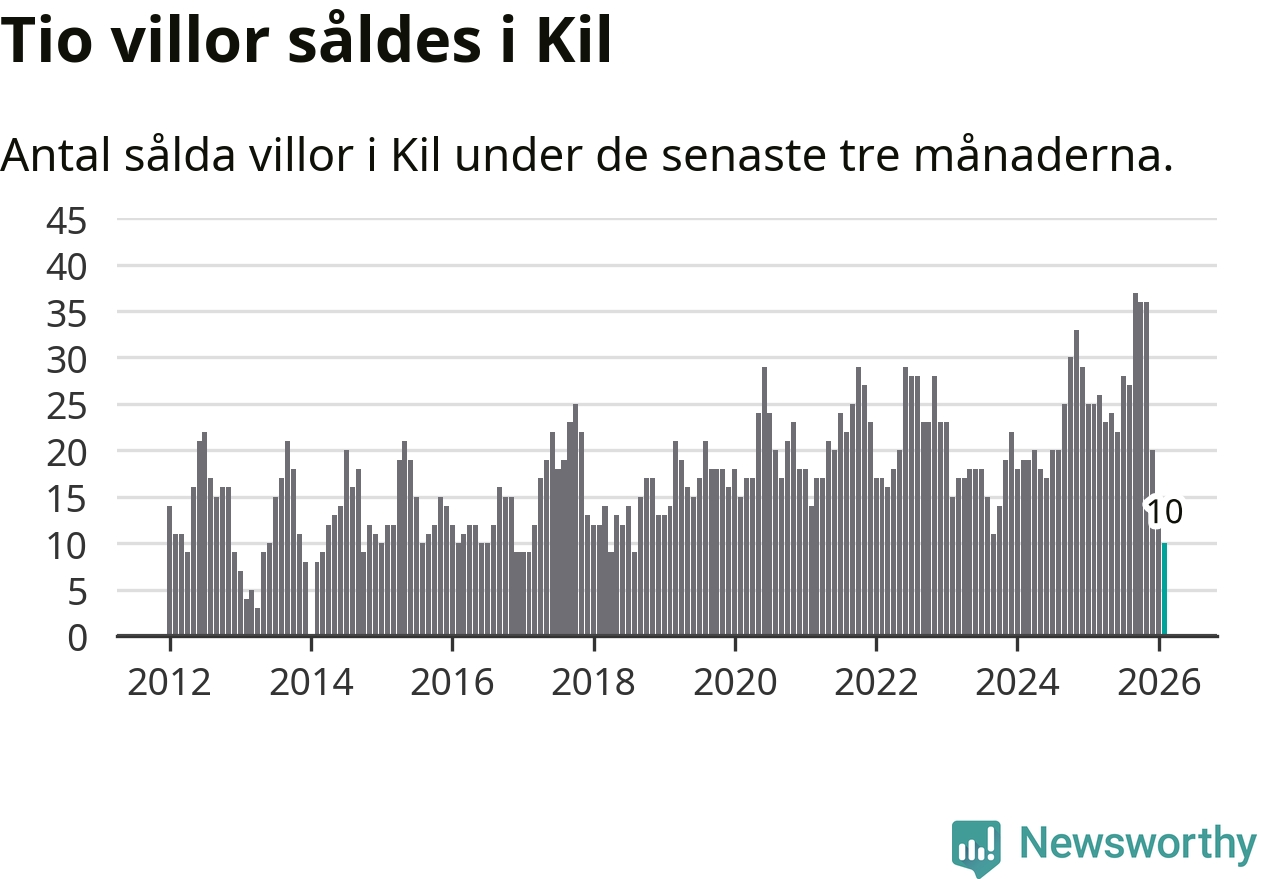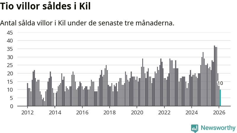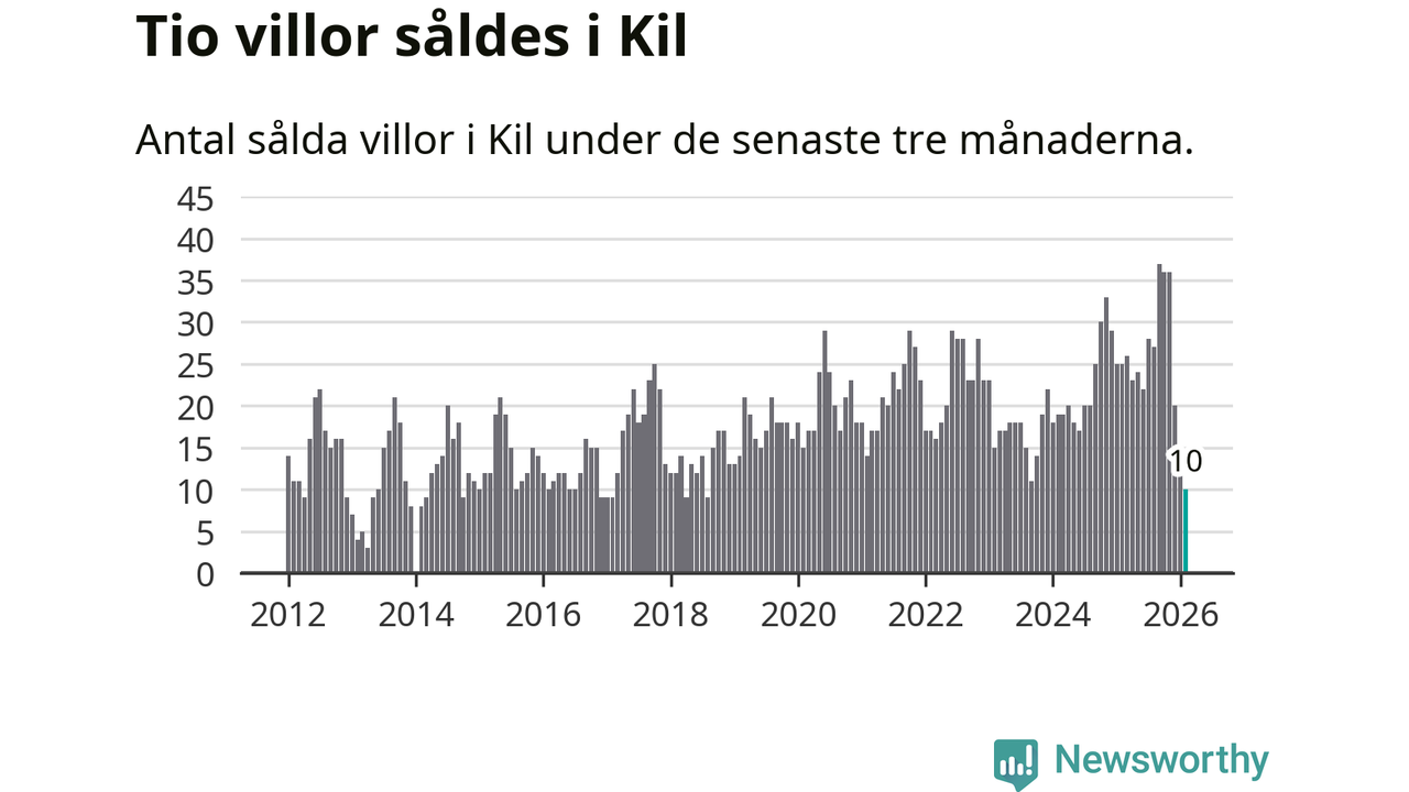 Mellan december och februari gjordes sammanlagt tio affärer med villor i Kils kommun. Det kan jämföras med 25 vid motsvarande tid i fjol.
