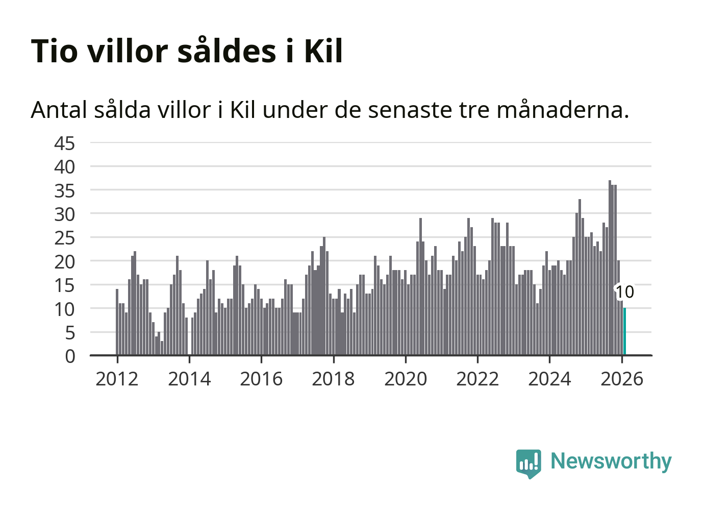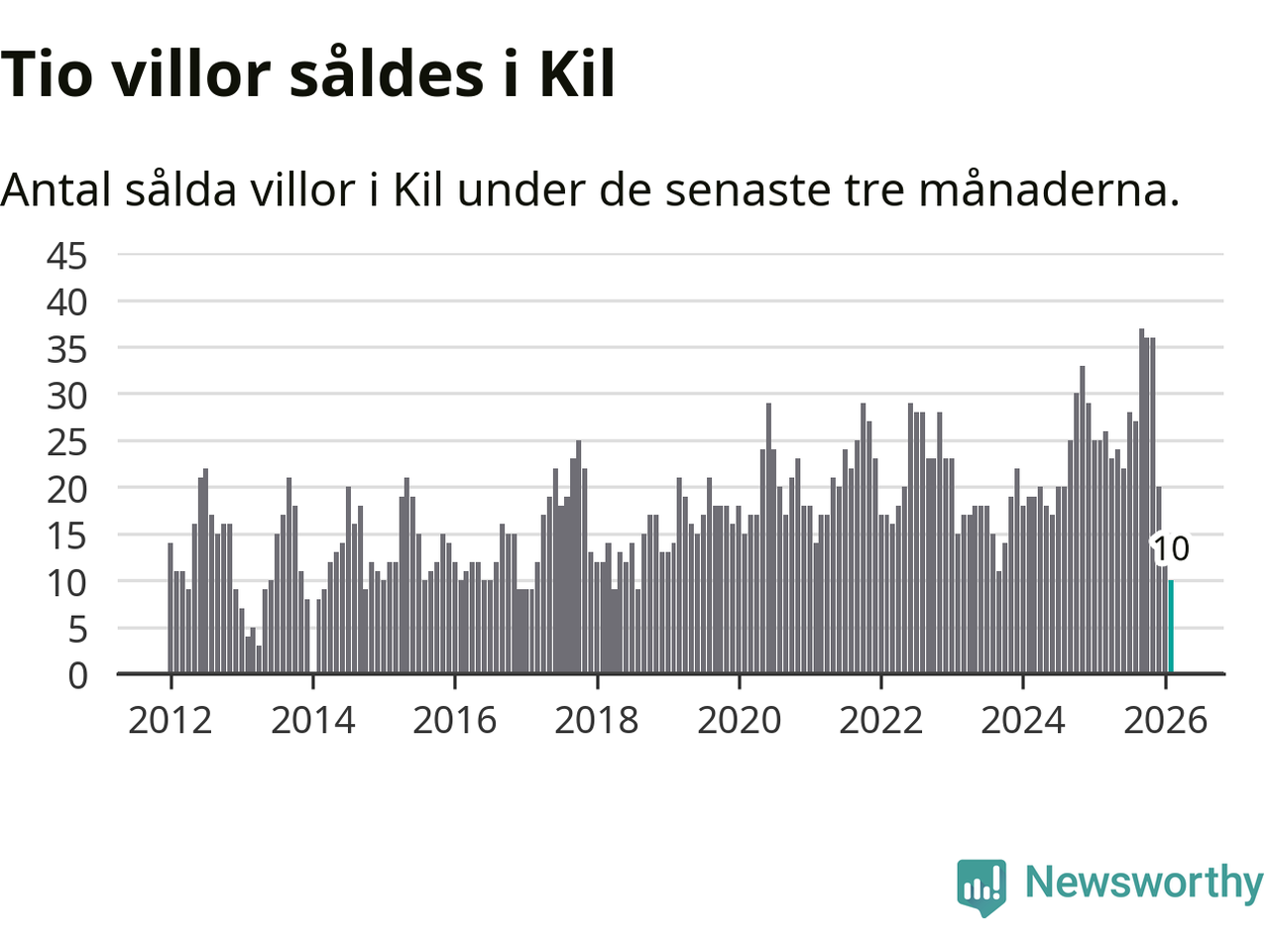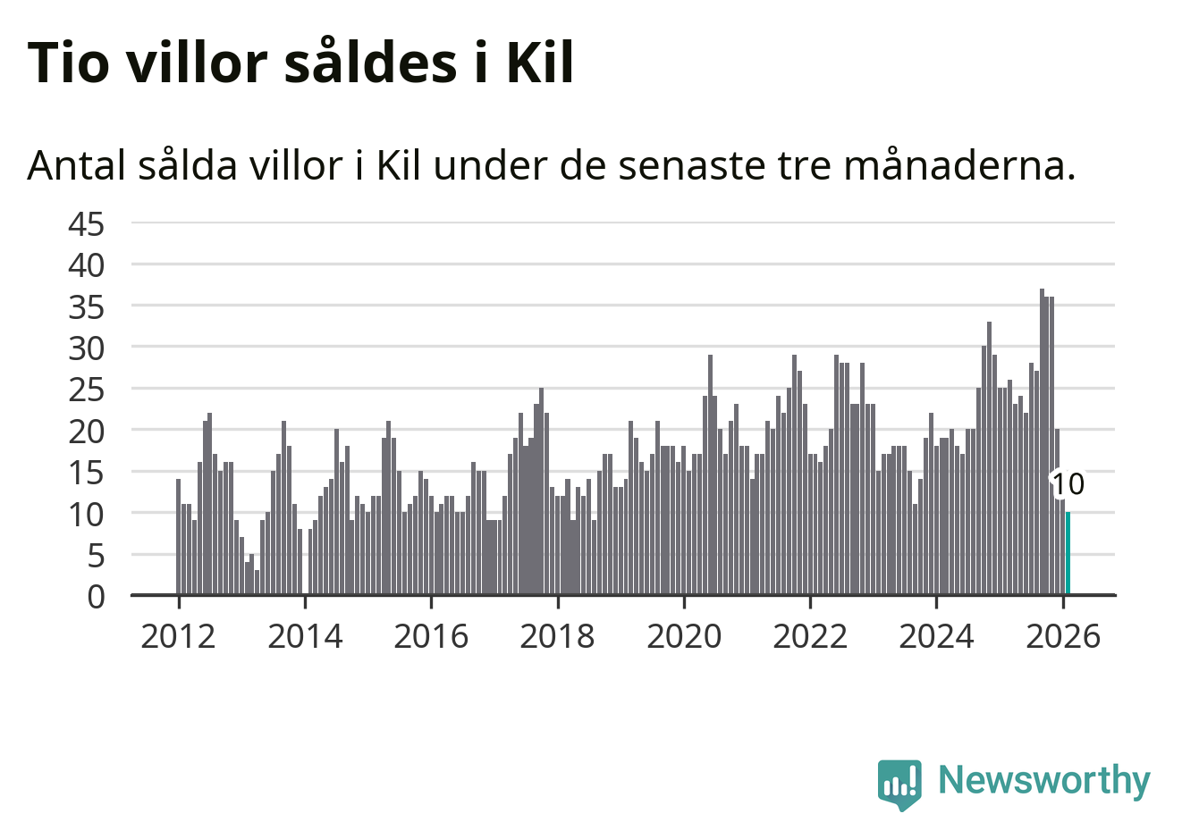 Graf: Antal sålda villor i Kils kommun