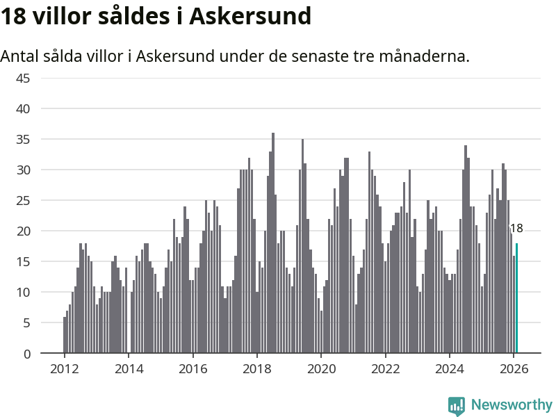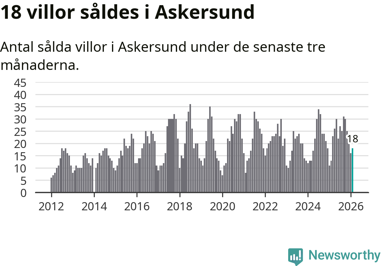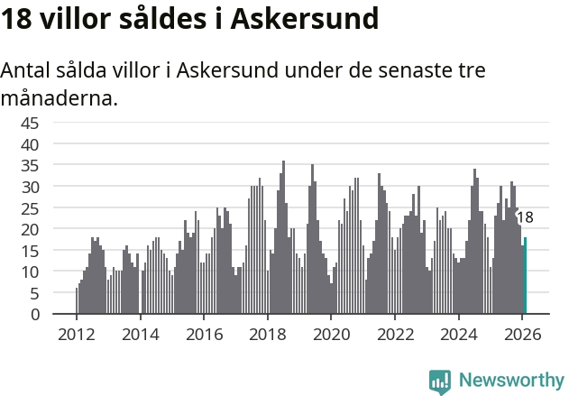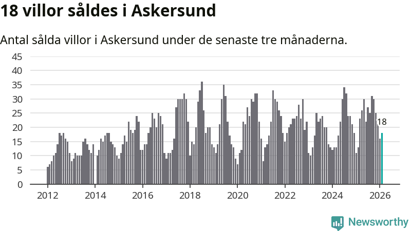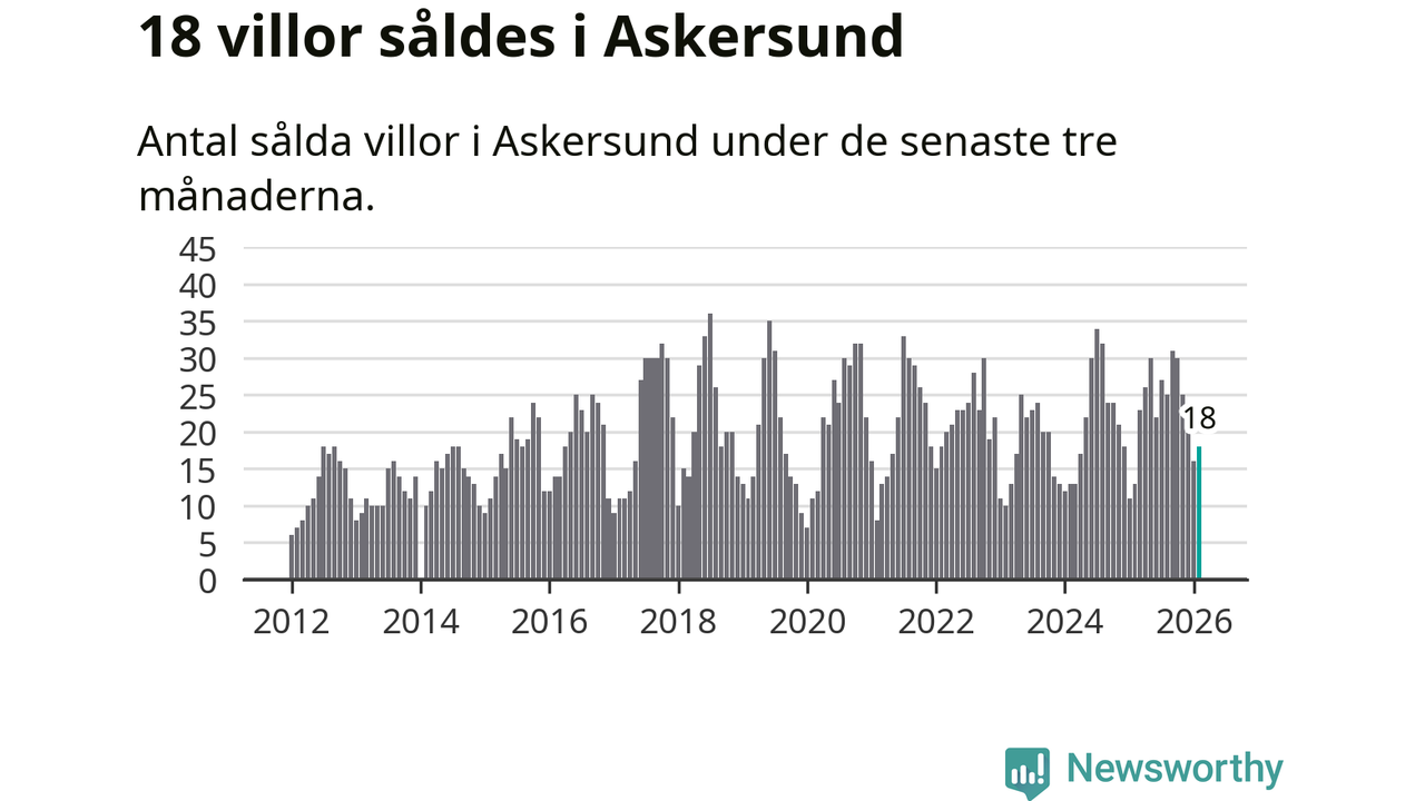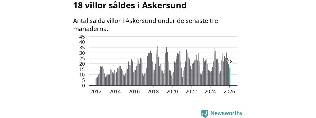 Mellan december och februari gjordes sammanlagt 18 affärer med villor i Askersunds kommun. Det kan jämföras med 13 vid motsvarande tid i fjol.
