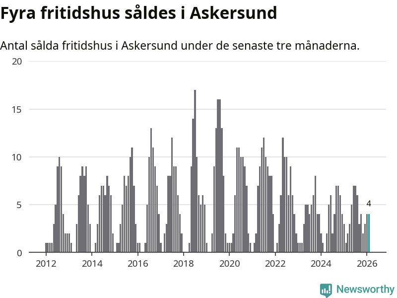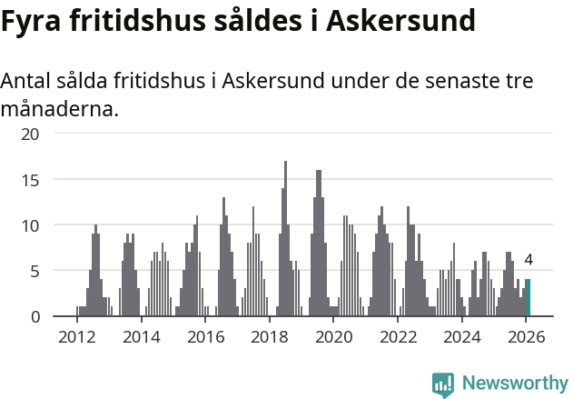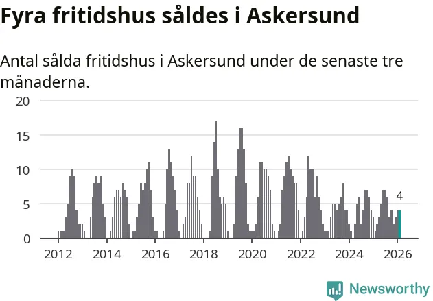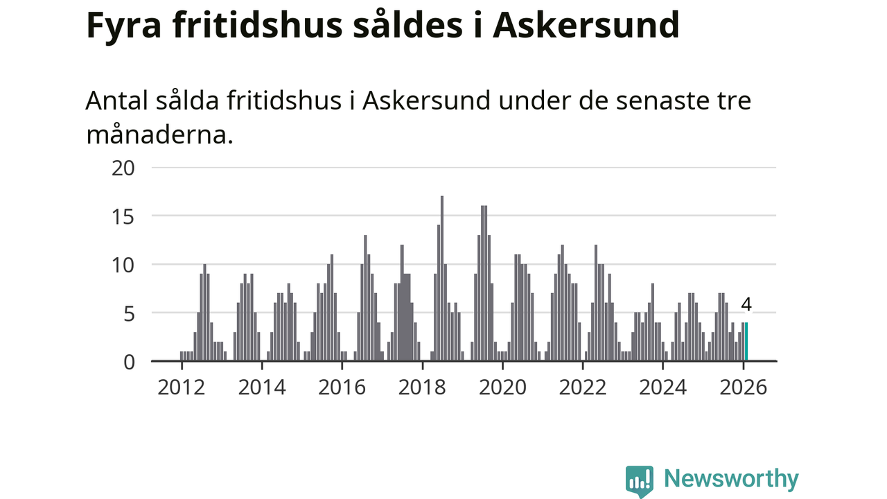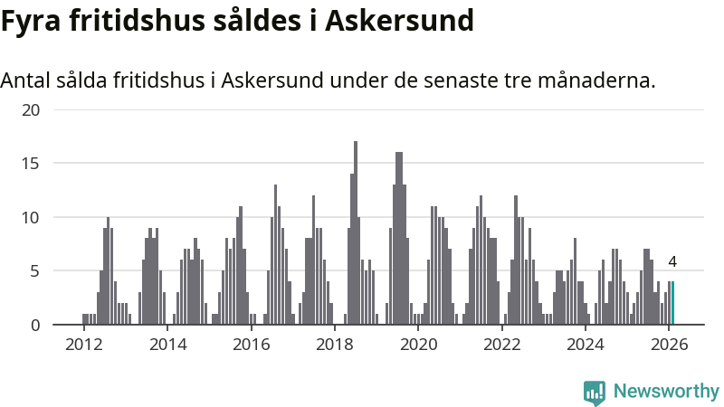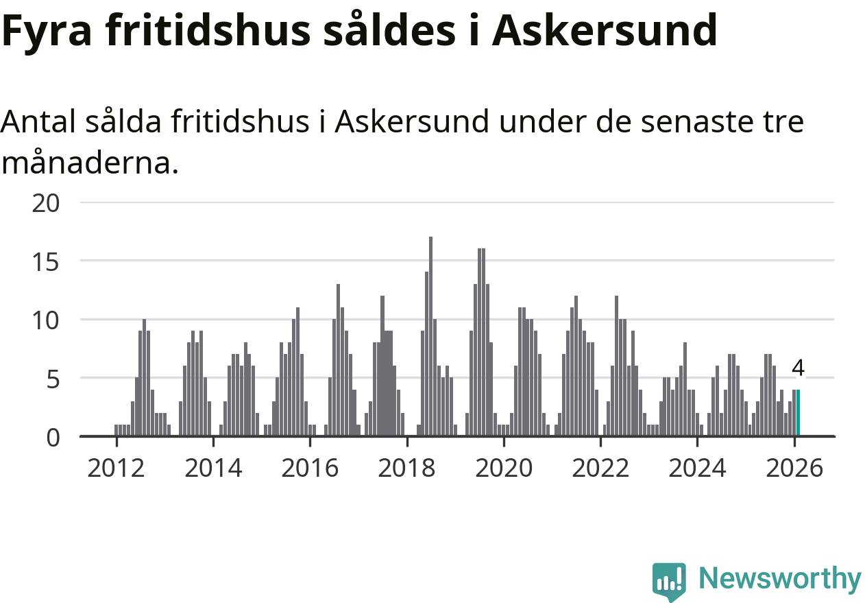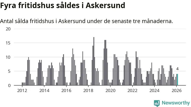 Mellan december och februari gjordes sammanlagt fyra affärer med fritidshus i Askersunds kommun. Det kan jämföras med ett vid motsvarande tid i fjol.