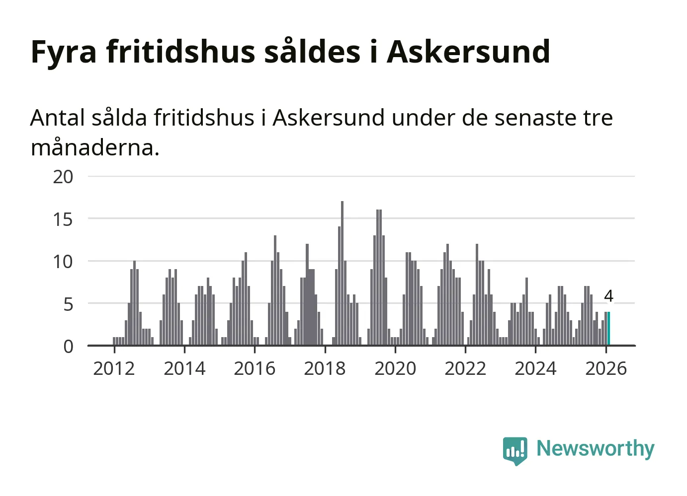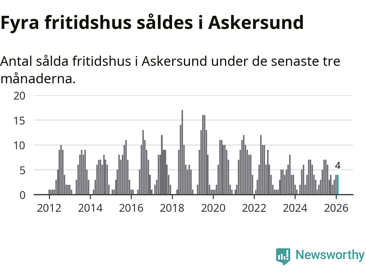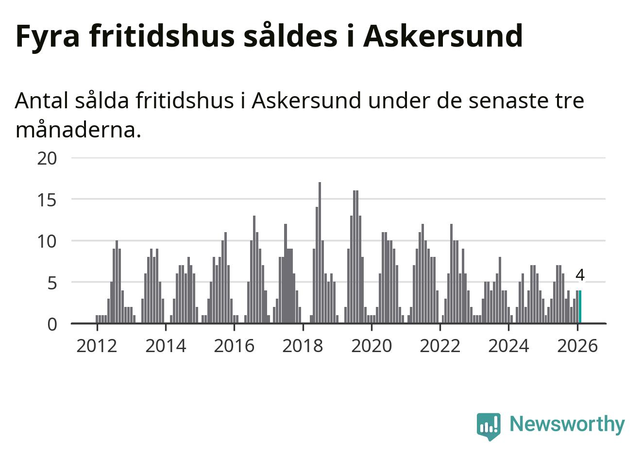 Mellan december och februari gjordes sammanlagt fyra affärer med fritidshus i Askersunds kommun. Det kan jämföras med ett vid motsvarande tid i fjol.