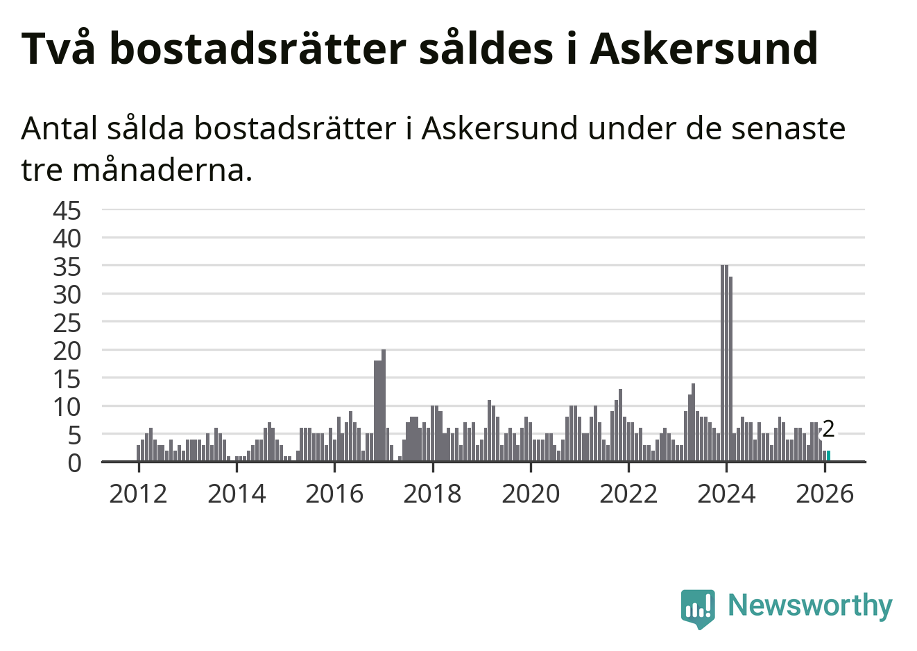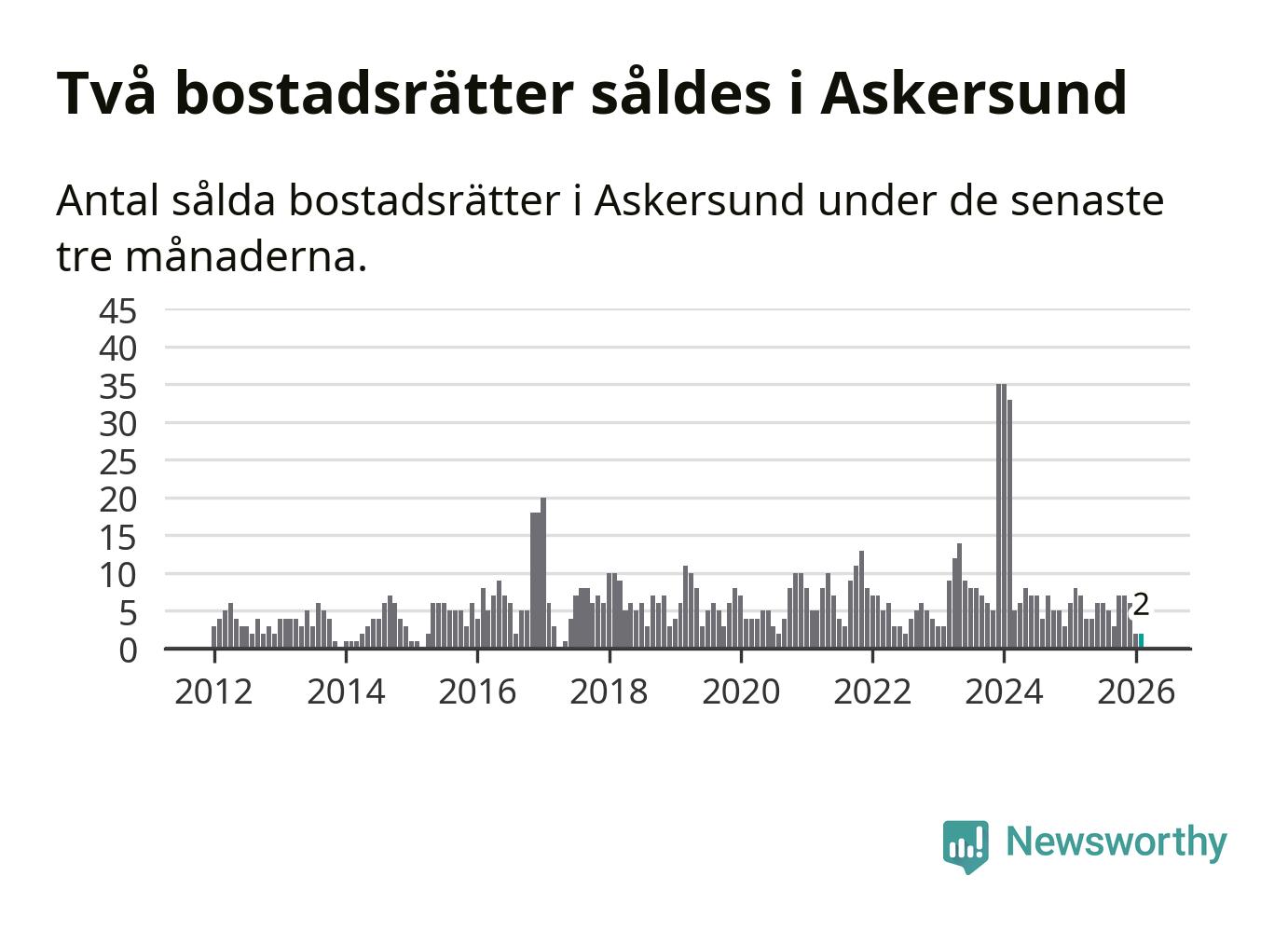 Graf: Antal sålda bostadsrätter i Askersunds kommun