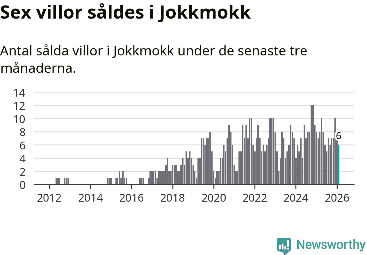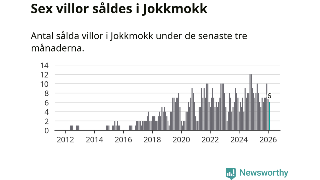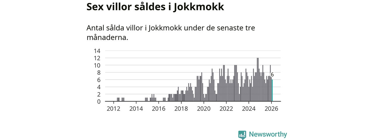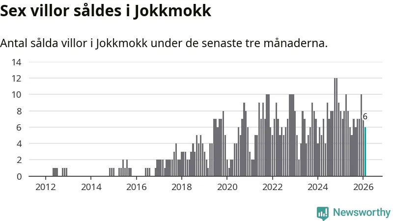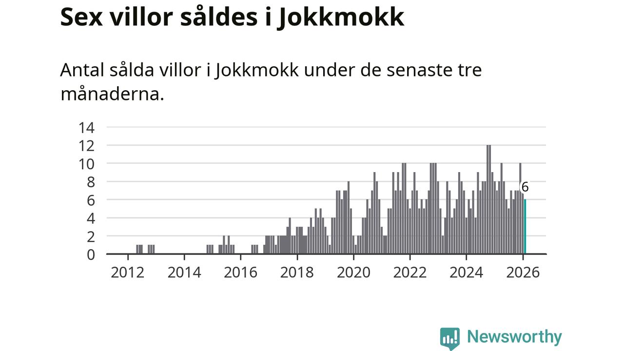 Mellan december och februari gjordes sammanlagt sex affärer med villor i Jokkmokks kommun. Det kan jämföras med sju vid motsvarande tid i fjol.