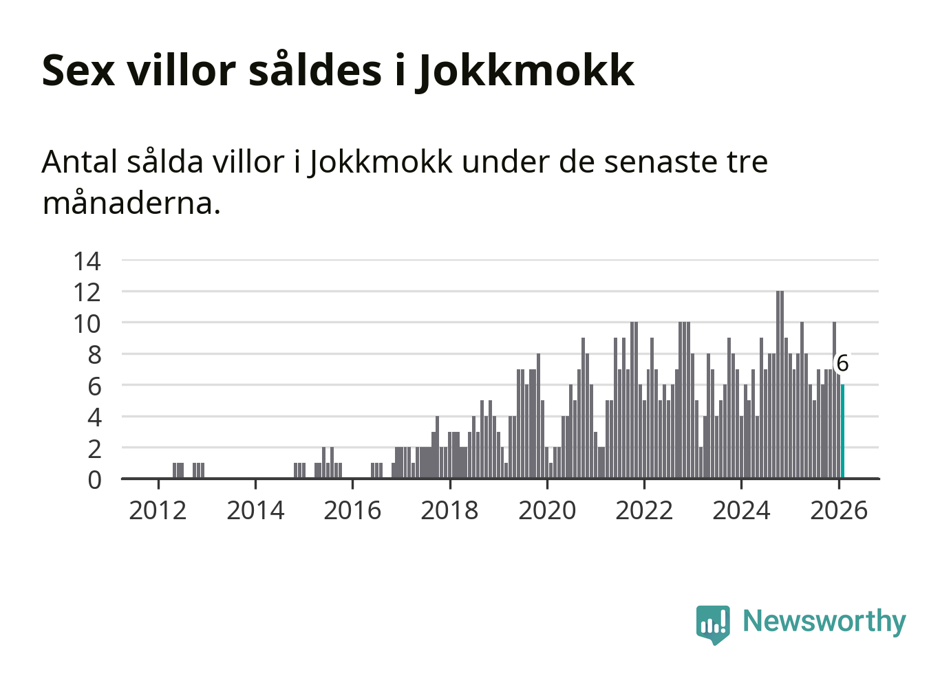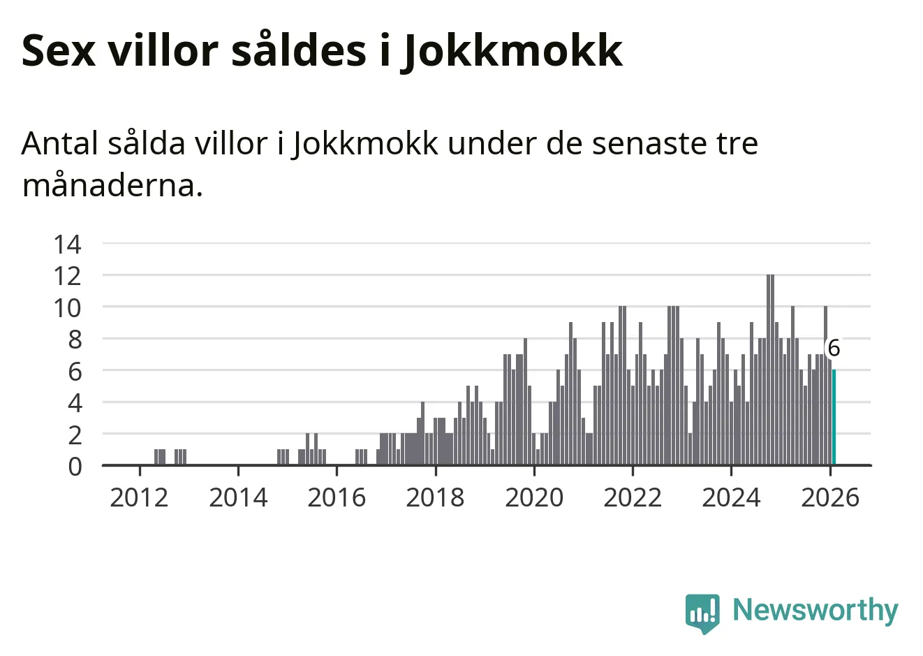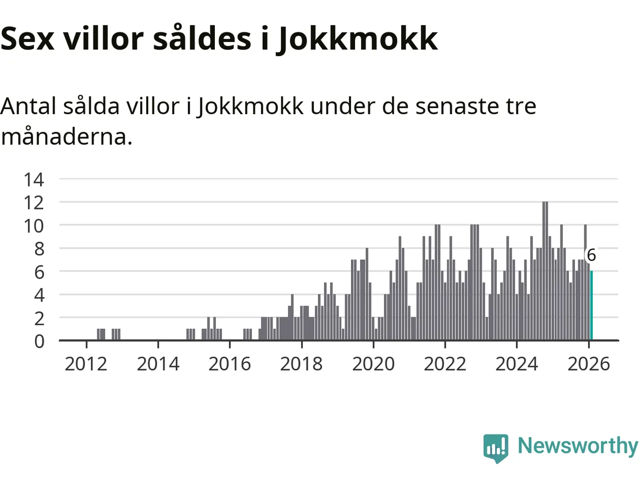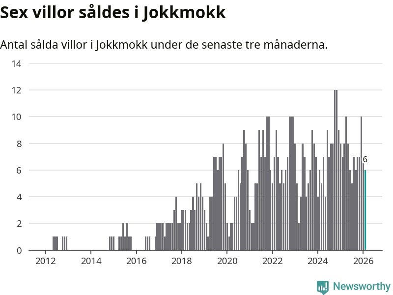Mellan december och februari gjordes sammanlagt sex affärer med villor i Jokkmokks kommun. Det kan jämföras med sju vid motsvarande tid i fjol.