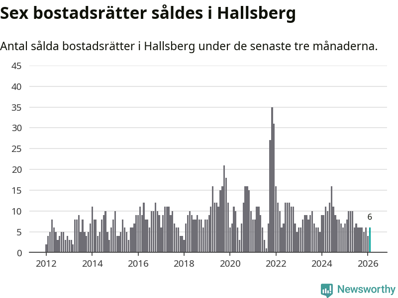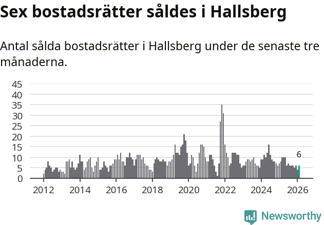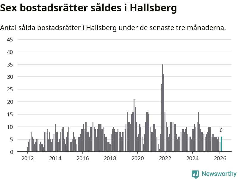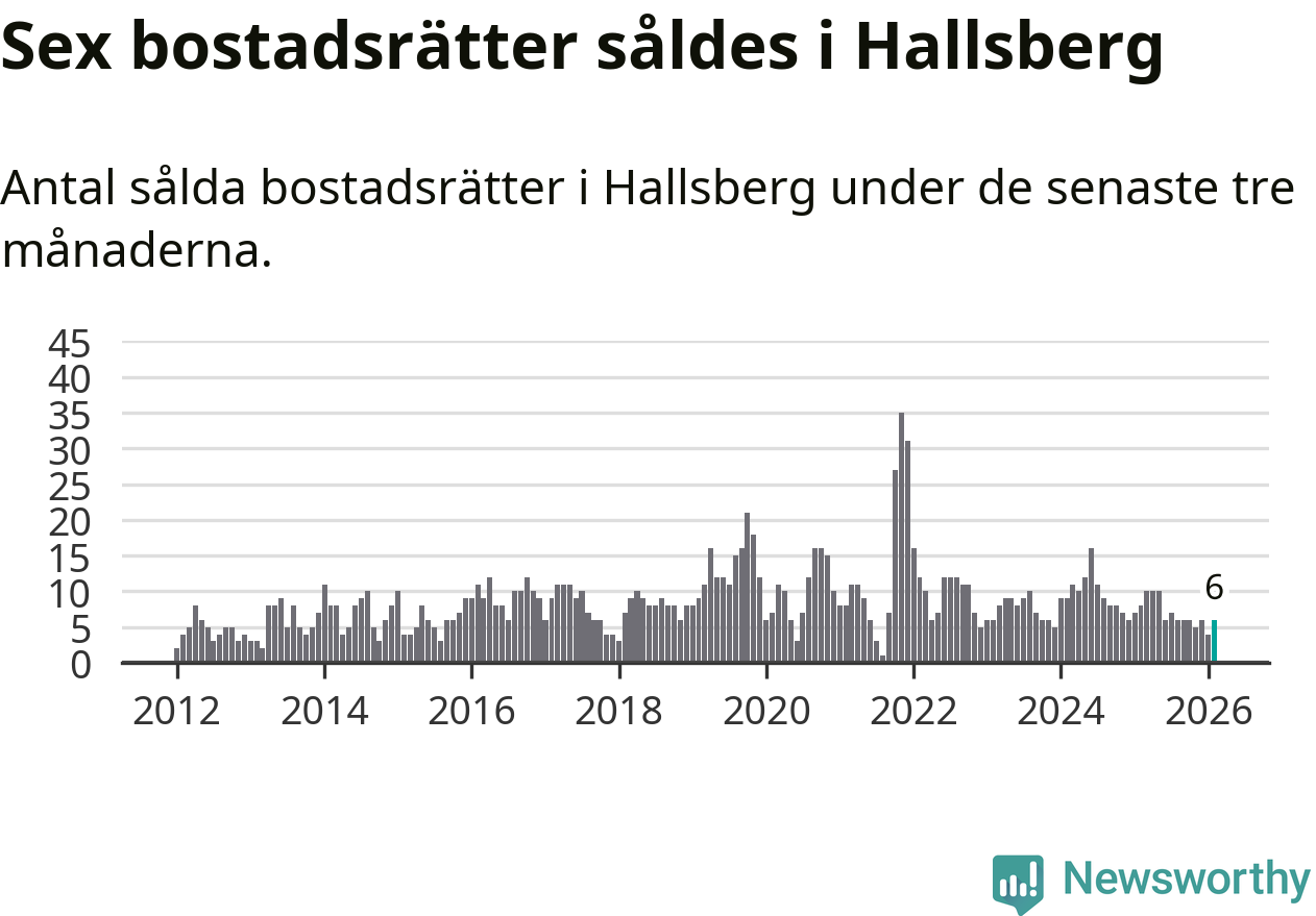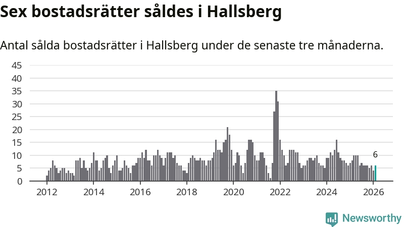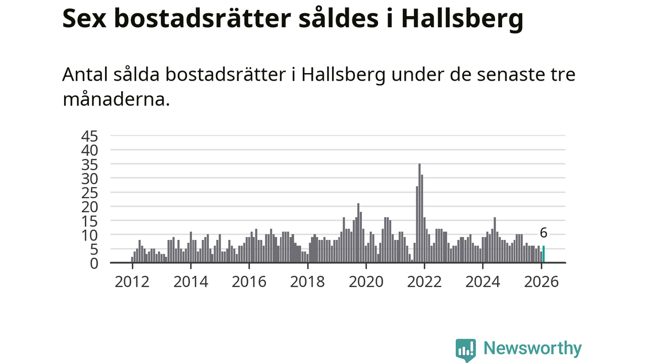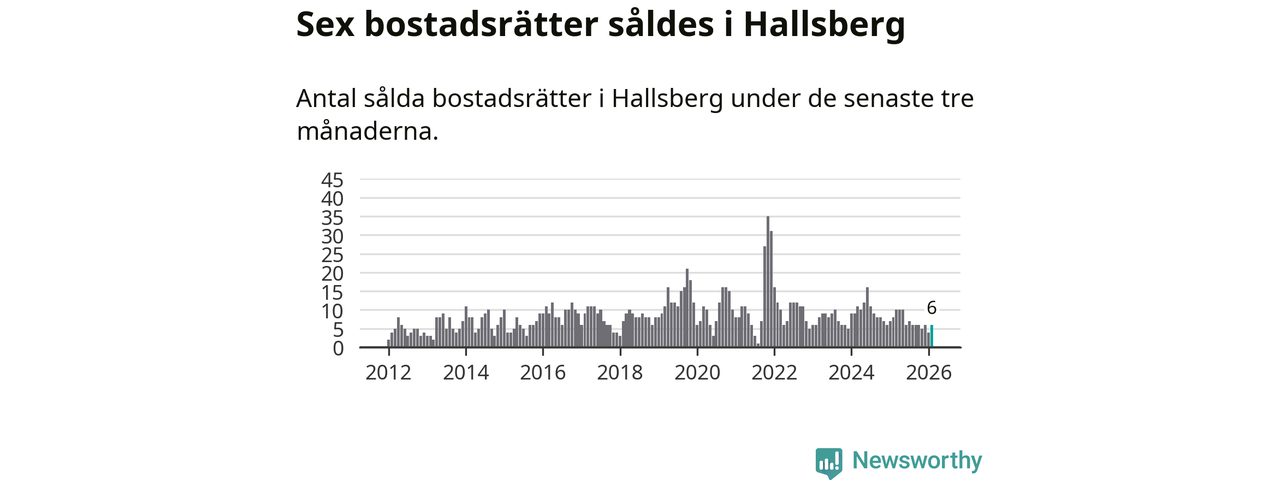 Mellan december och februari gjordes sammanlagt sex affärer med bostadsrätter i Hallsbergs kommun. Det kan jämföras med åtta vid motsvarande tid i fjol.