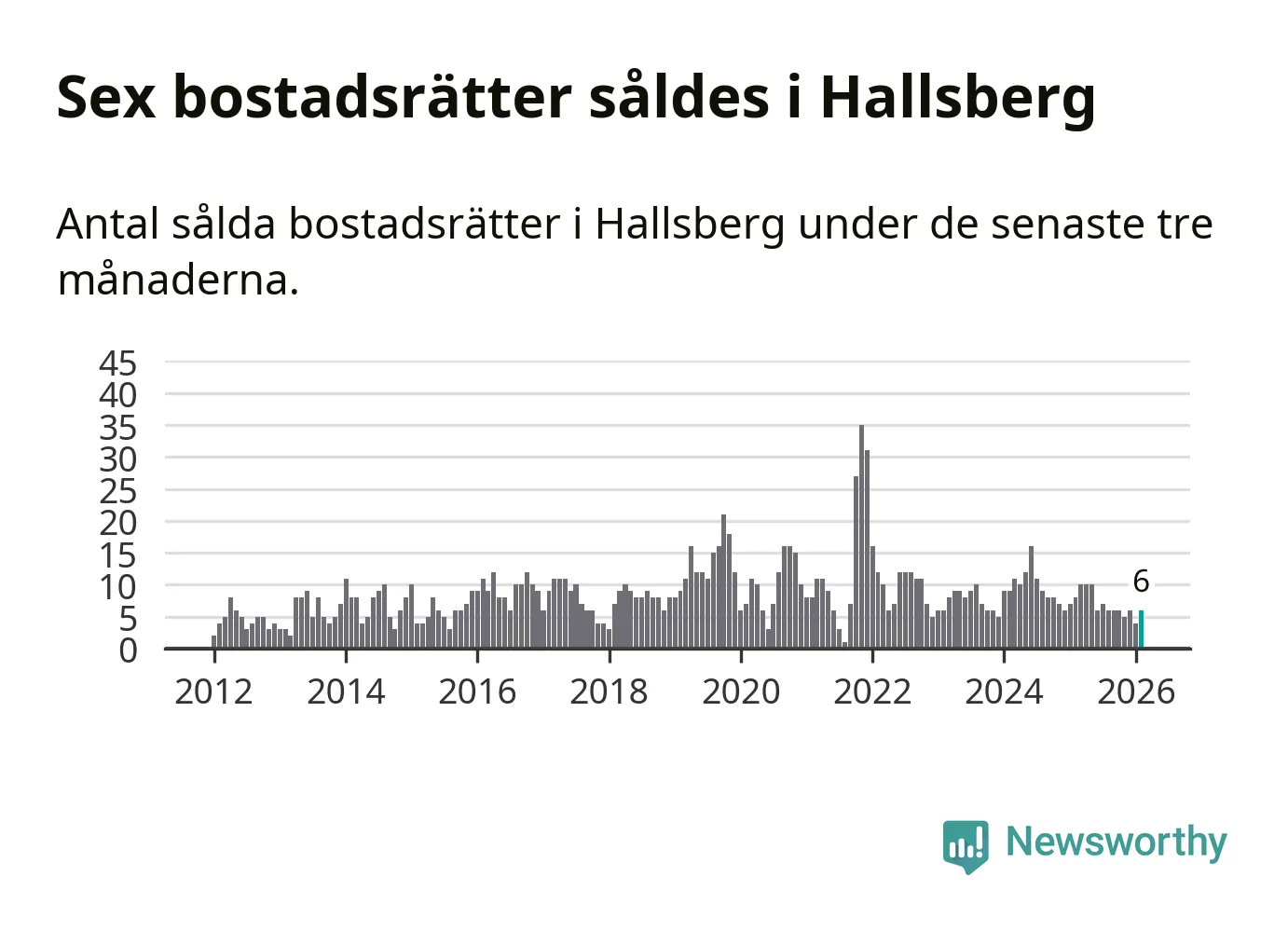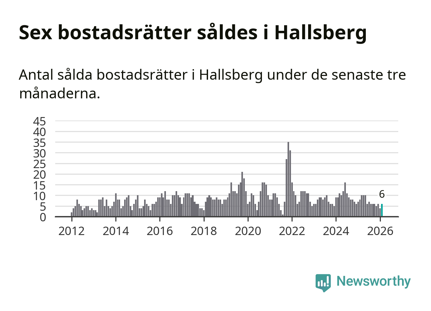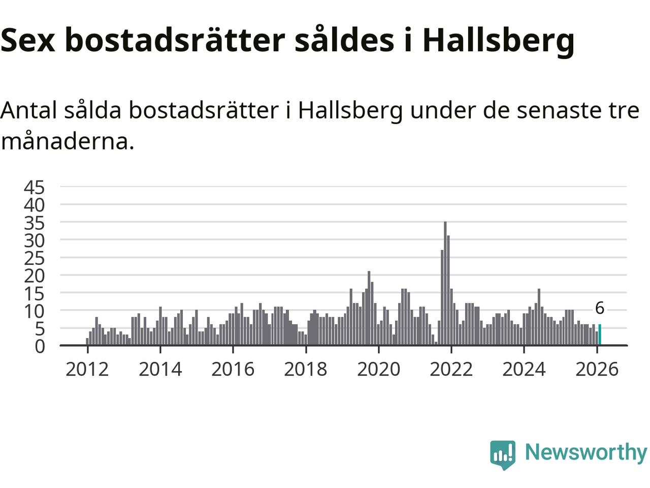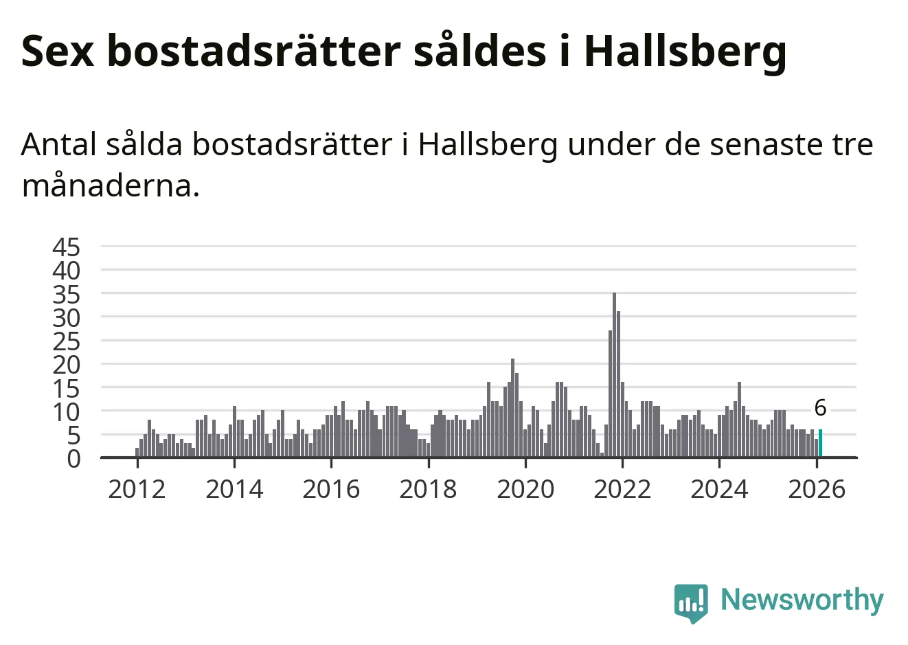 Mellan december och februari gjordes sammanlagt sex affärer med bostadsrätter i Hallsbergs kommun. Det kan jämföras med åtta vid motsvarande tid i fjol.