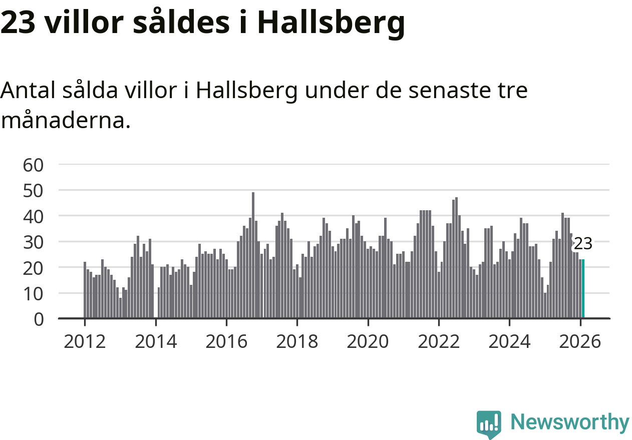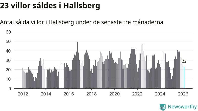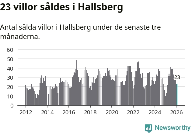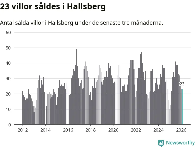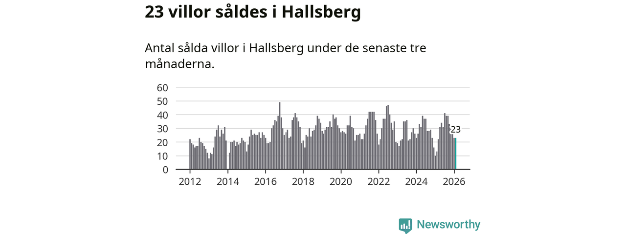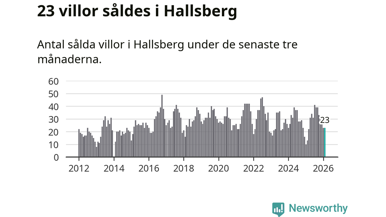 Mellan december och februari gjordes sammanlagt 23 affärer med villor i Hallsbergs kommun. Det kan jämföras med 13 vid motsvarande tid i fjol.