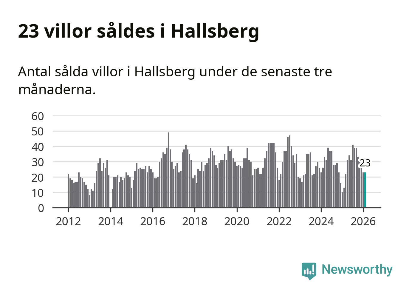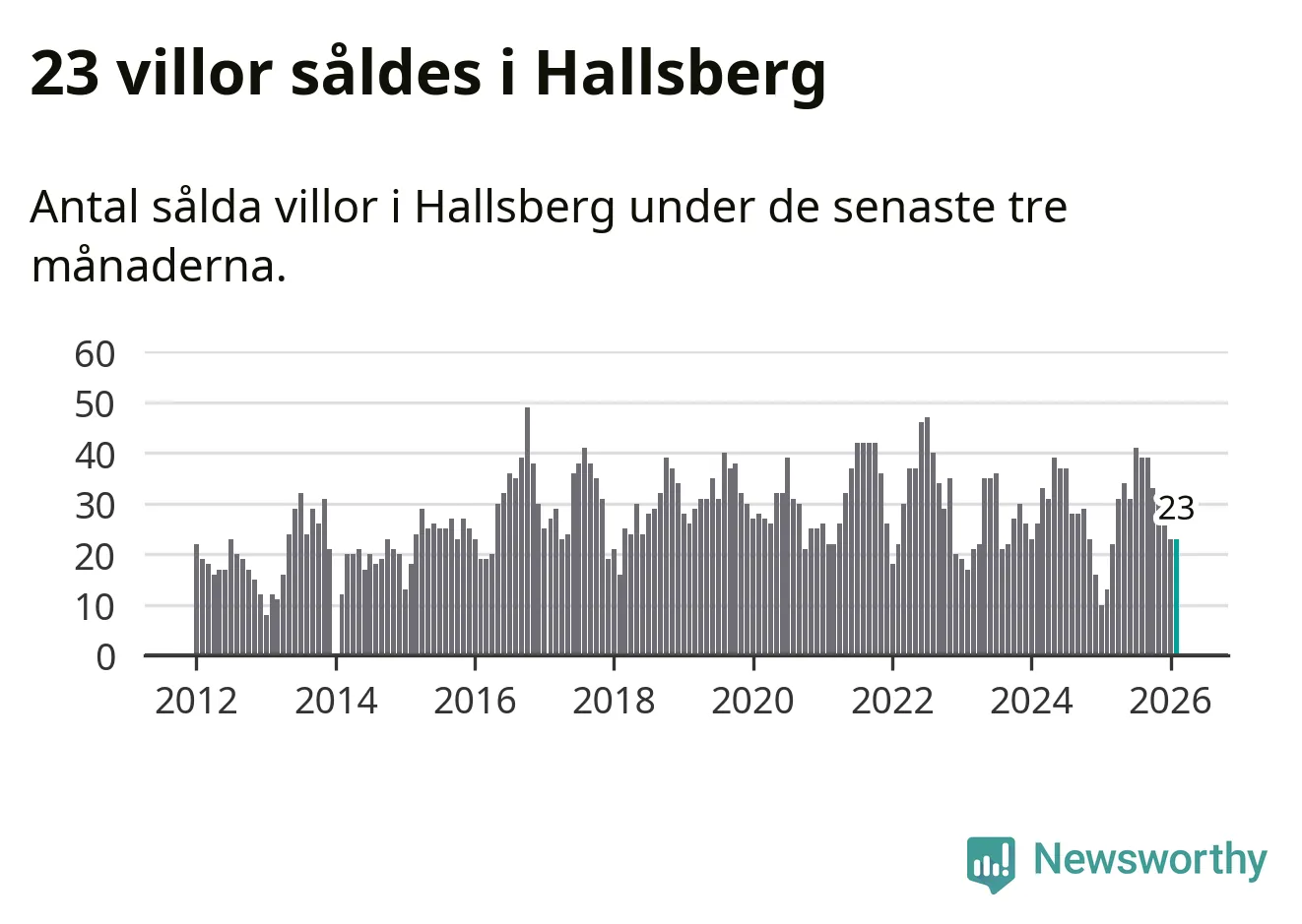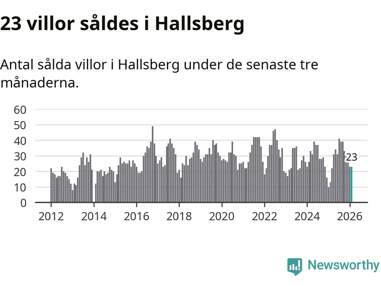 Mellan december och februari gjordes sammanlagt 23 affärer med villor i Hallsbergs kommun. Det kan jämföras med 13 vid motsvarande tid i fjol.