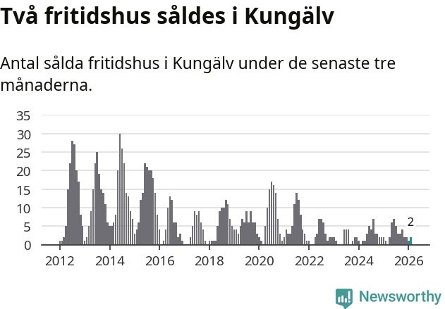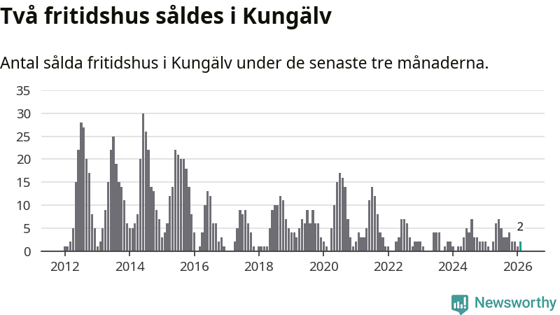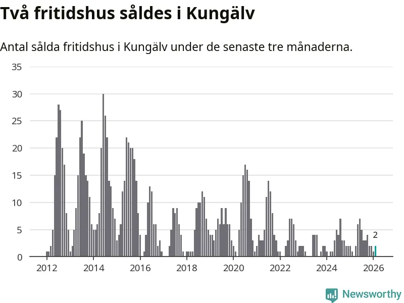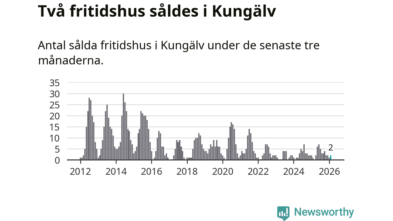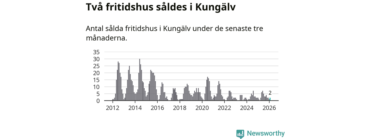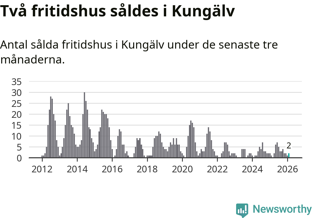 Mellan december och februari gjordes sammanlagt två affärer med fritidshus i Kungälvs kommun. Det kan jämföras med ett vid motsvarande tid i fjol.