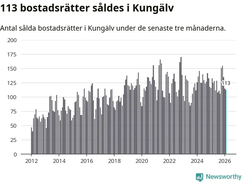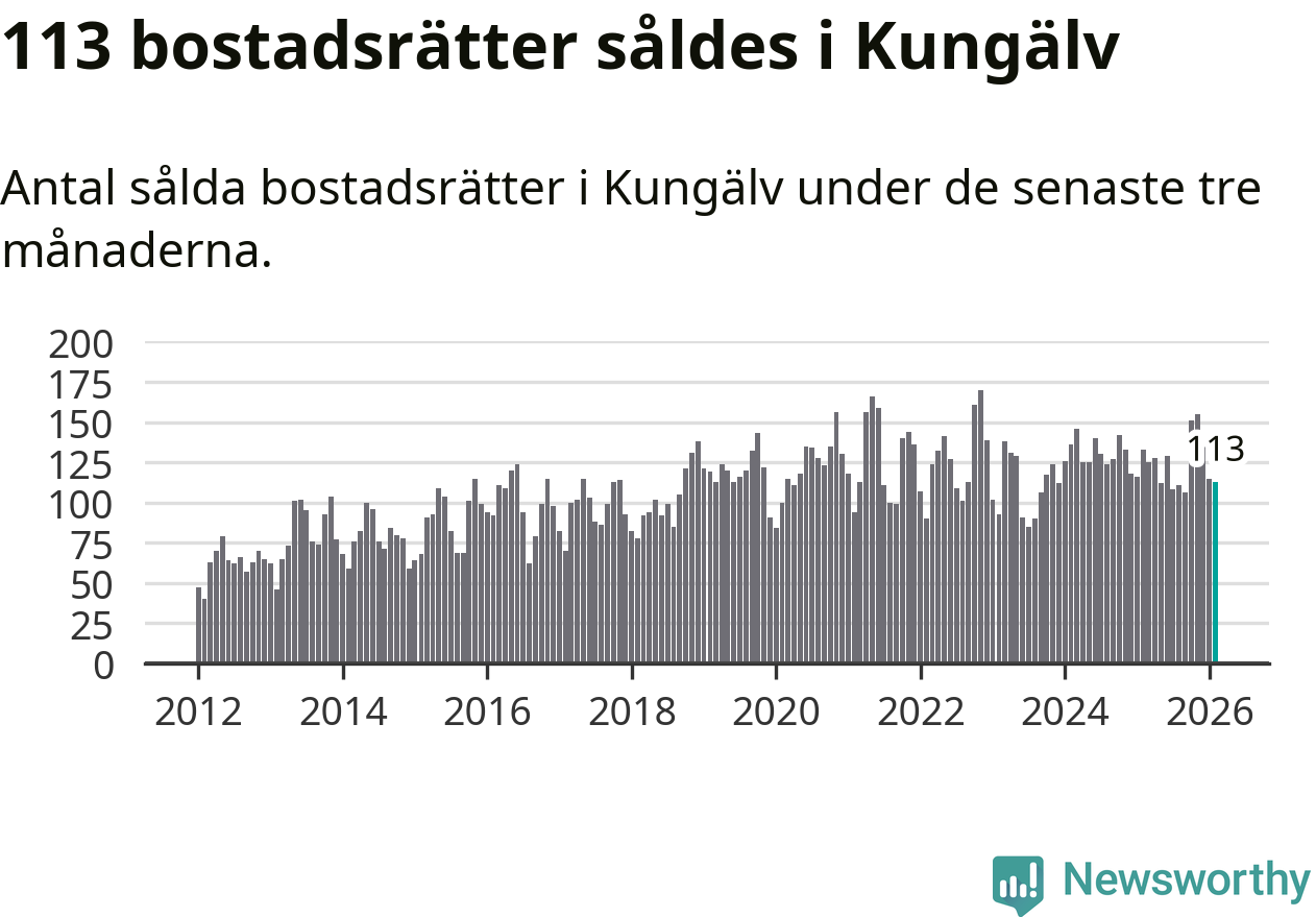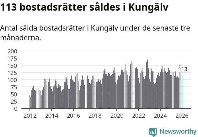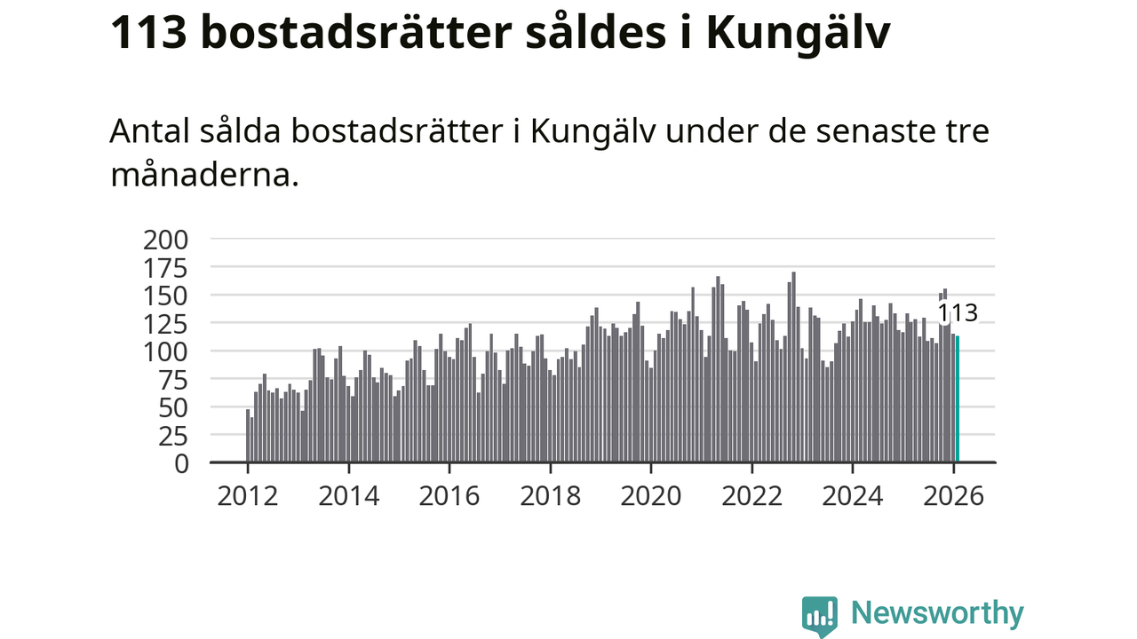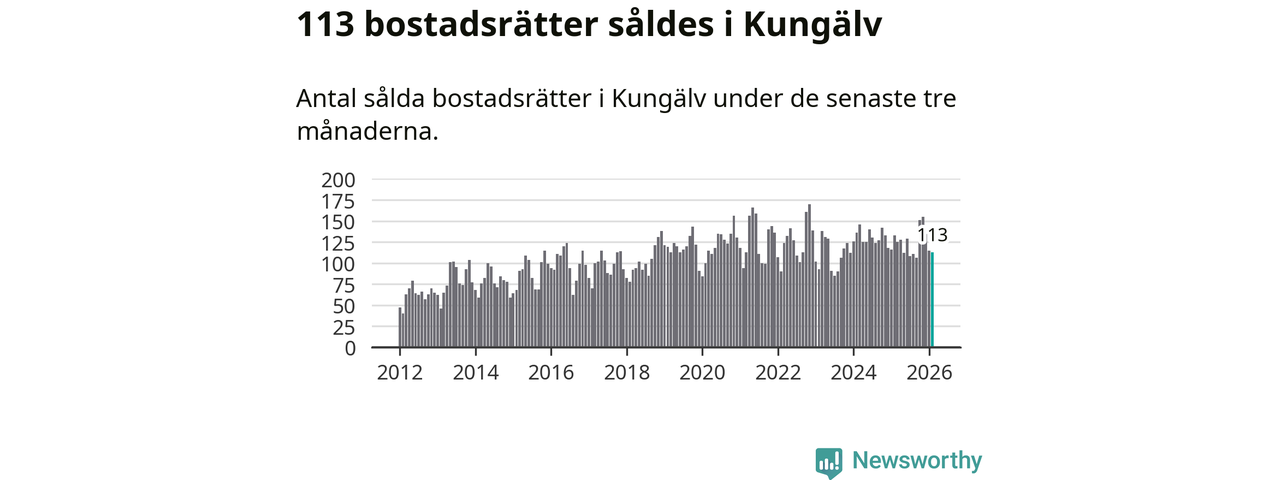 Sammanlagt såldes 113 bostadsrätter i Kungälvs kommun mellan december och februari till ett genomsnittligt pris på 2,7 miljoner kronor. I fjol gjordes 133 affärer vid den här tiden på året.
