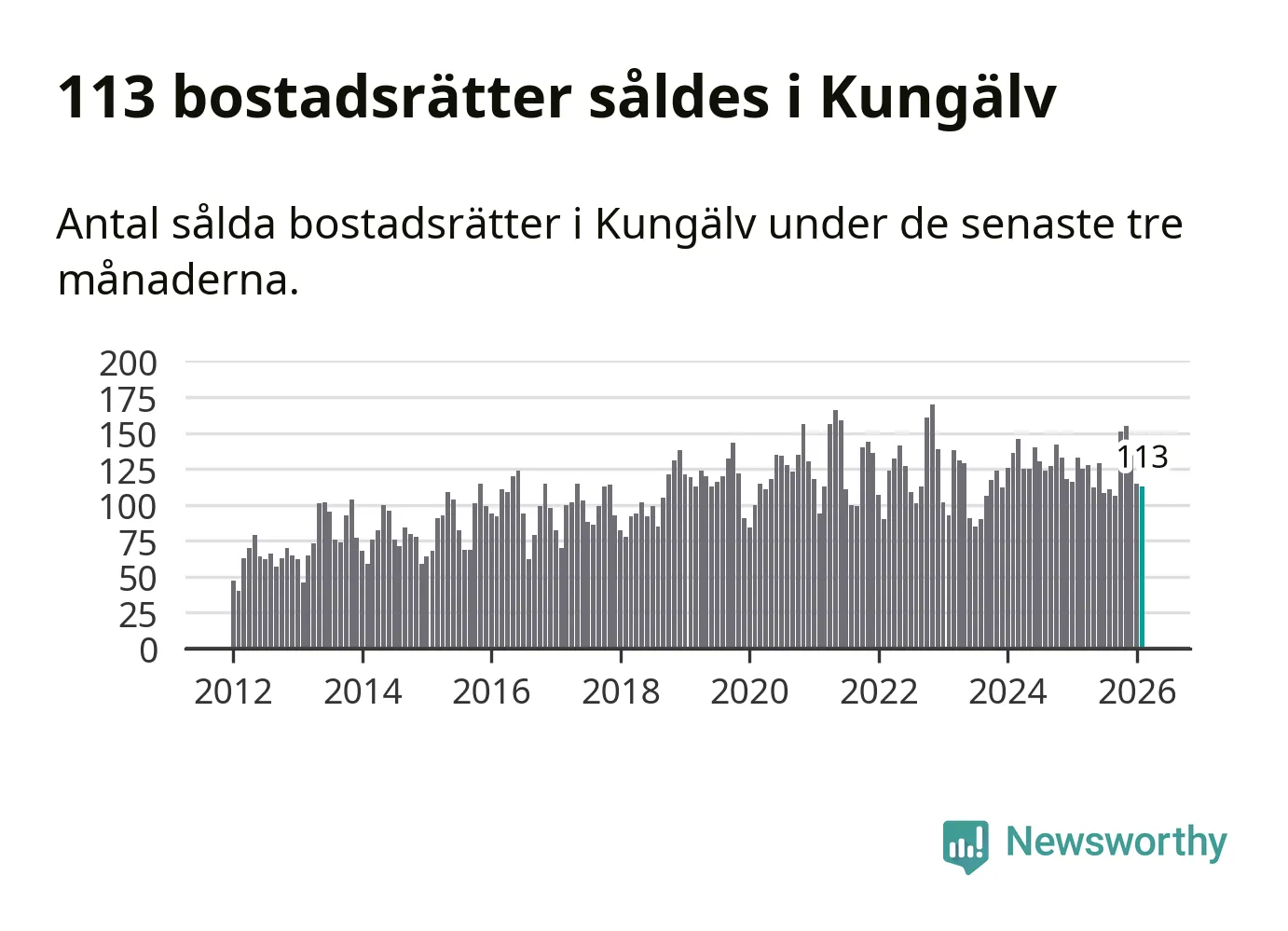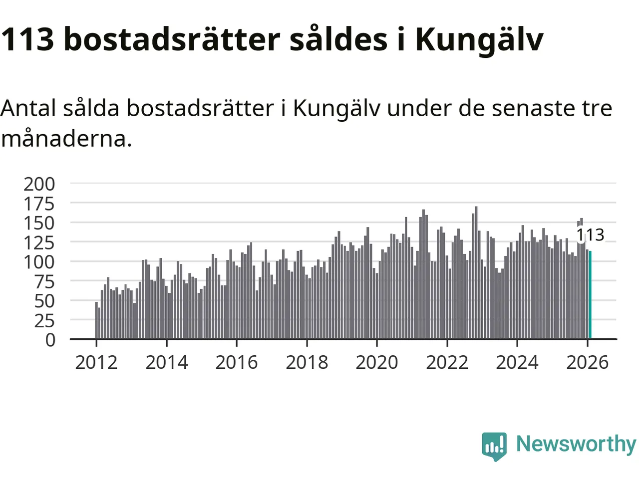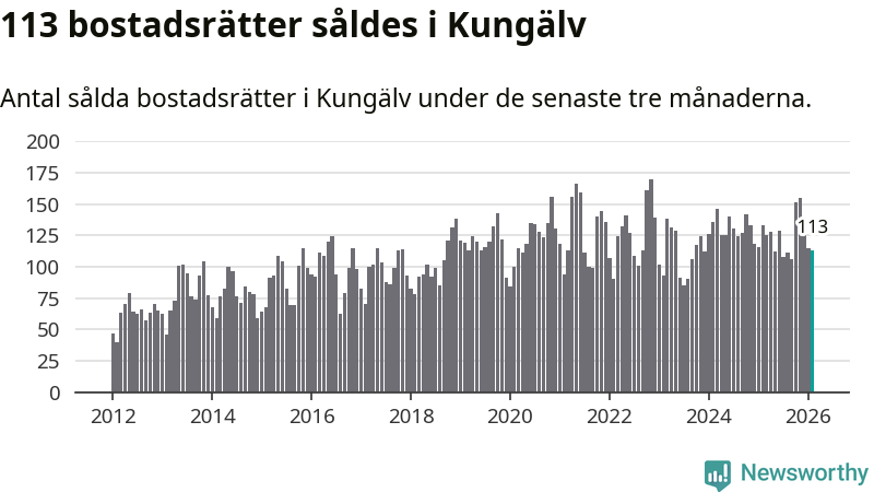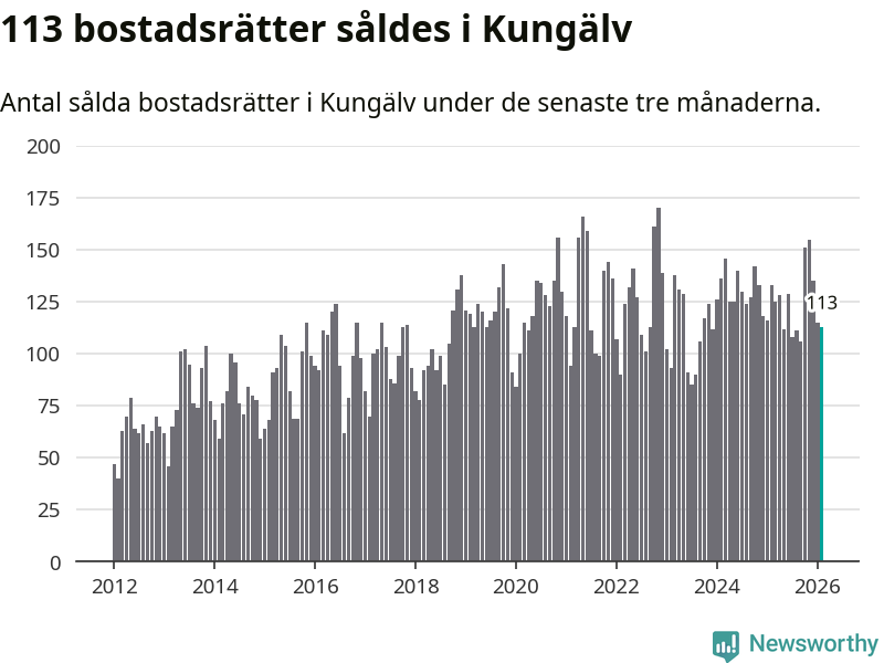 Sammanlagt såldes 113 bostadsrätter i Kungälvs kommun mellan december och februari till ett genomsnittligt pris på 2,7 miljoner kronor. I fjol gjordes 133 affärer vid den här tiden på året.