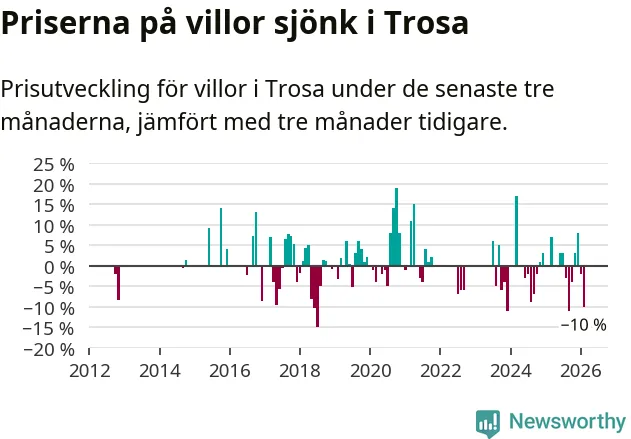 Graf: Prisutveckling för villor i Trosa kommun